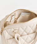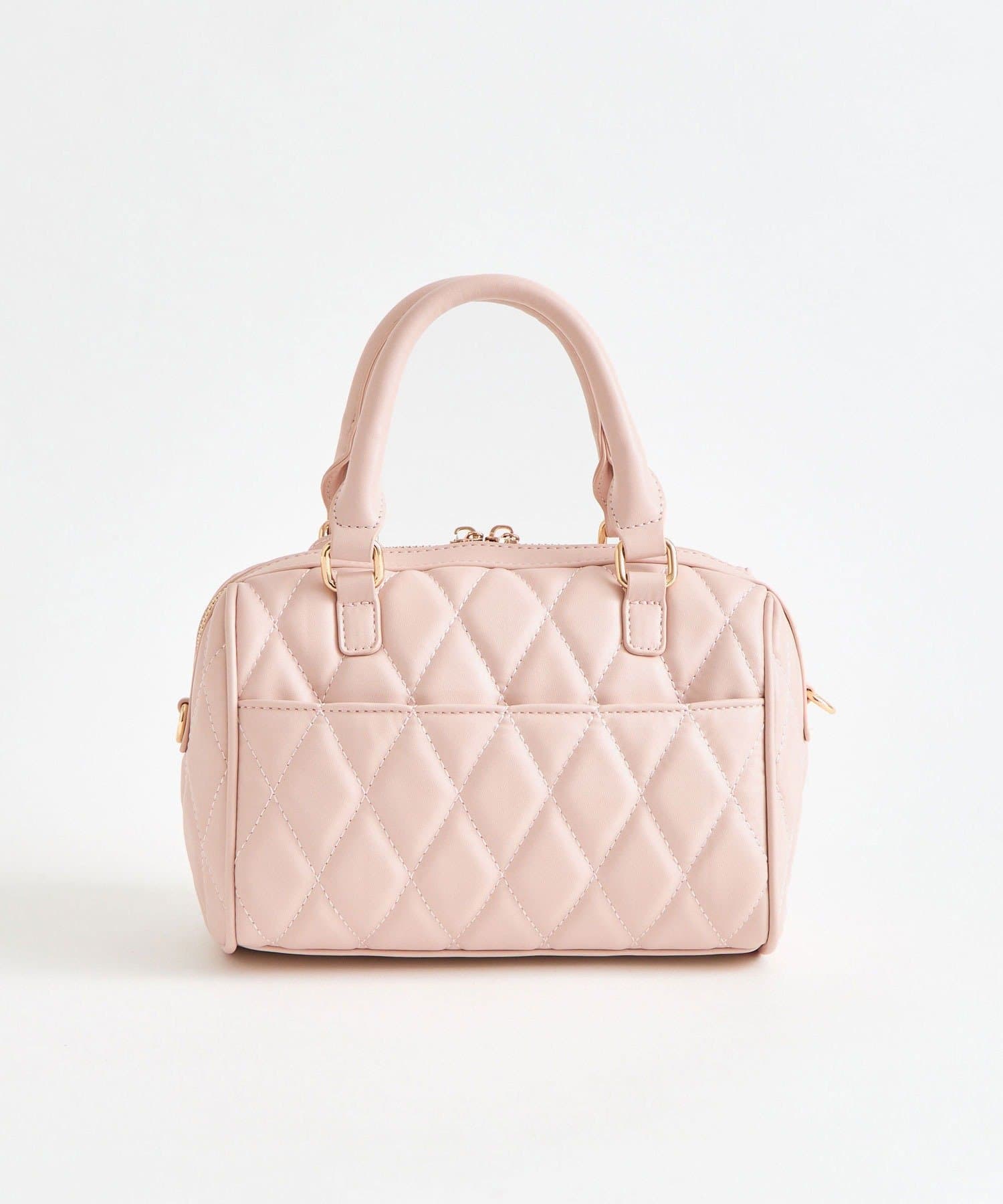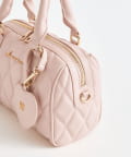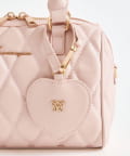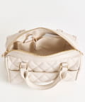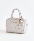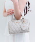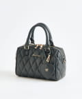 ・高見えする合皮のキルティングに、オリジナルのロゴを施したボストンバッグ。