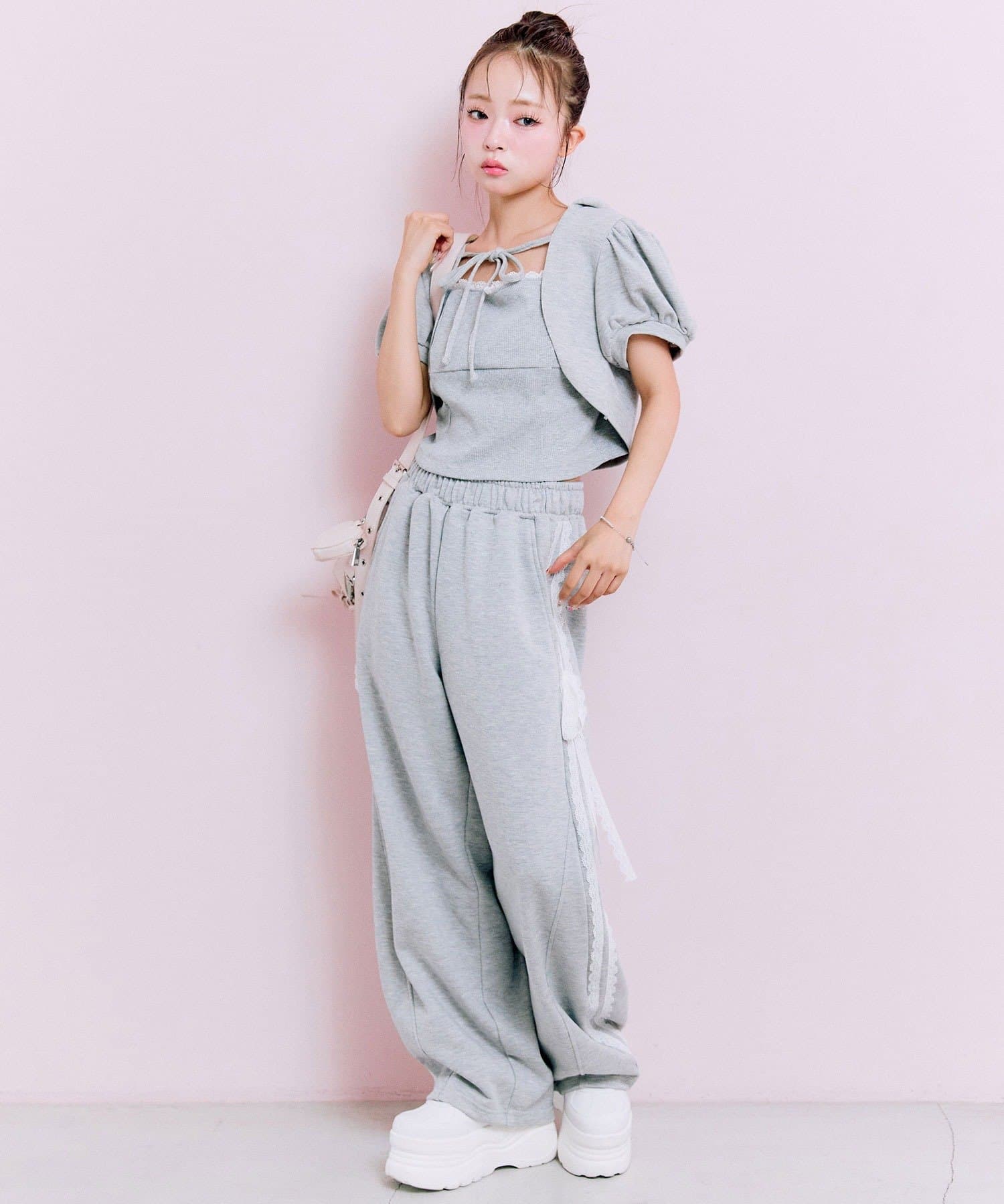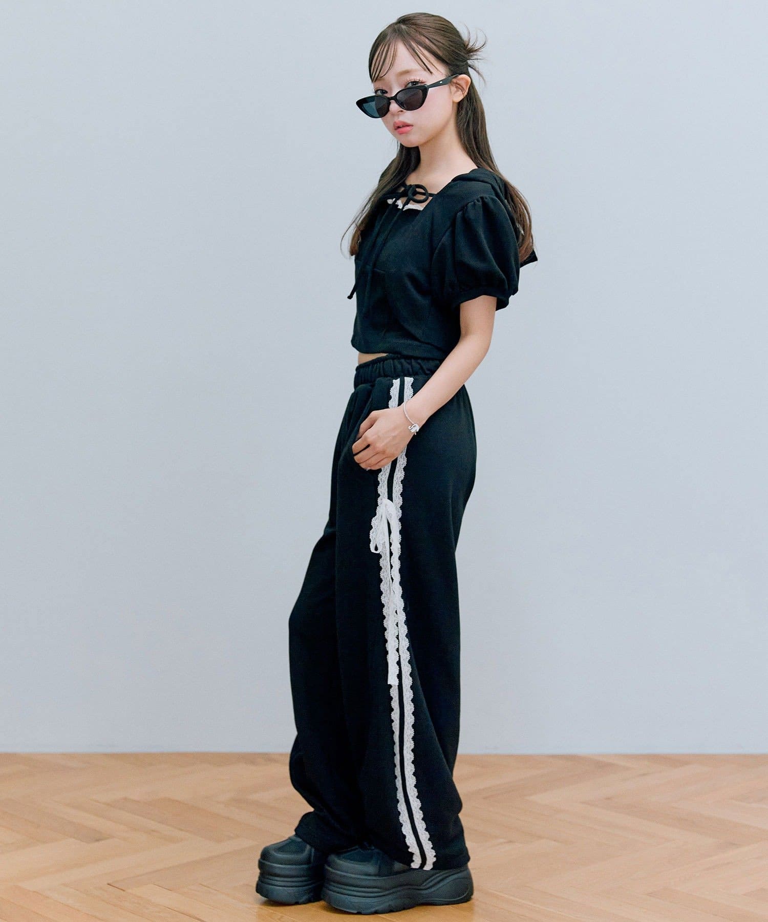 ・サイドのレースやリボンで甘さをプラスしたデザイン。