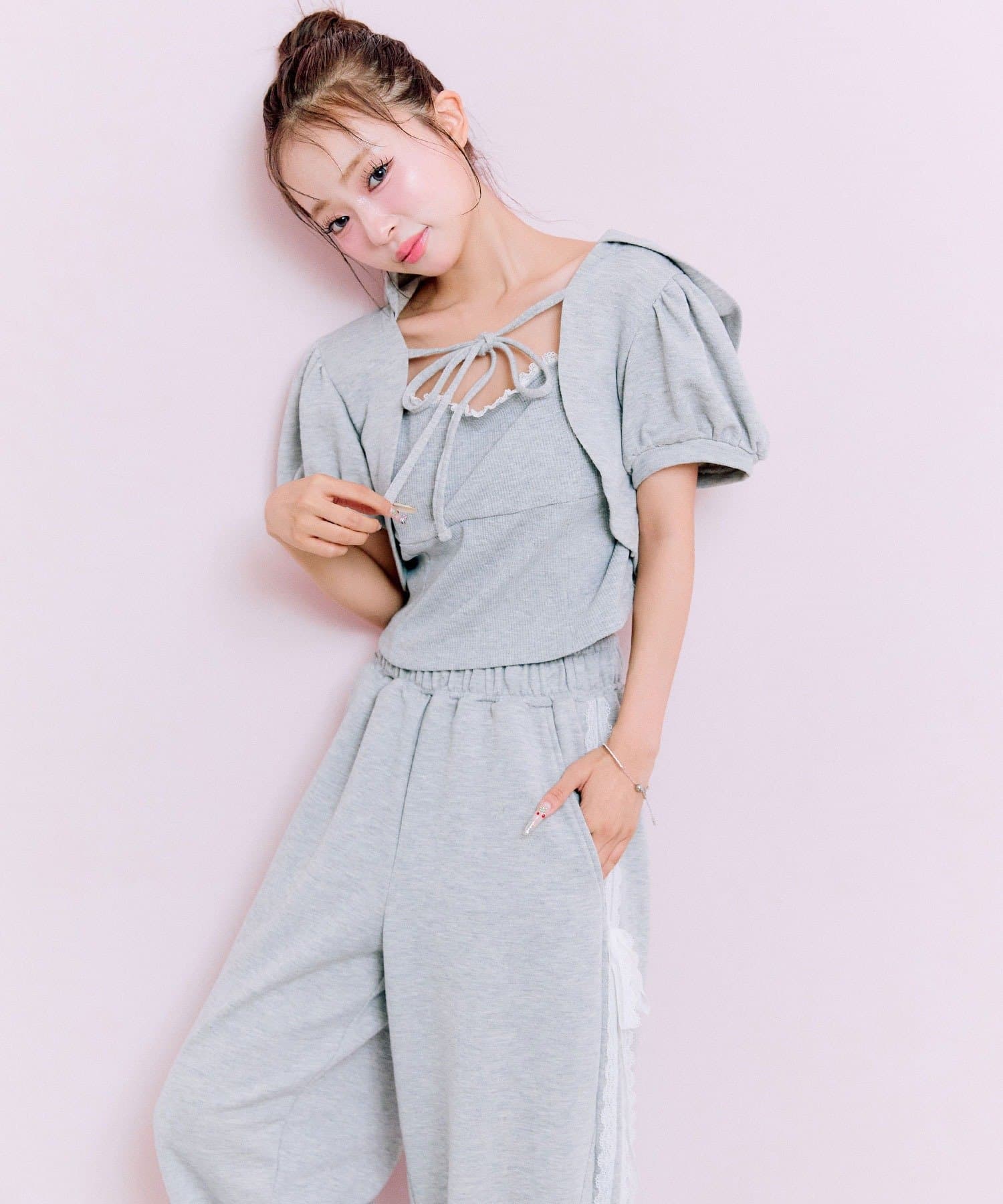 ・フードレイヤードトップス(商品番号:1052060040)とセットアップで着れます。