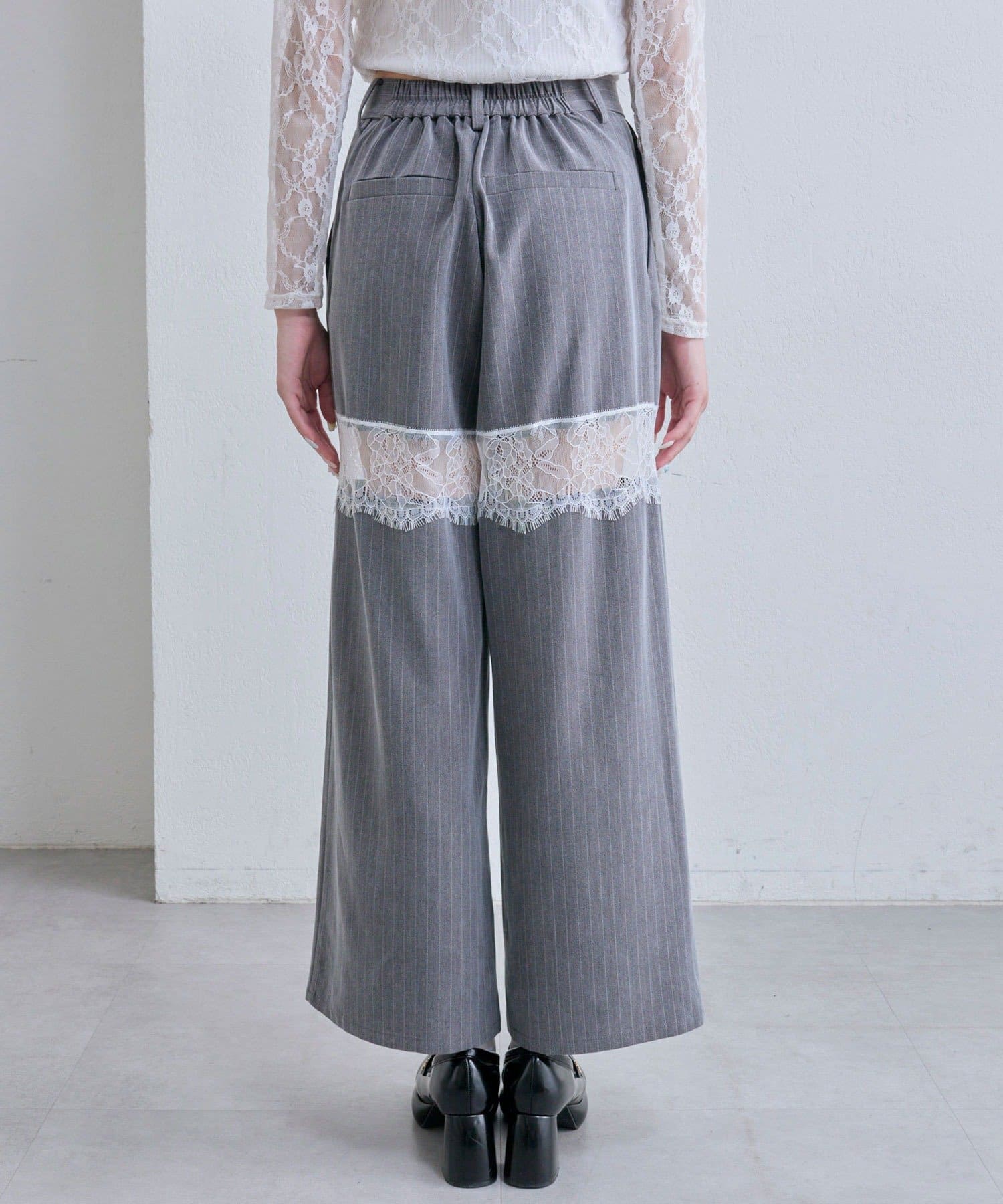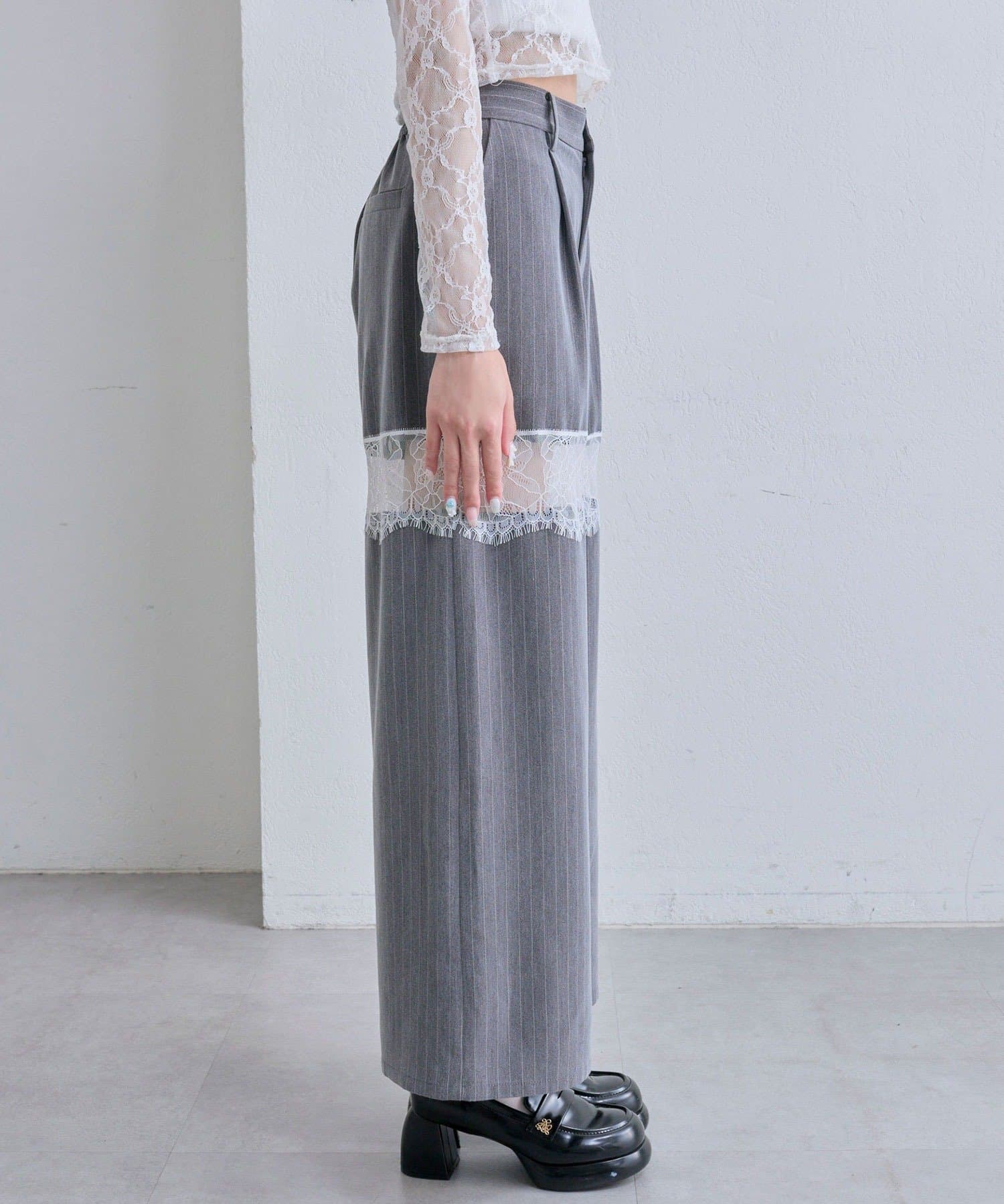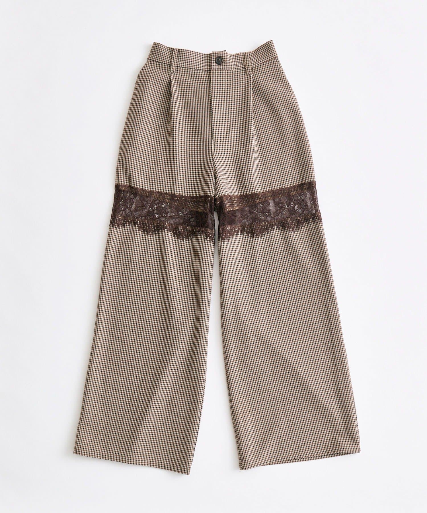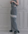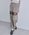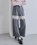 【PinSucreCollection】レース切替ワイドスラックスパンツ