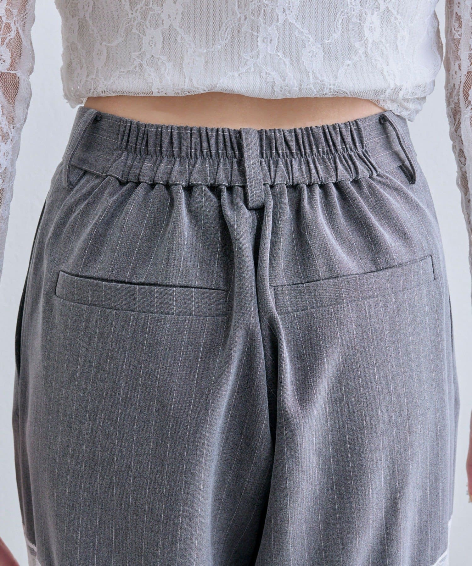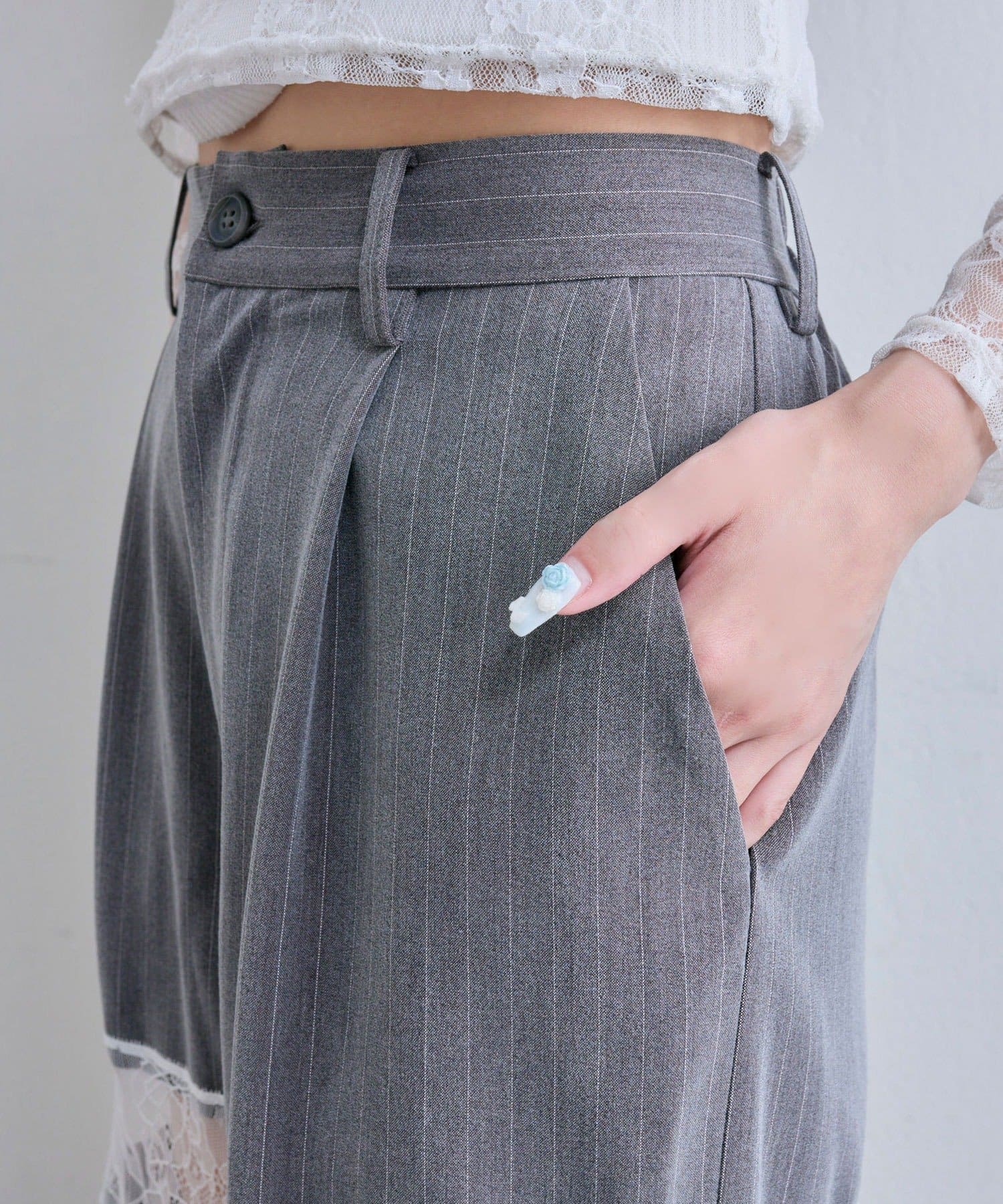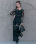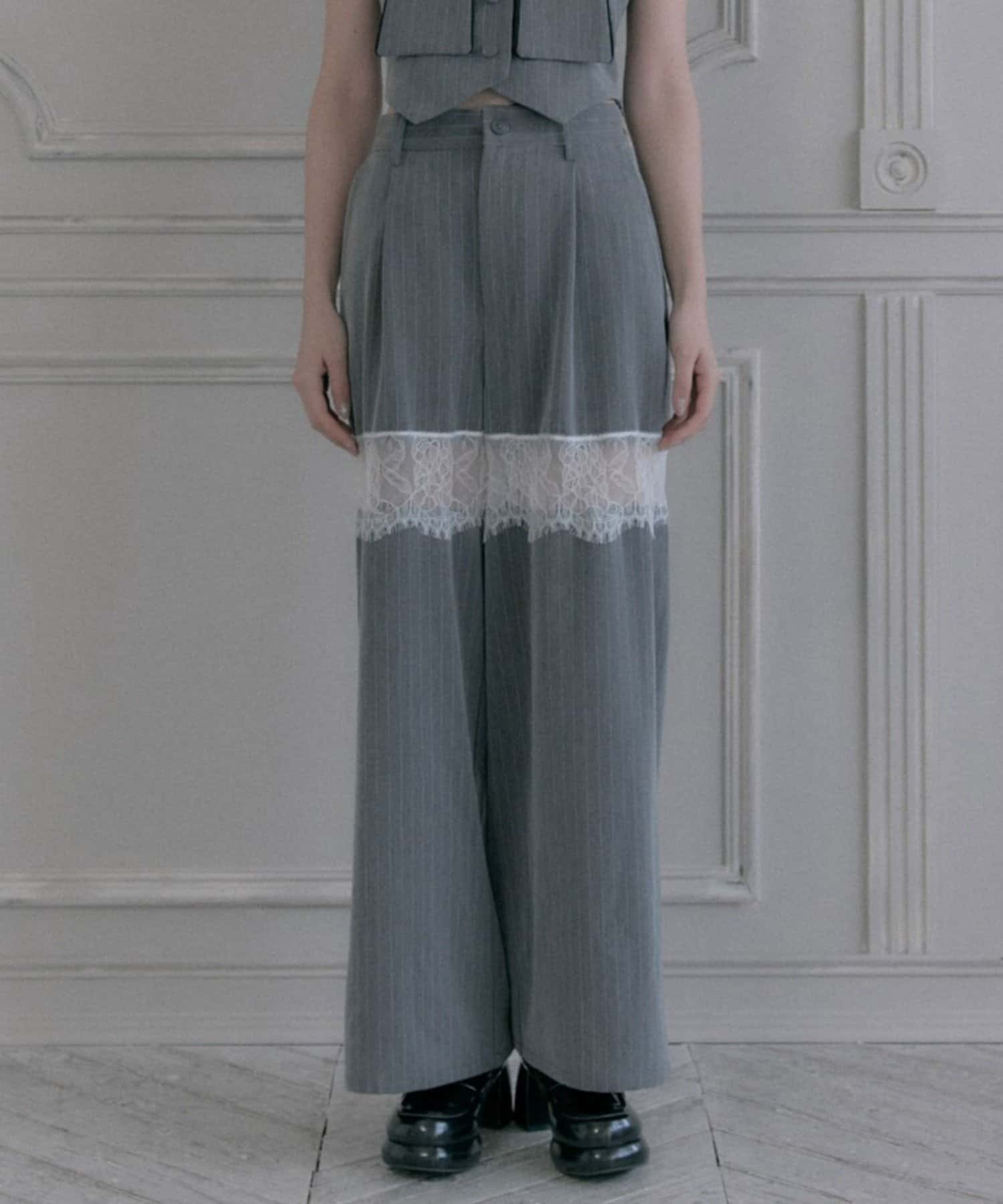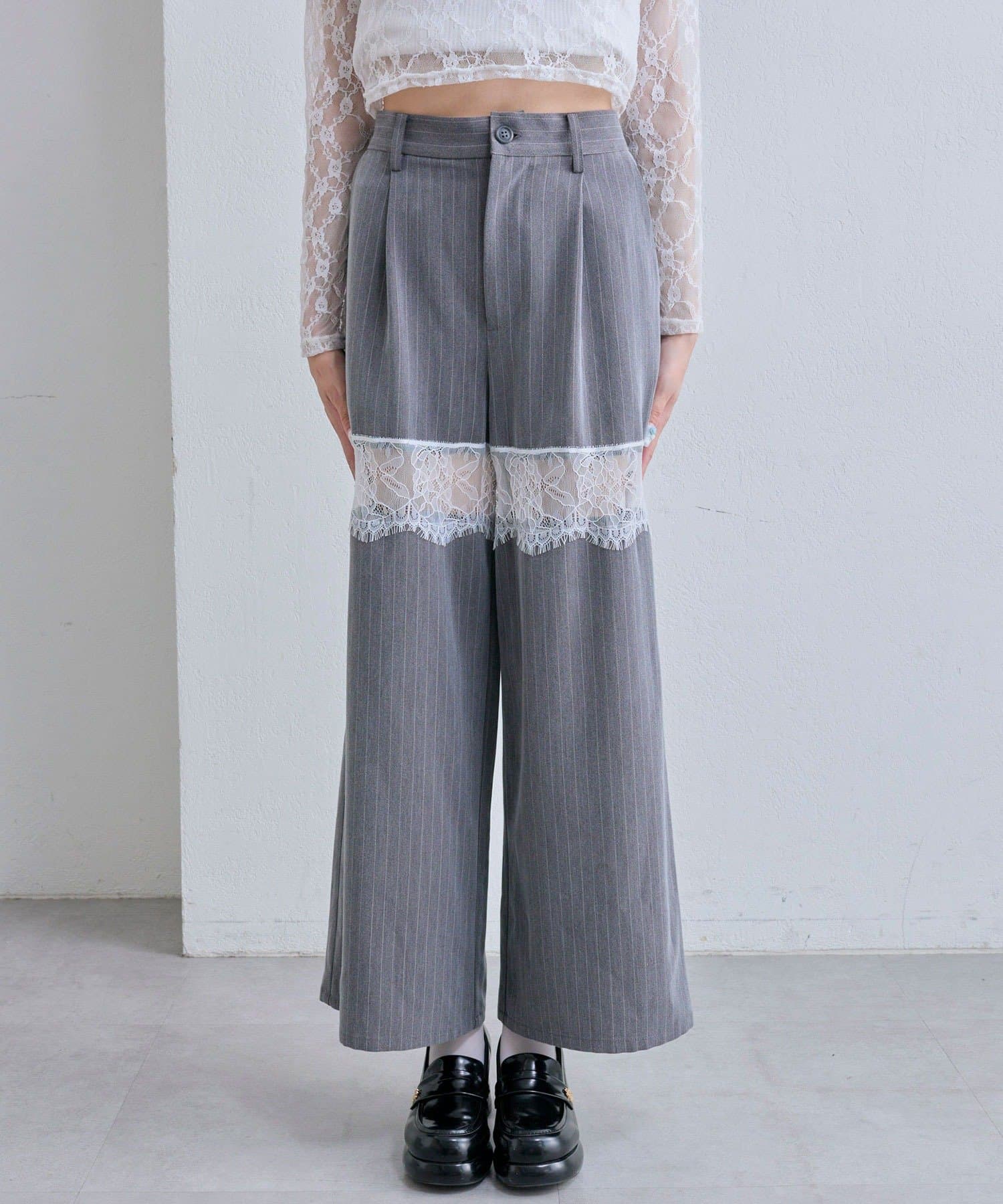 【PinSucreCollection】レース切替ワイドスラックスパンツ