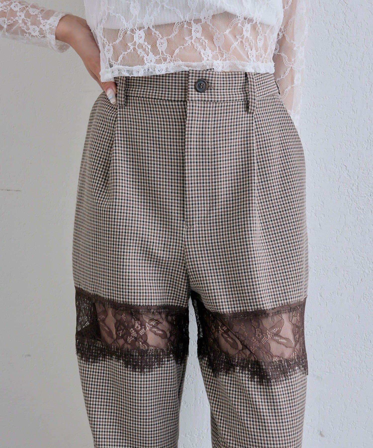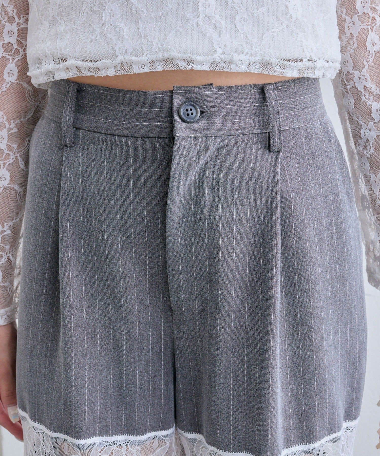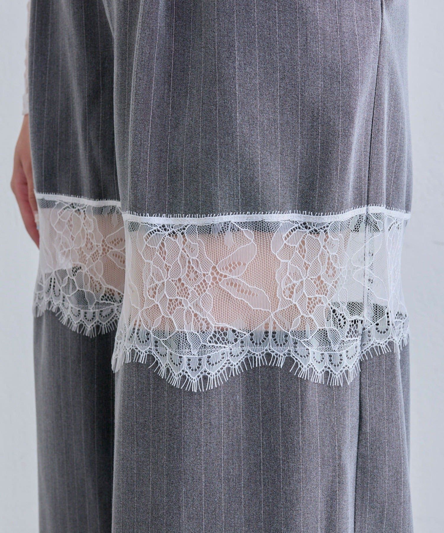 ・太もも部分のレース切り替えが、さりげない肌見せで抜け感をプラスするデザイン。