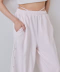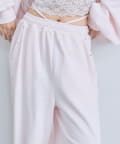 ・ウエストの紐は腰に巻いて後ろで結ぶと、トレンド感のある着こなしに。
