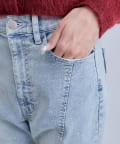 ・ストレッチ性のある柔らかいデニム素材なので動きやすく、ストレスフリーな着心地です。