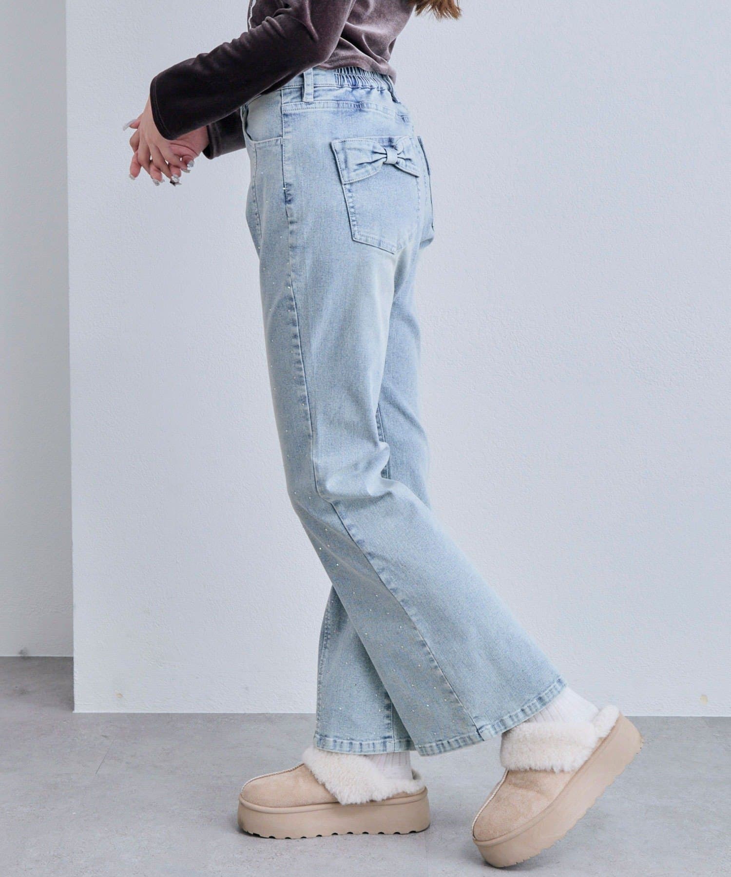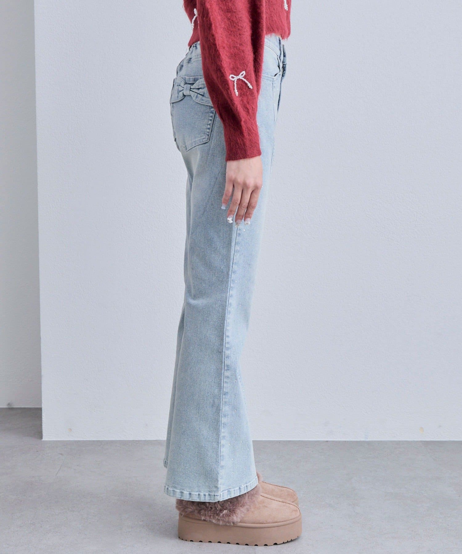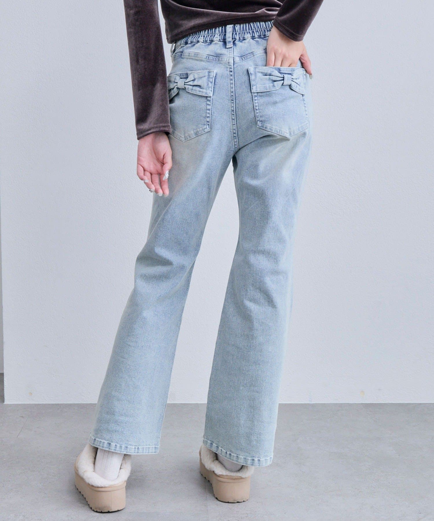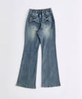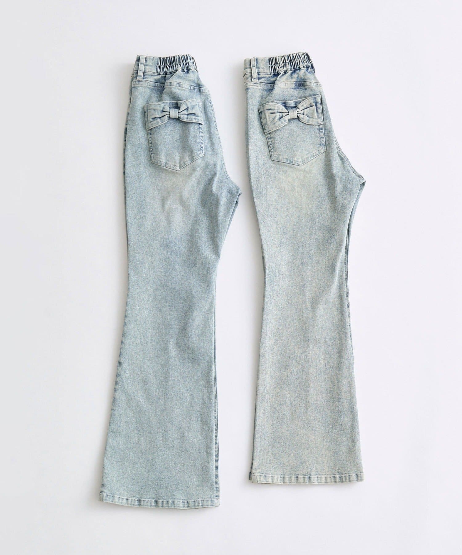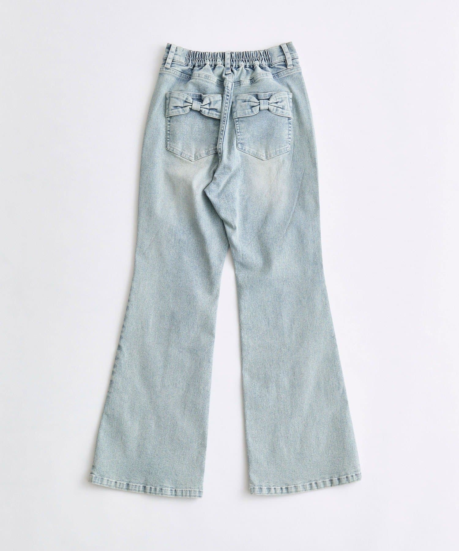 後ろ姿まで可愛い♡リボンポケットのフレアデニム