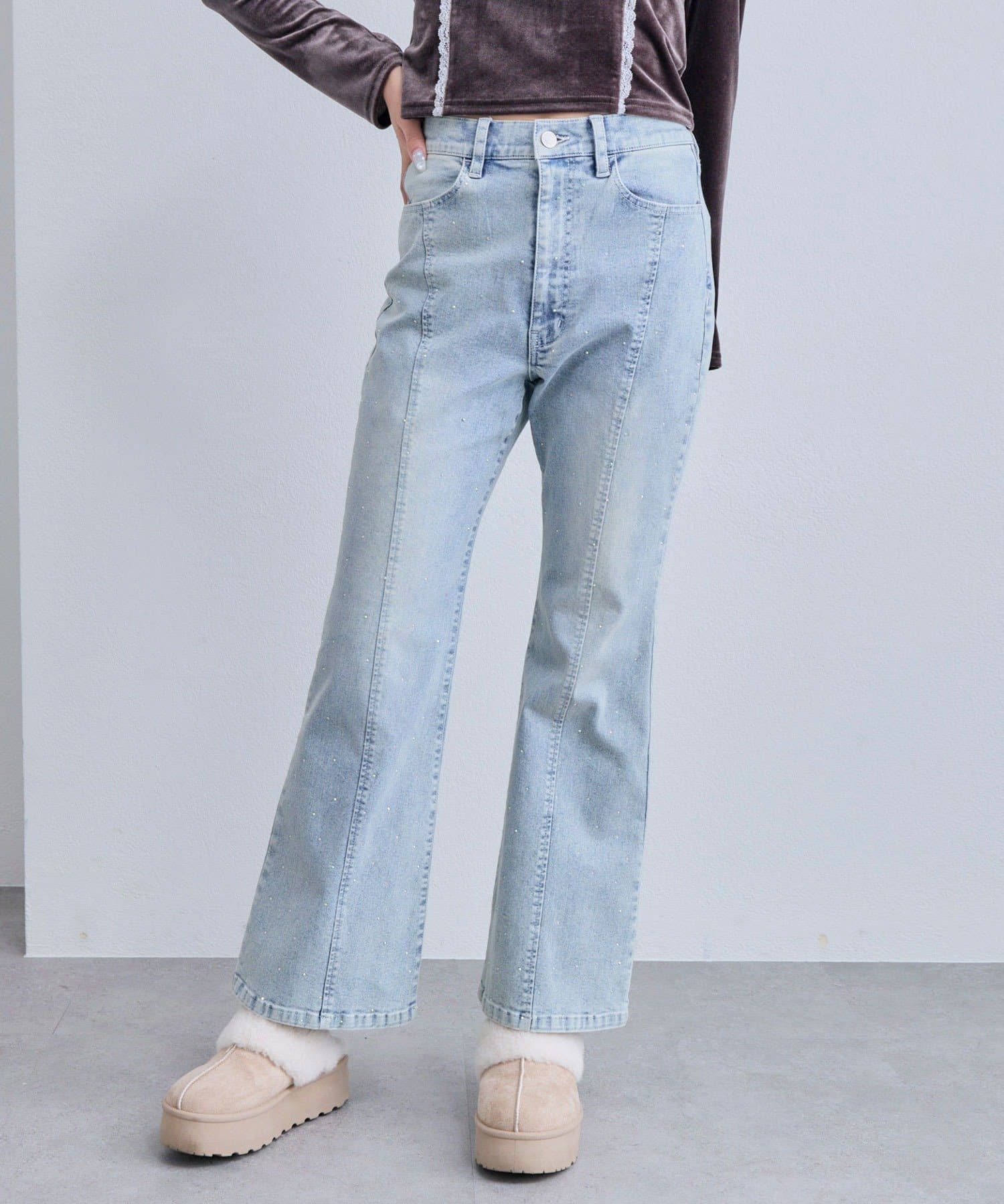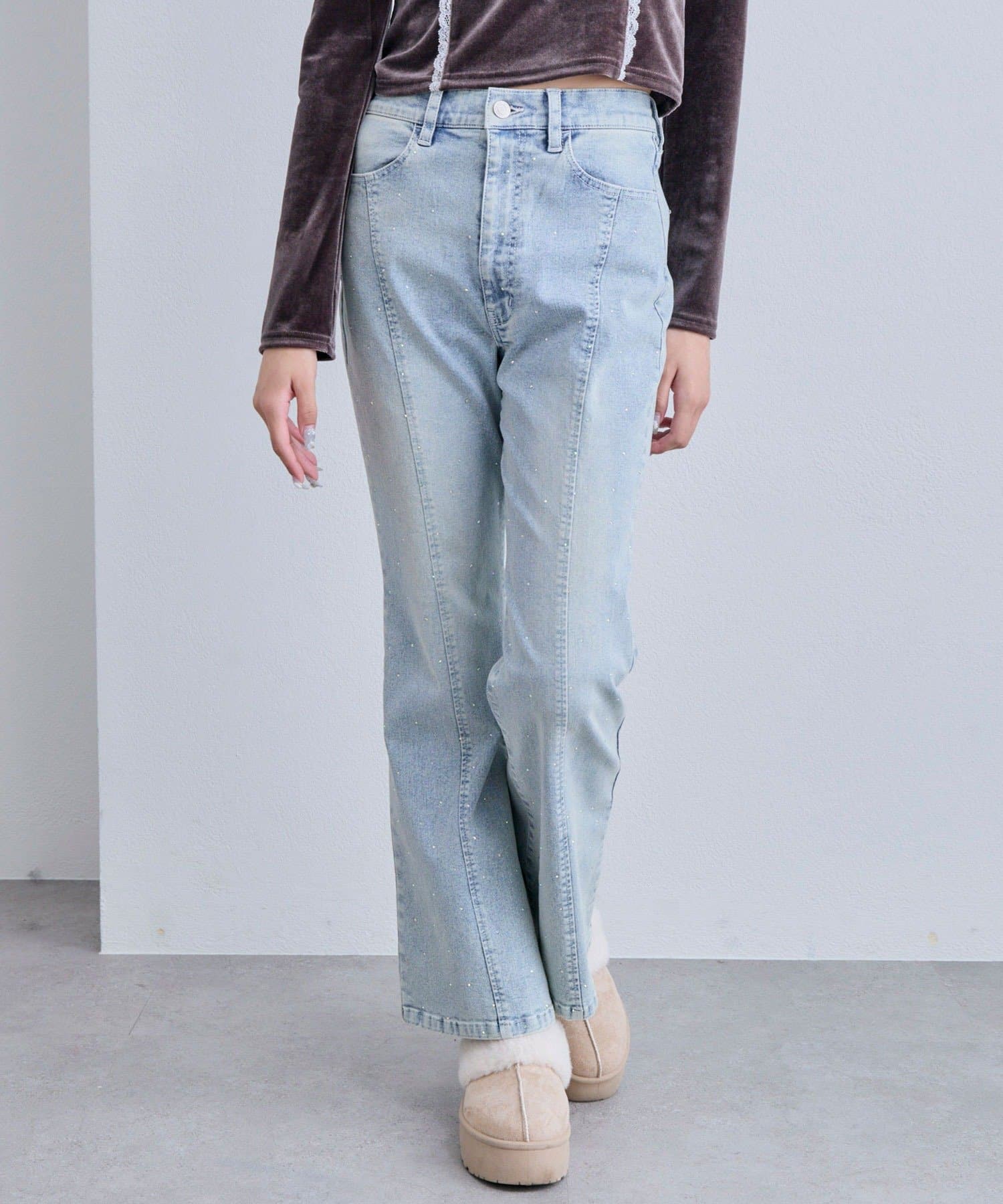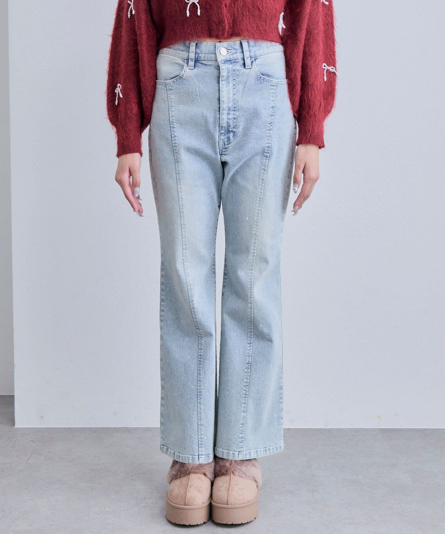 ・程よく広がるフレアラインで美脚見えが叶うスタイルアップデニム。
