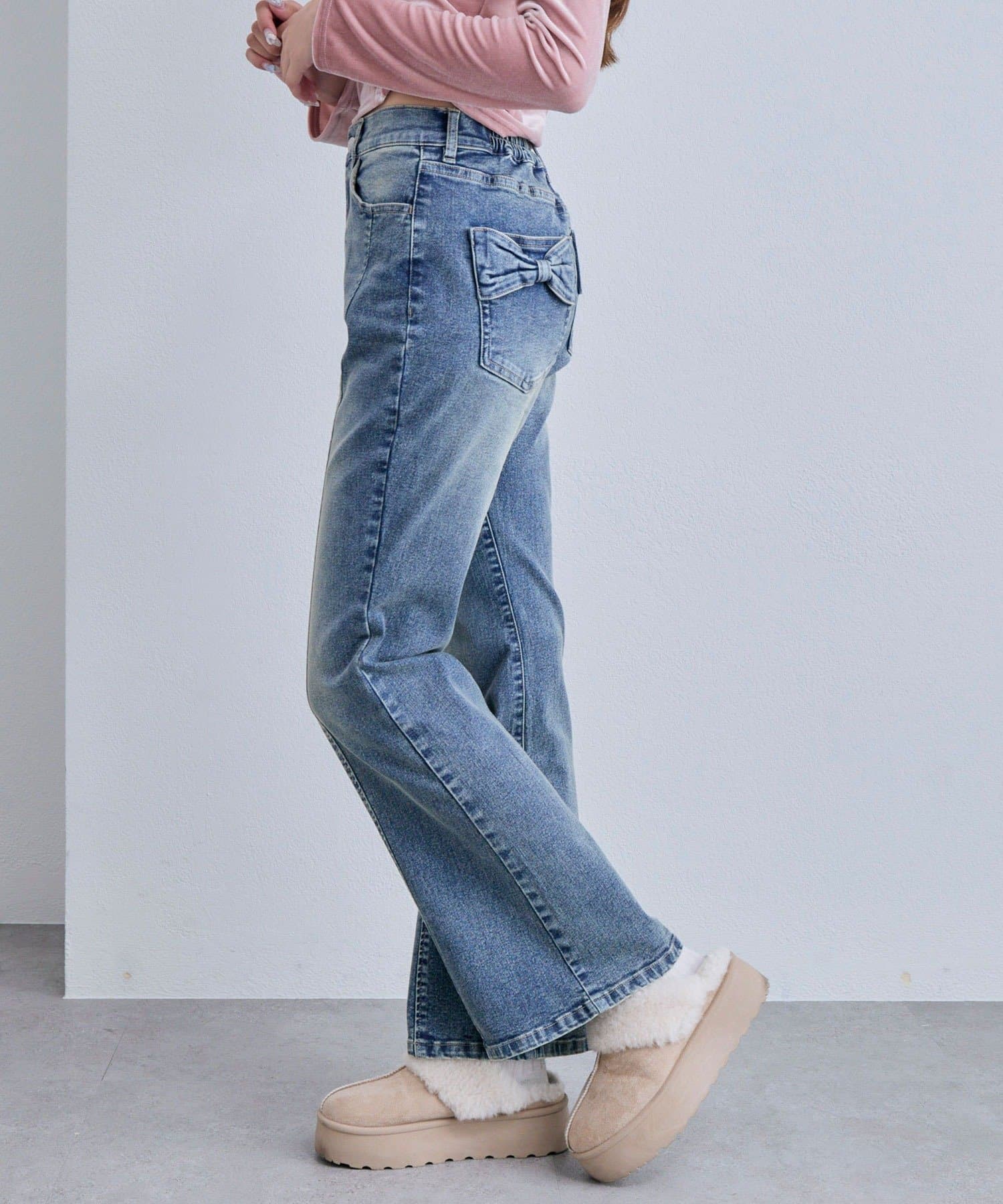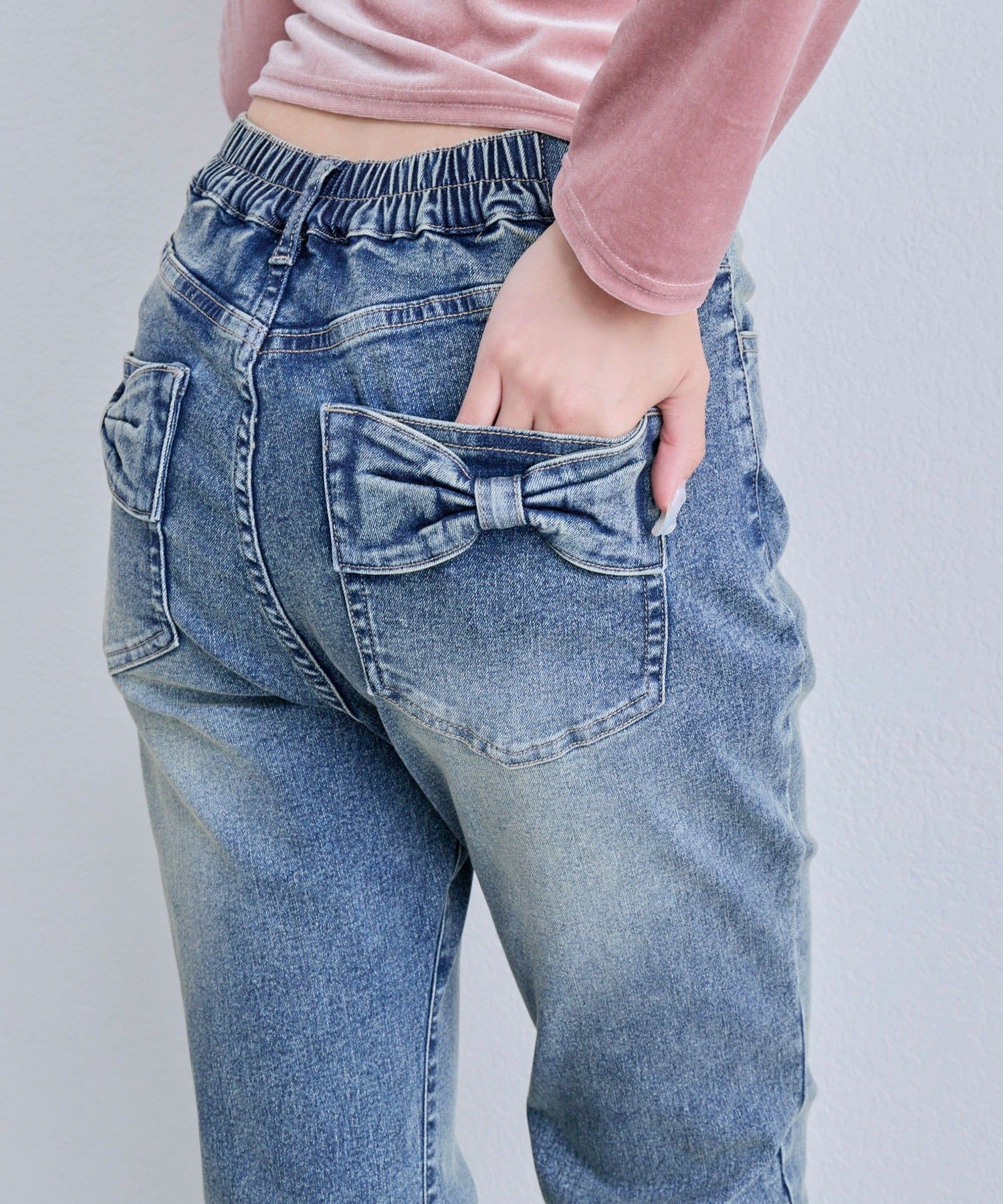 ・後ろポケットのリボンがさりげなく可愛いアクセントになるデザイン。