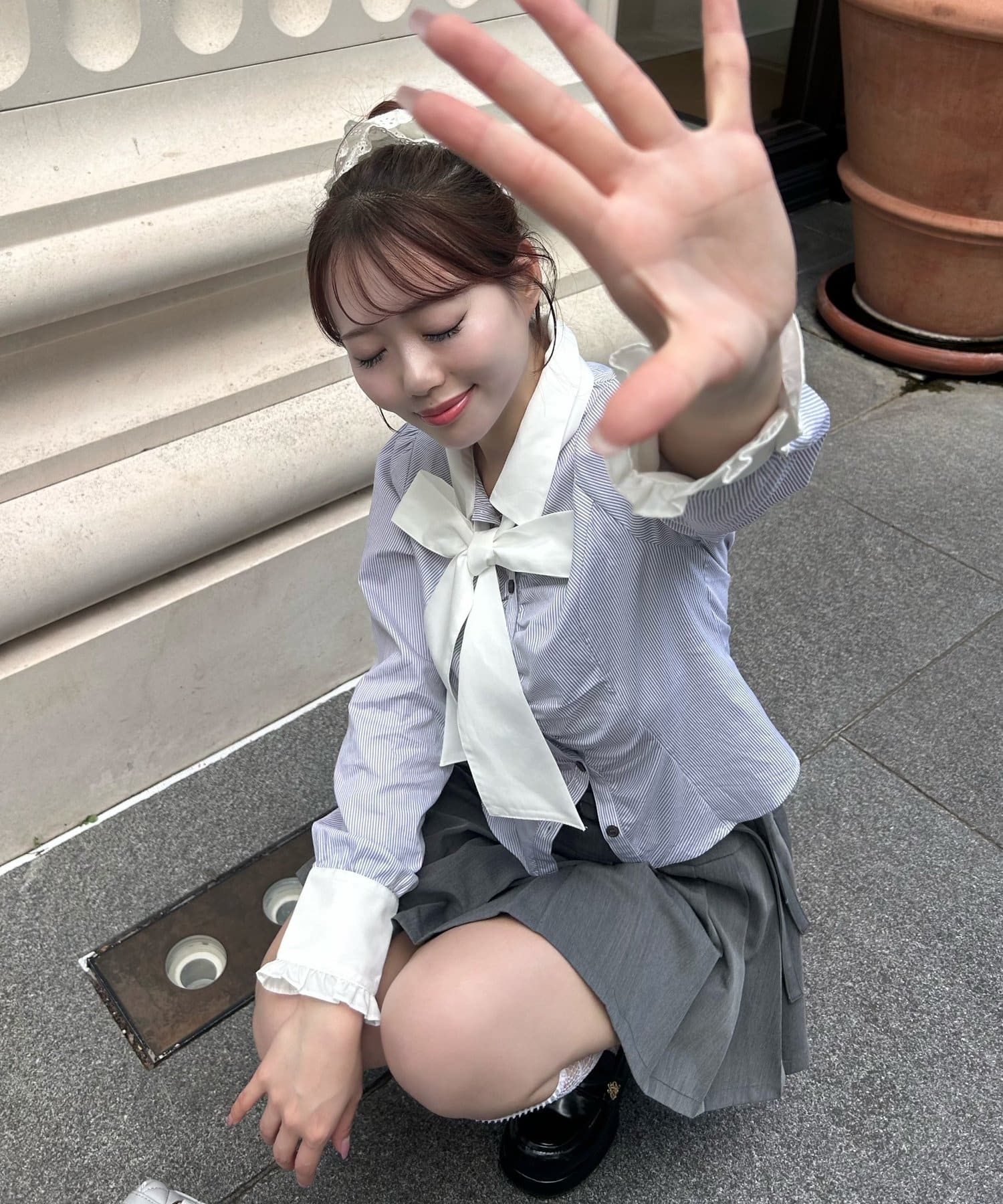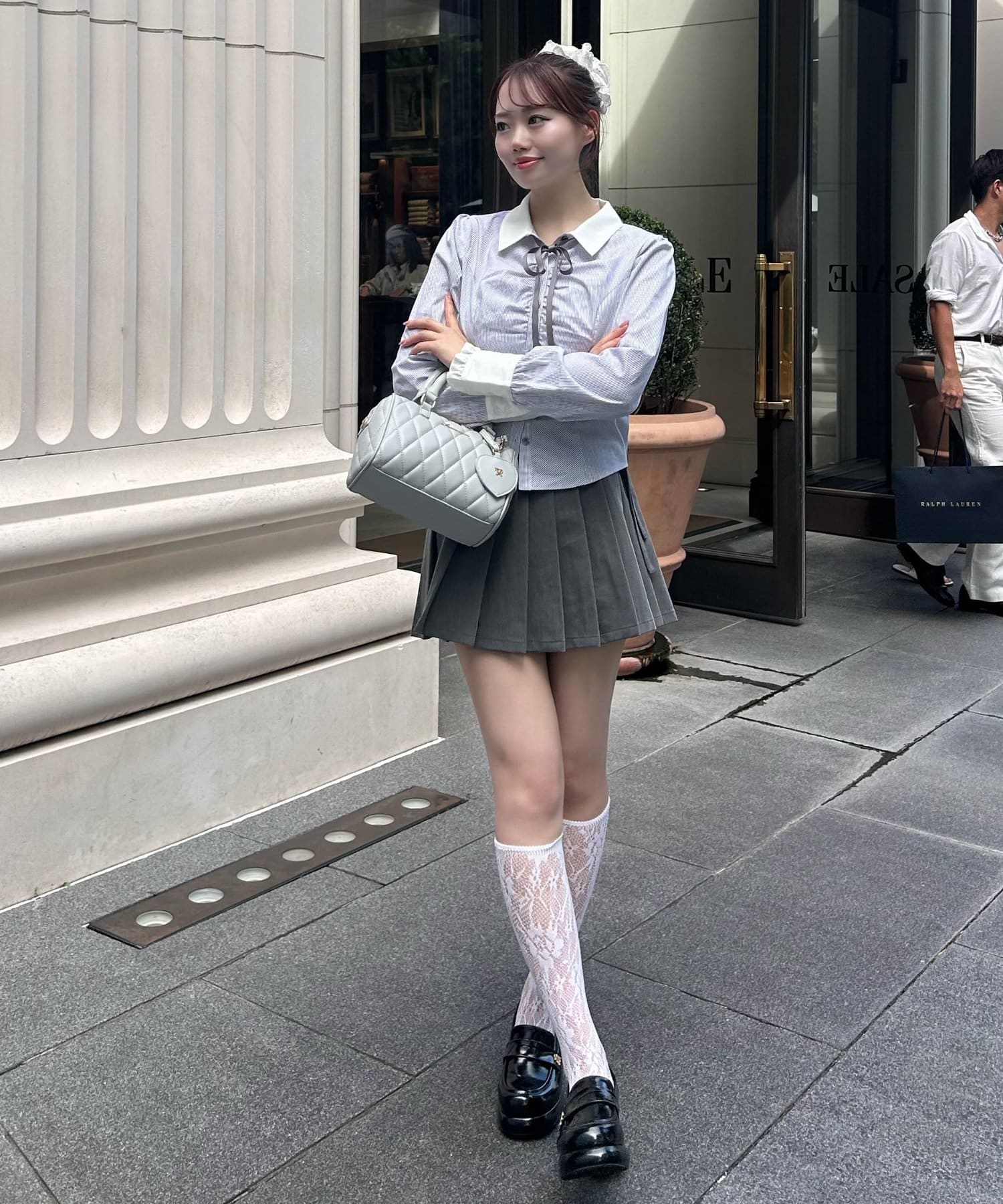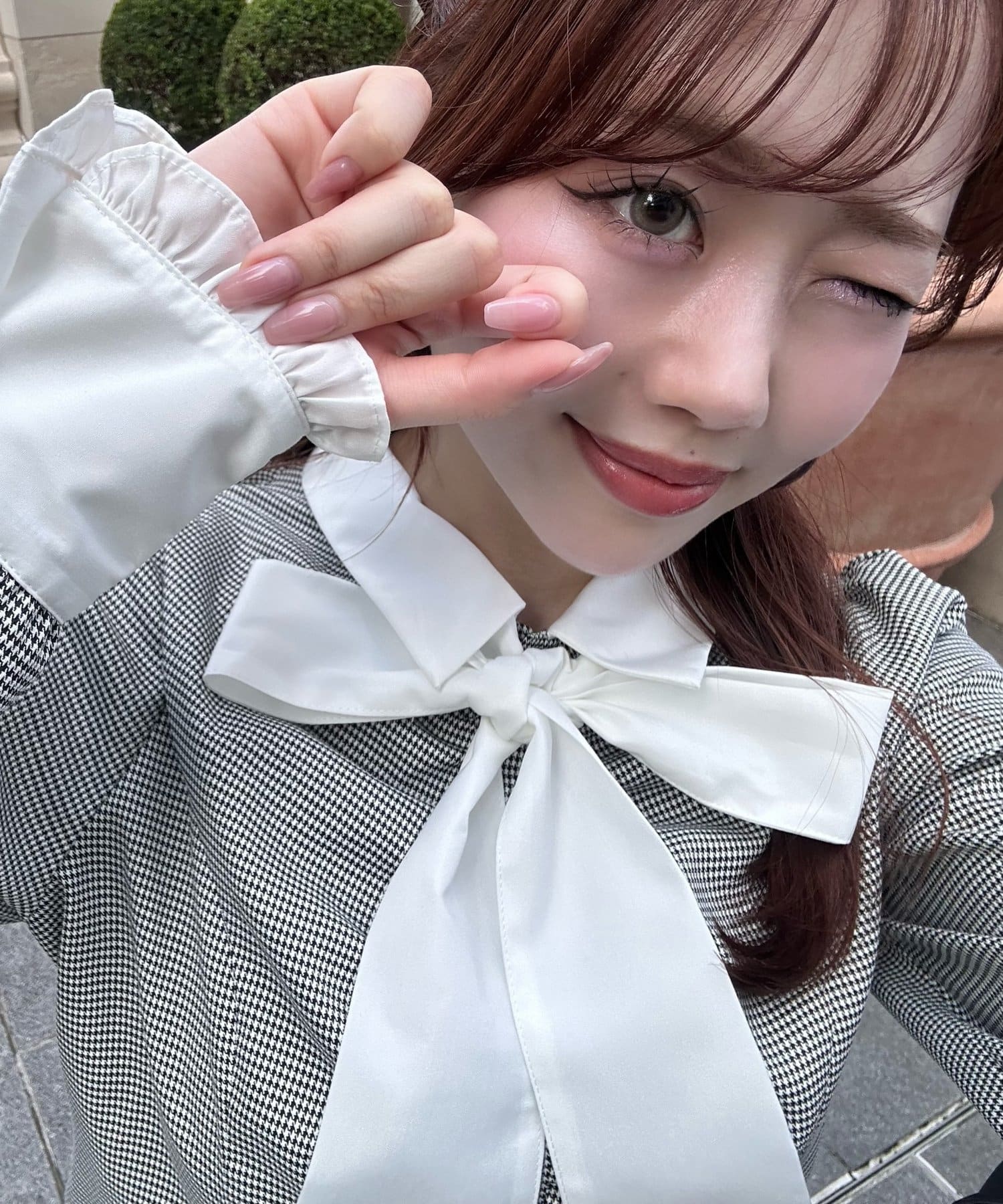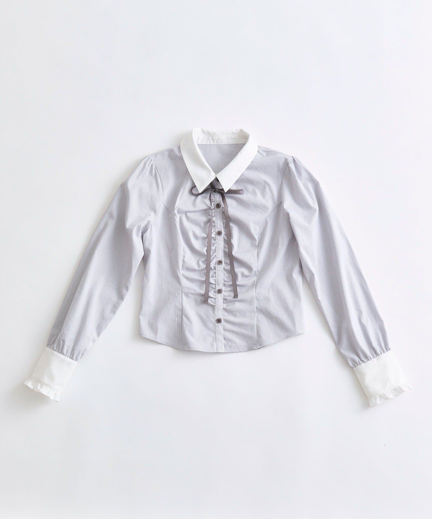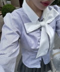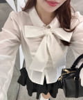 ・リボンは取り外し可能になってるので、オフィスカジュアルでも着れるキレイめブラウスになります。
