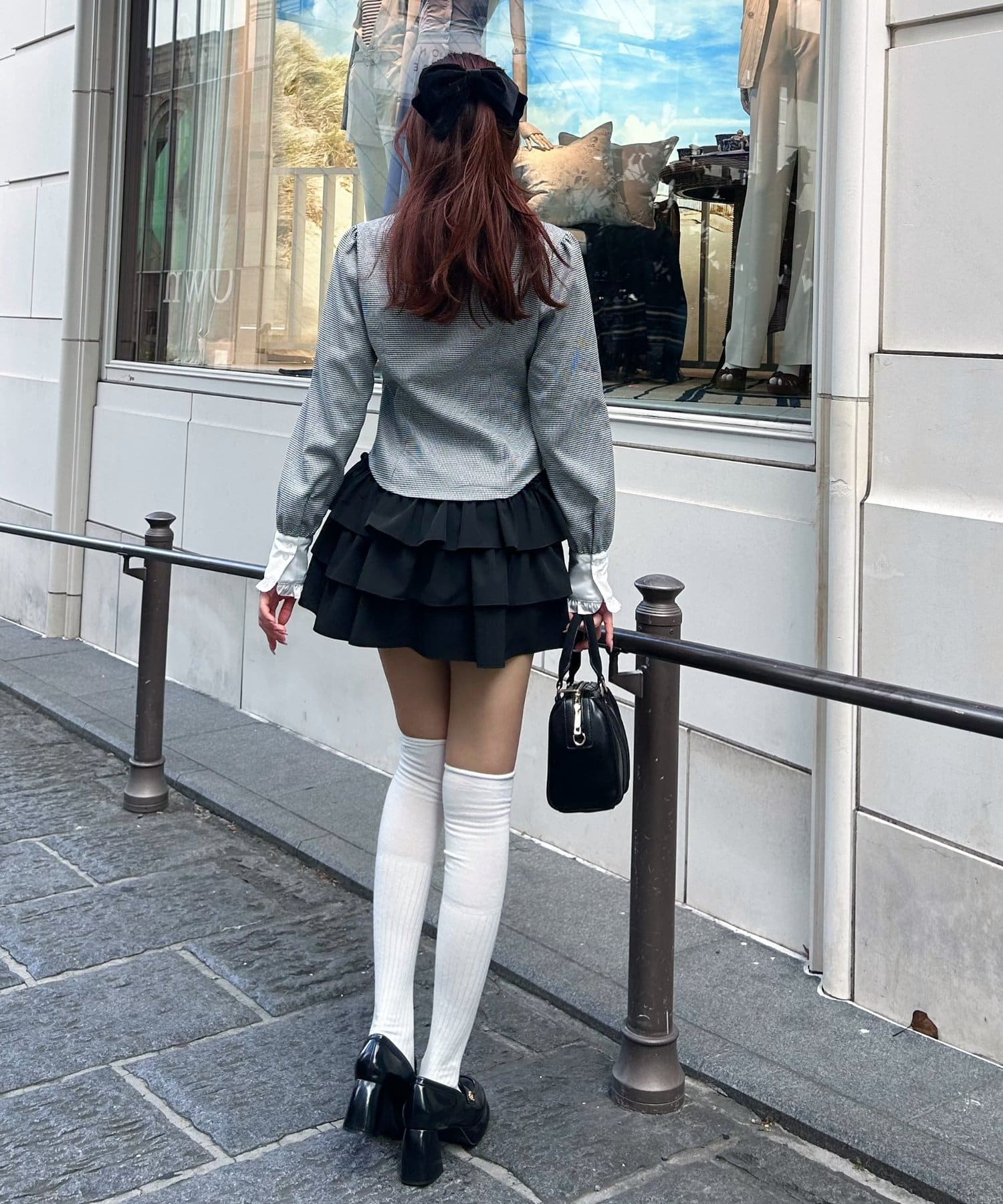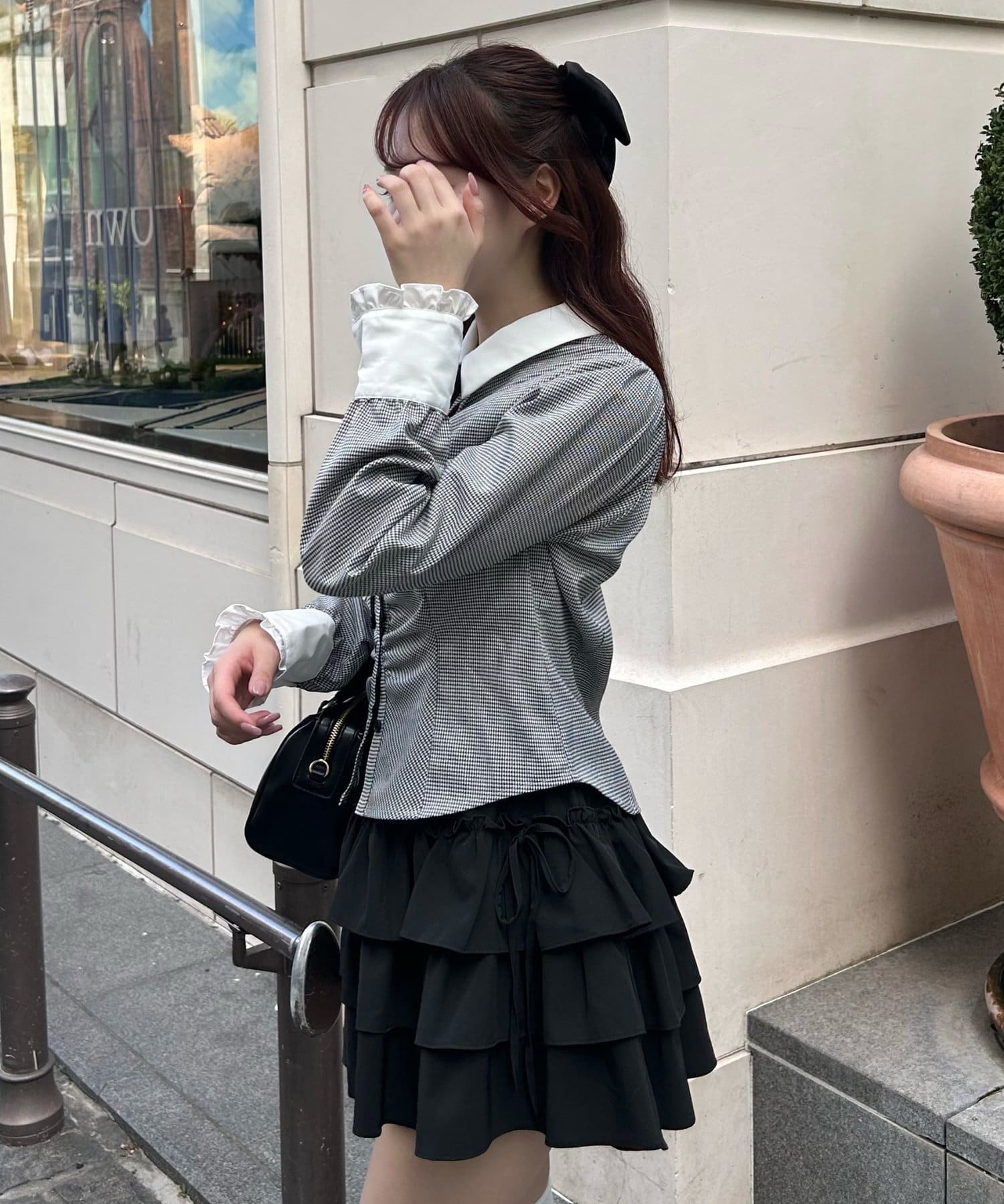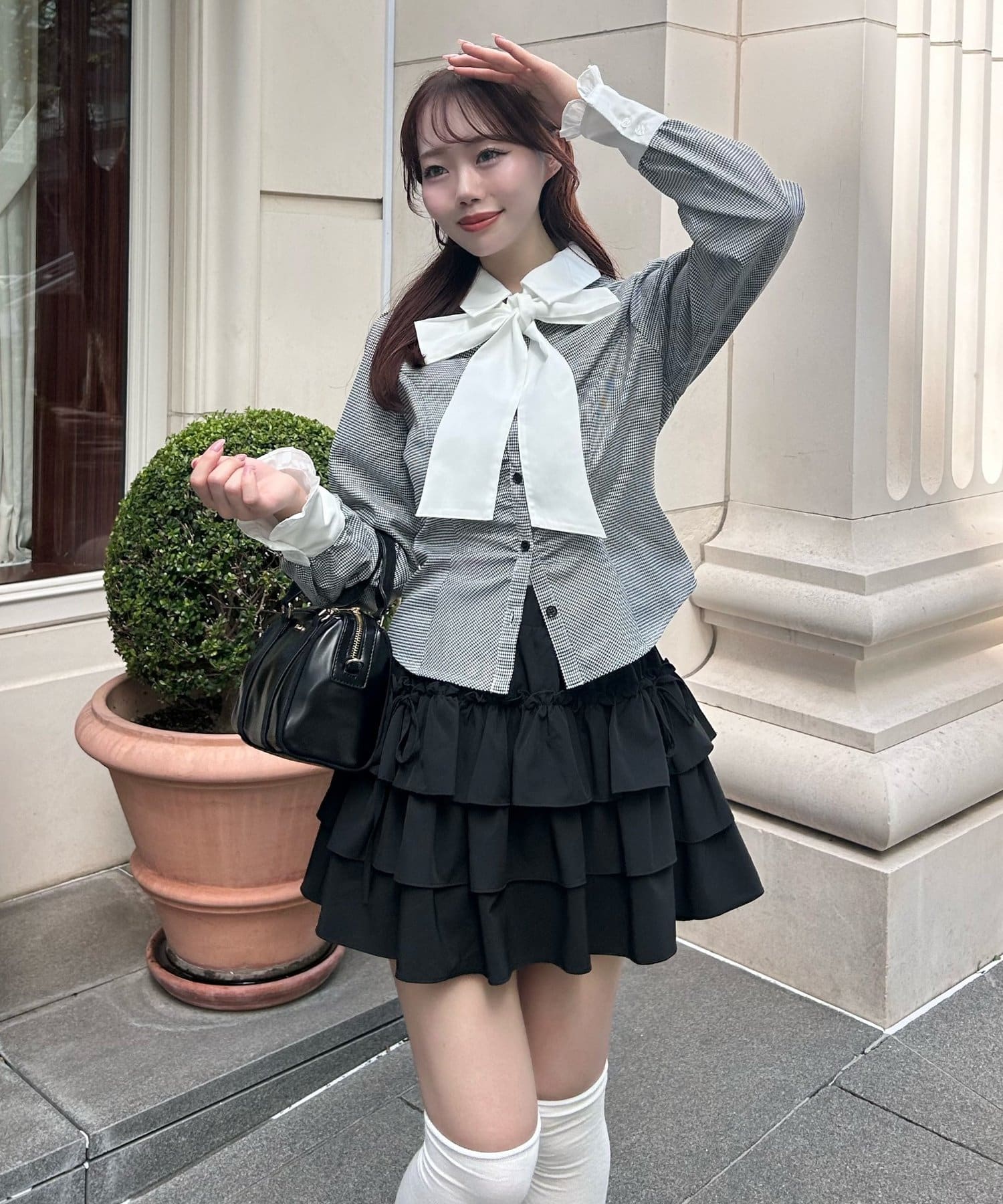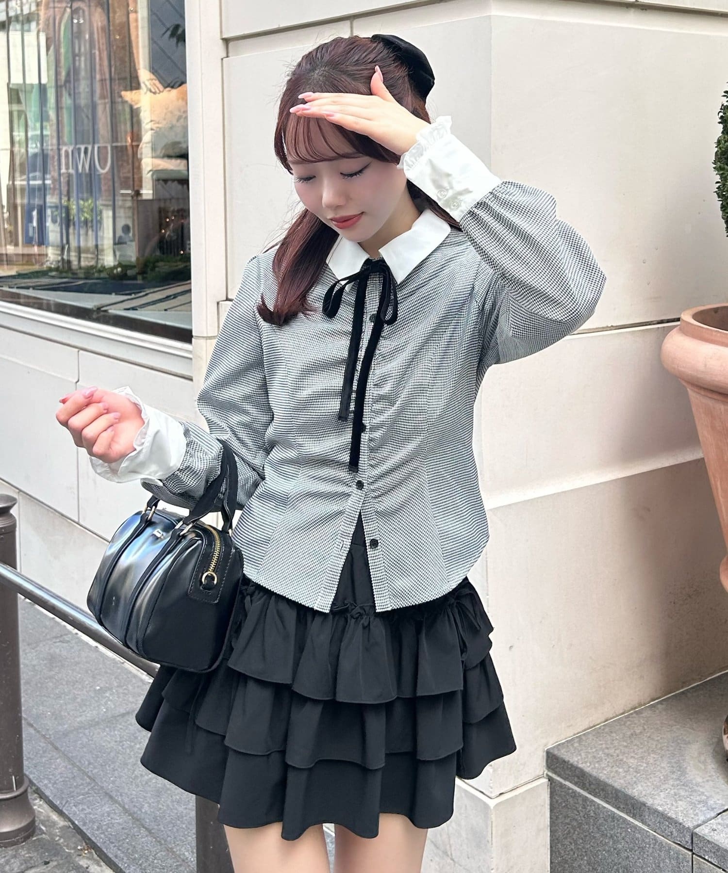 ・ティアードスカートを合わせてガーリーにまとめるのがおすすめ。