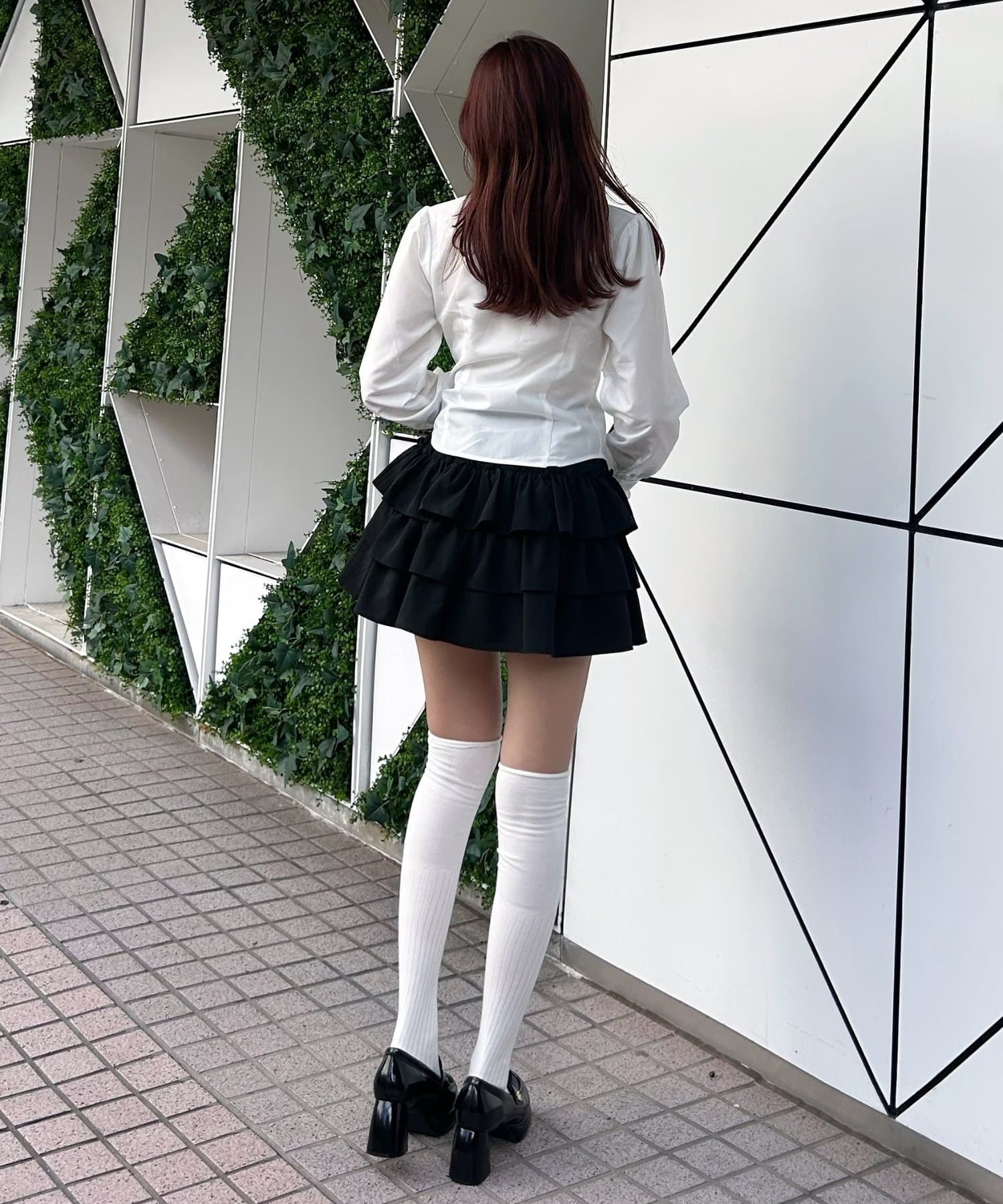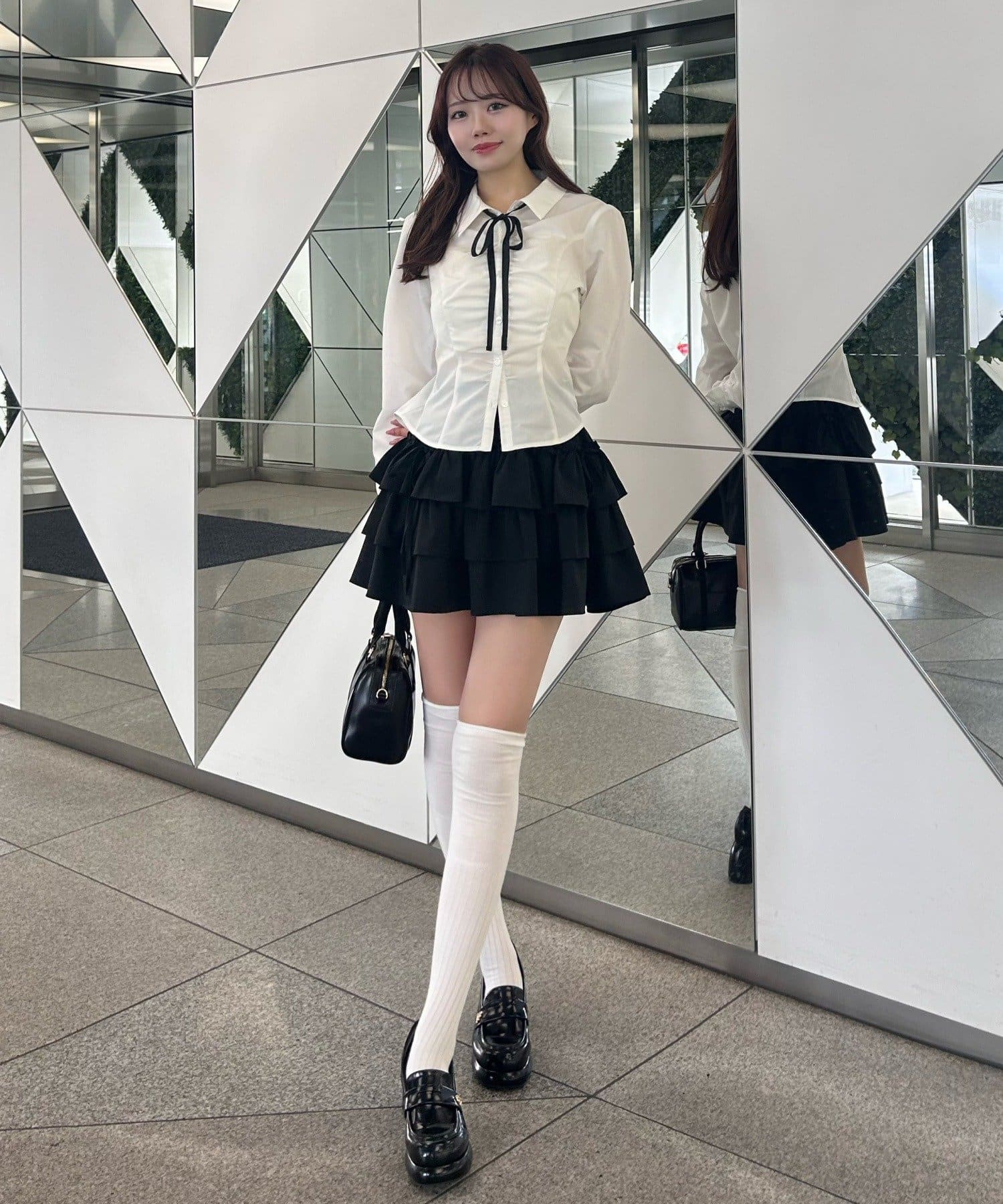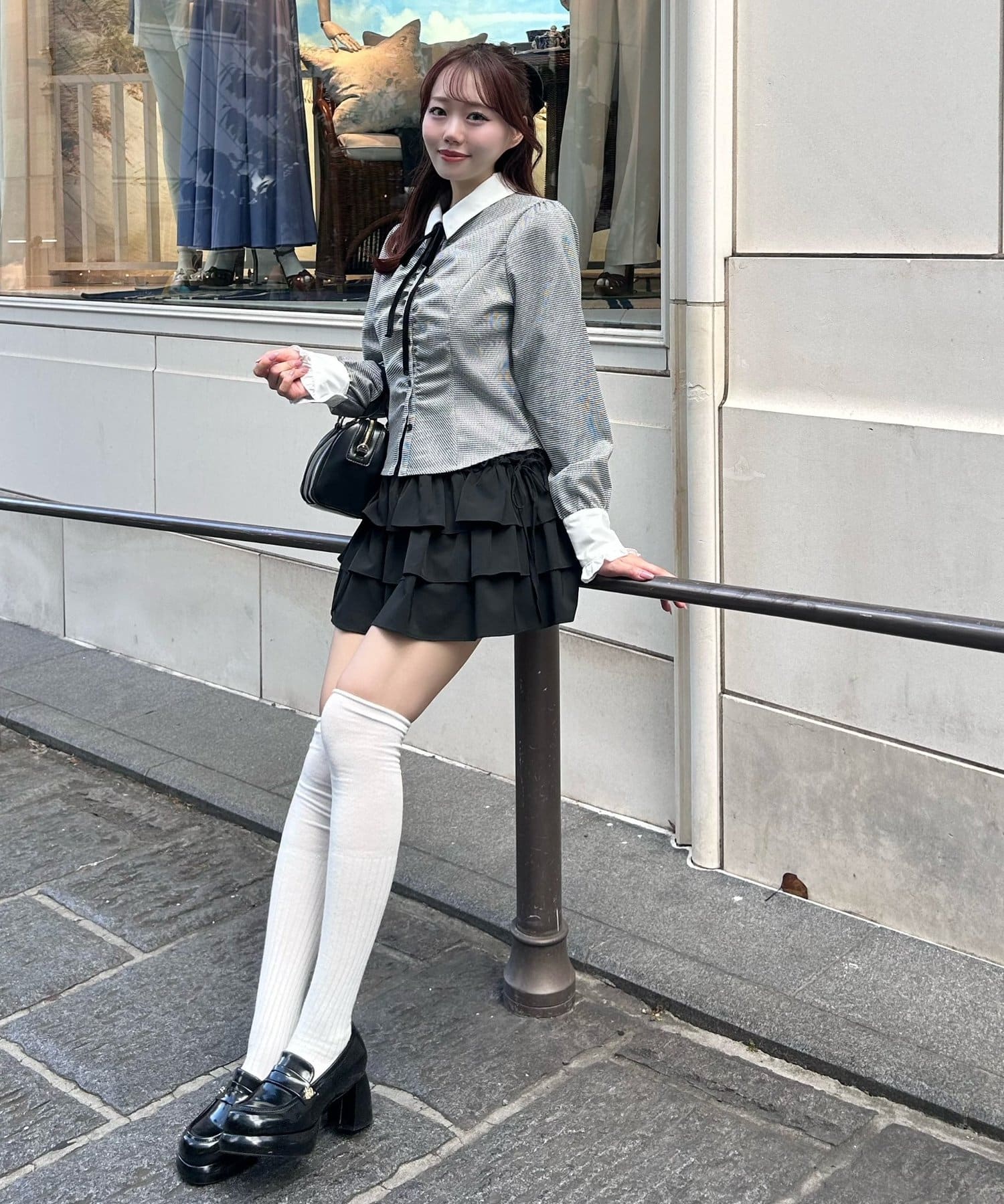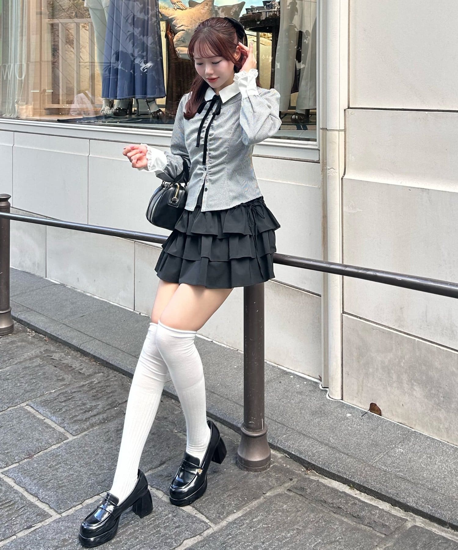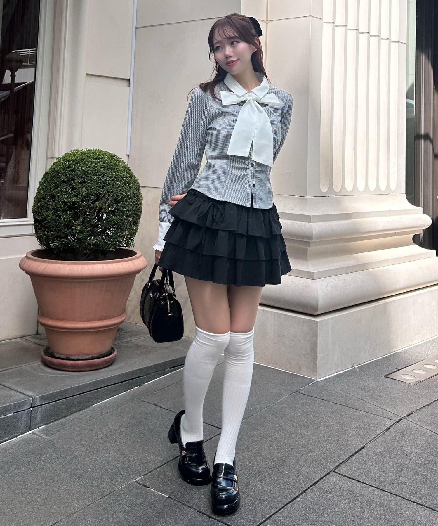 ・ティアードスカートを合わせてガーリーにまとめるのがおすすめ。