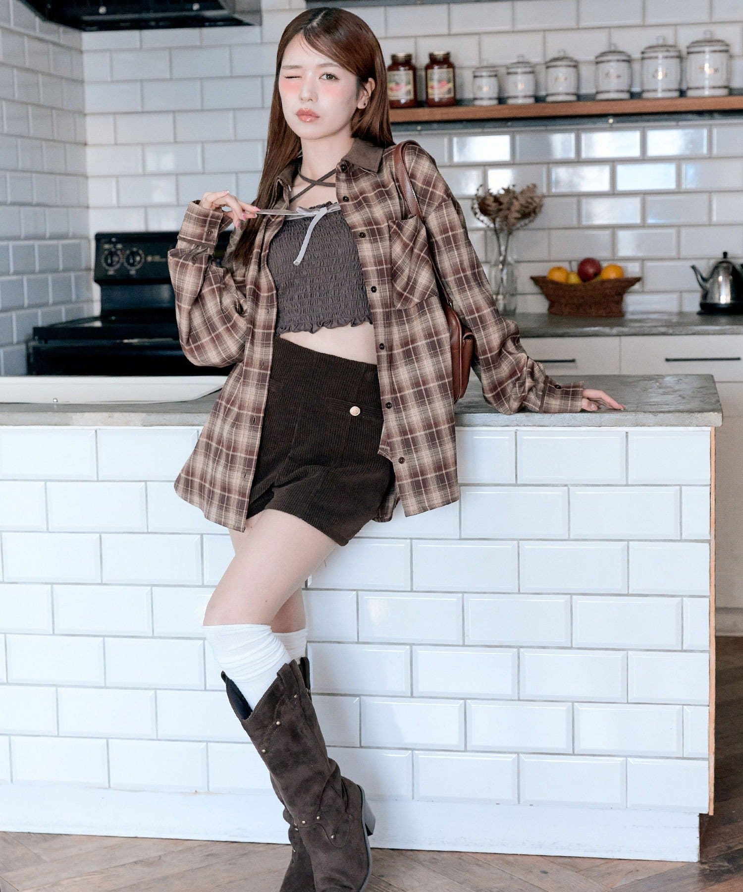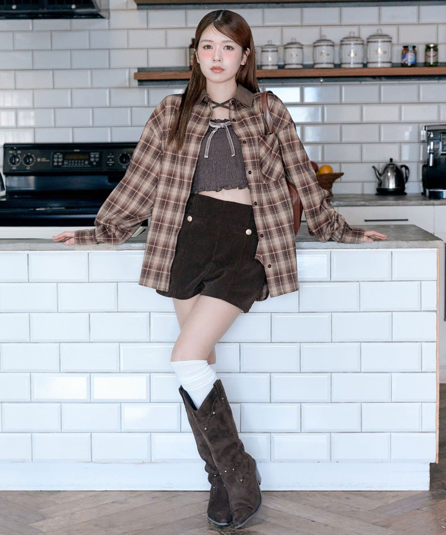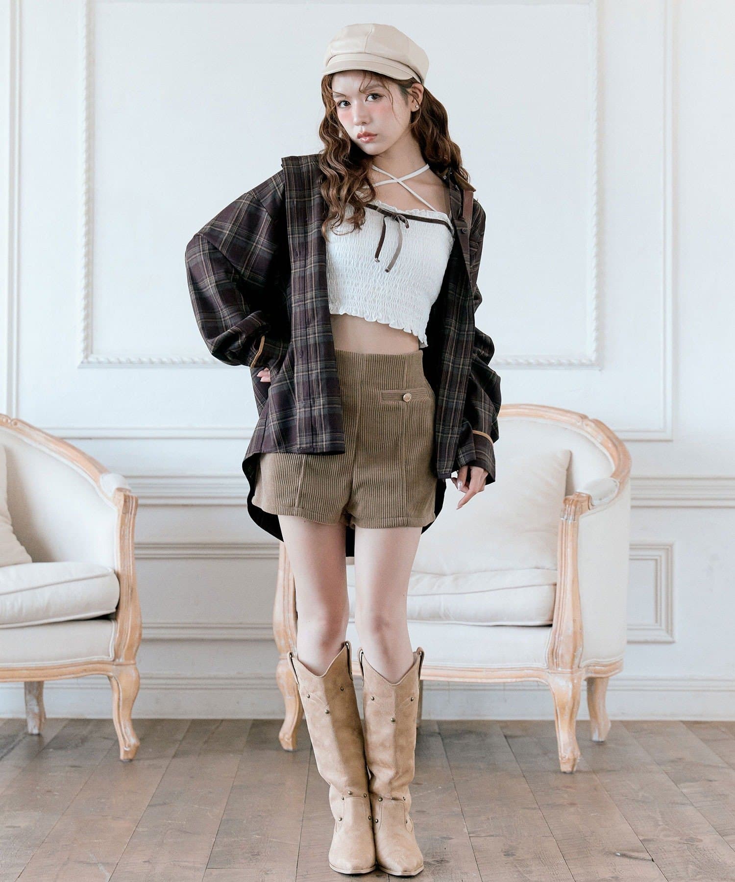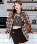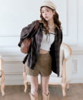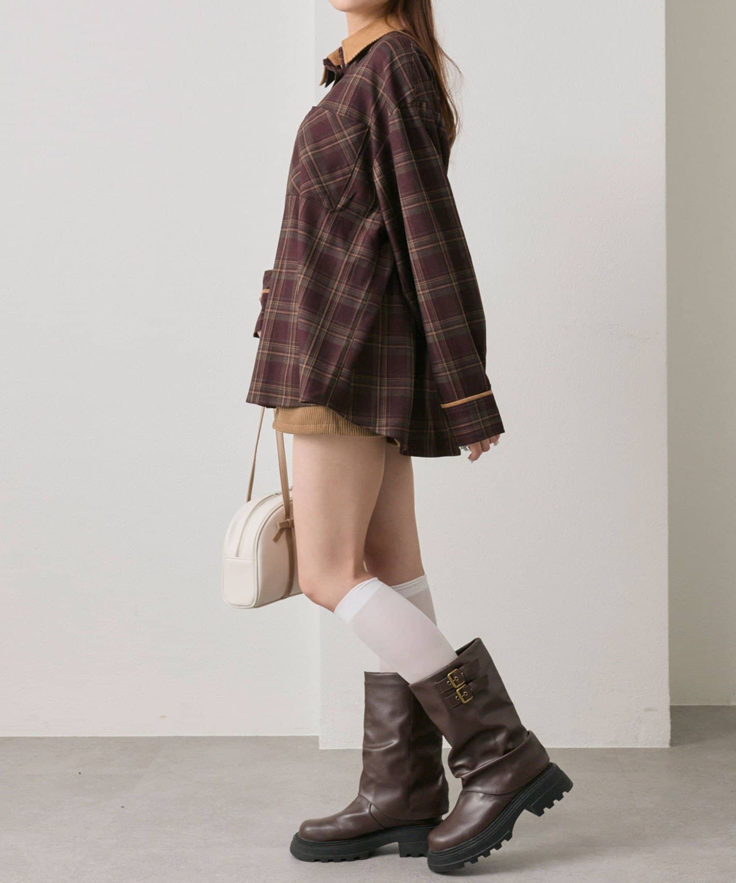 ・ミニボトムを合わせて1枚ですっぽり着るのが今っぽくておすすめ。