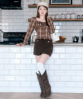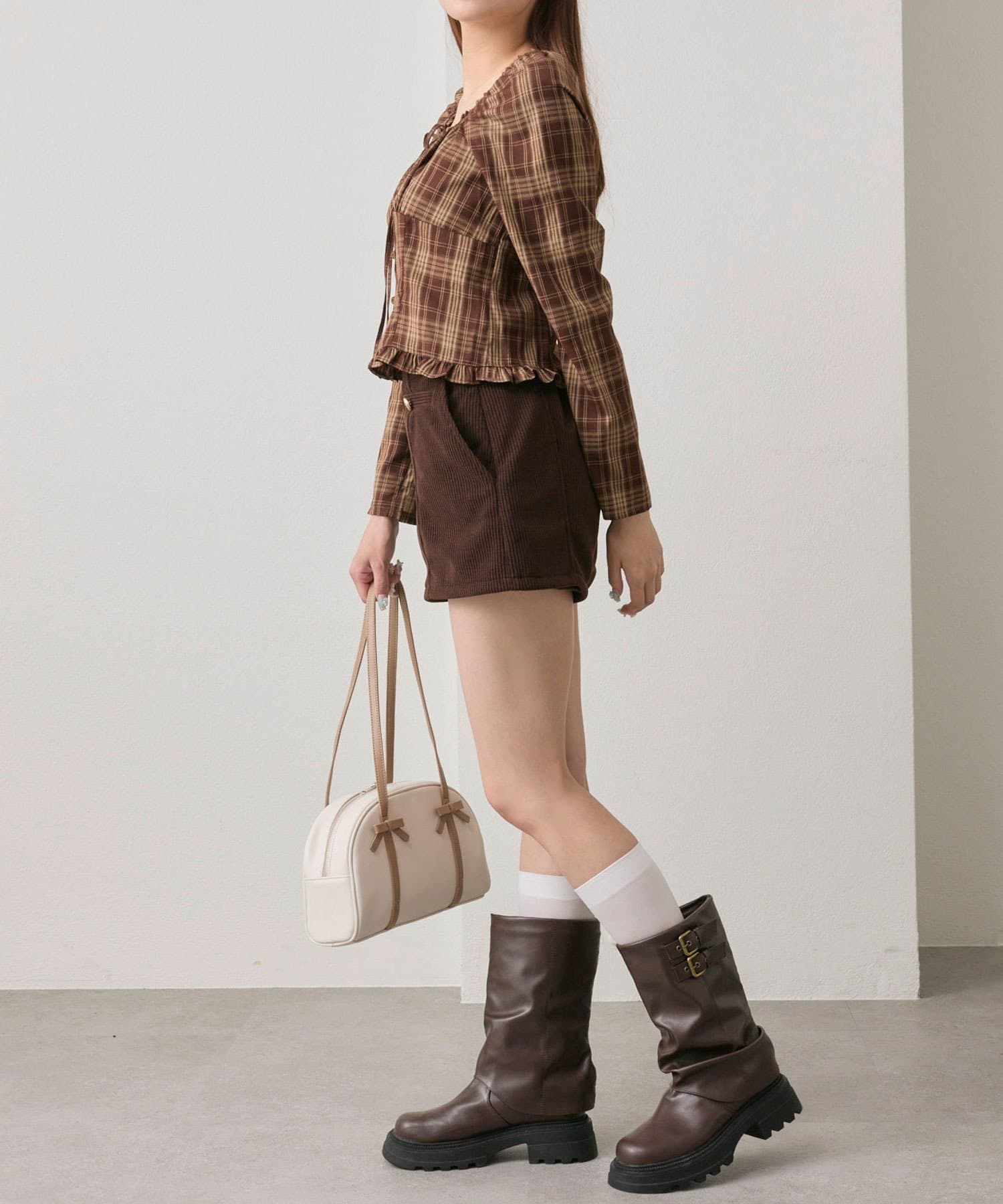 ・ショートパンツを合わせれば、トレンド感のある大人ガーリーな着こなしに。