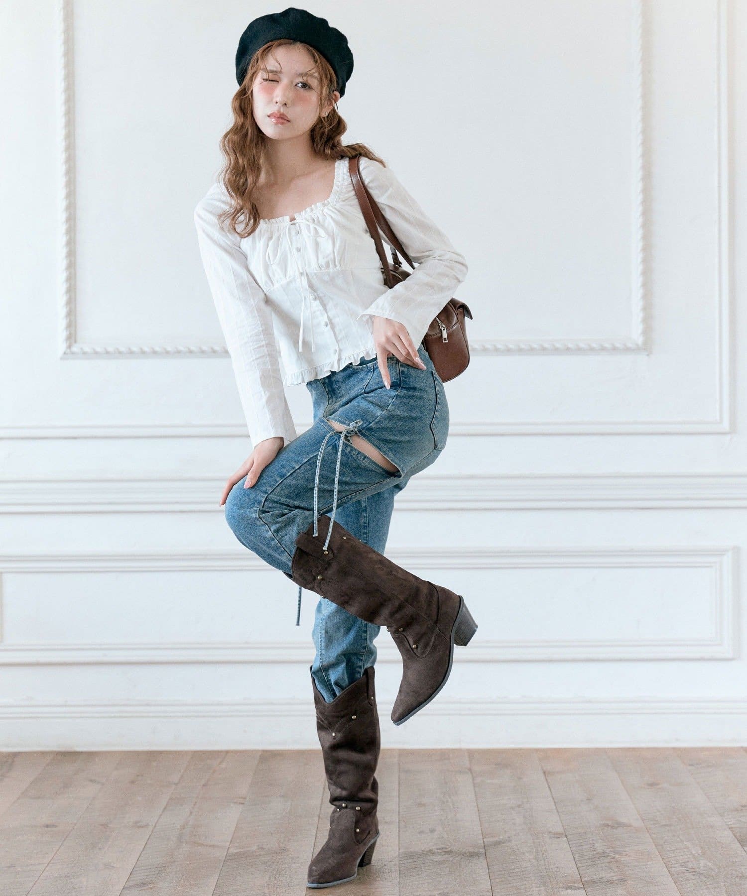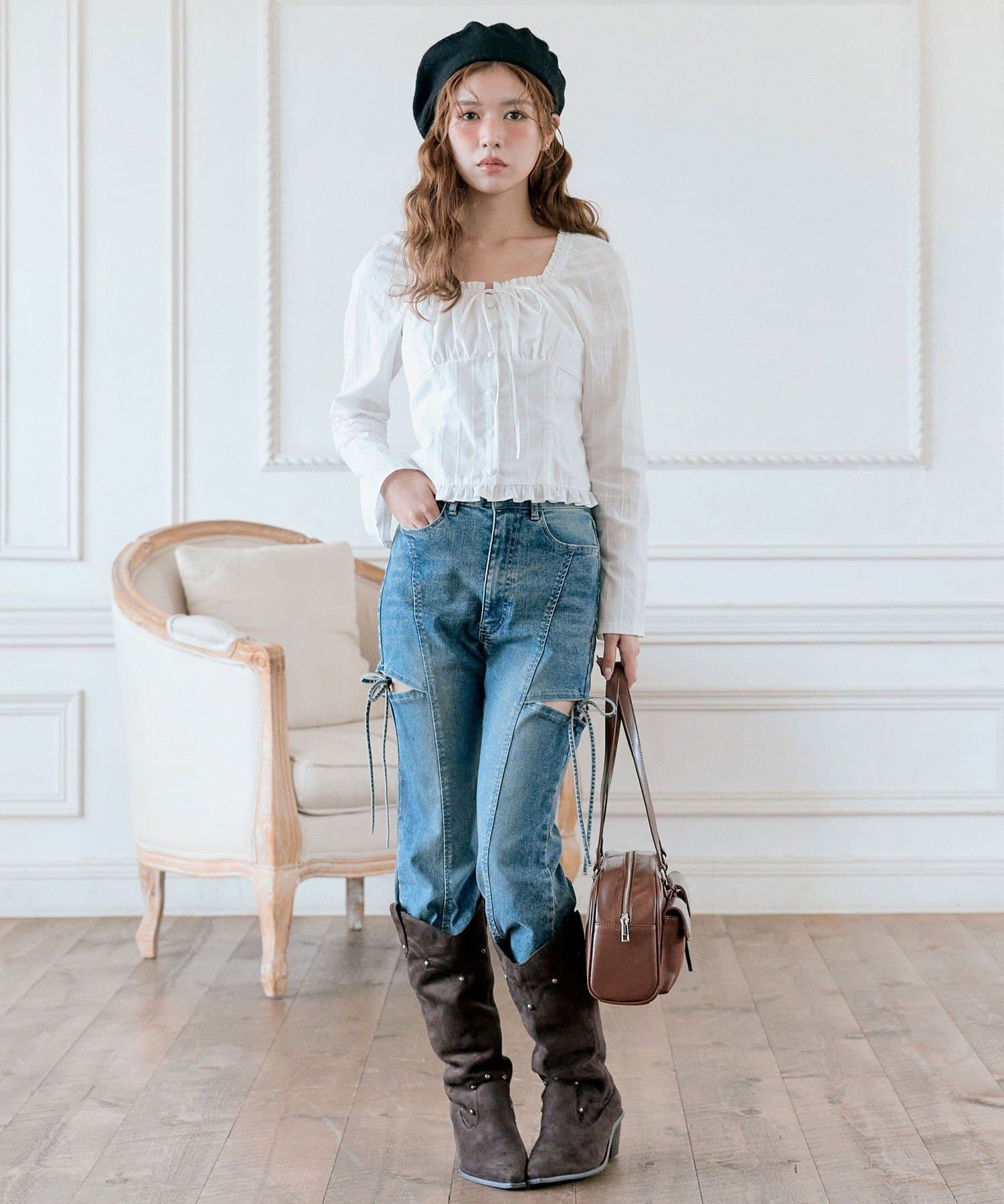 ・デニム合わせでカジュアルダウンさせるのもかわいいです。
