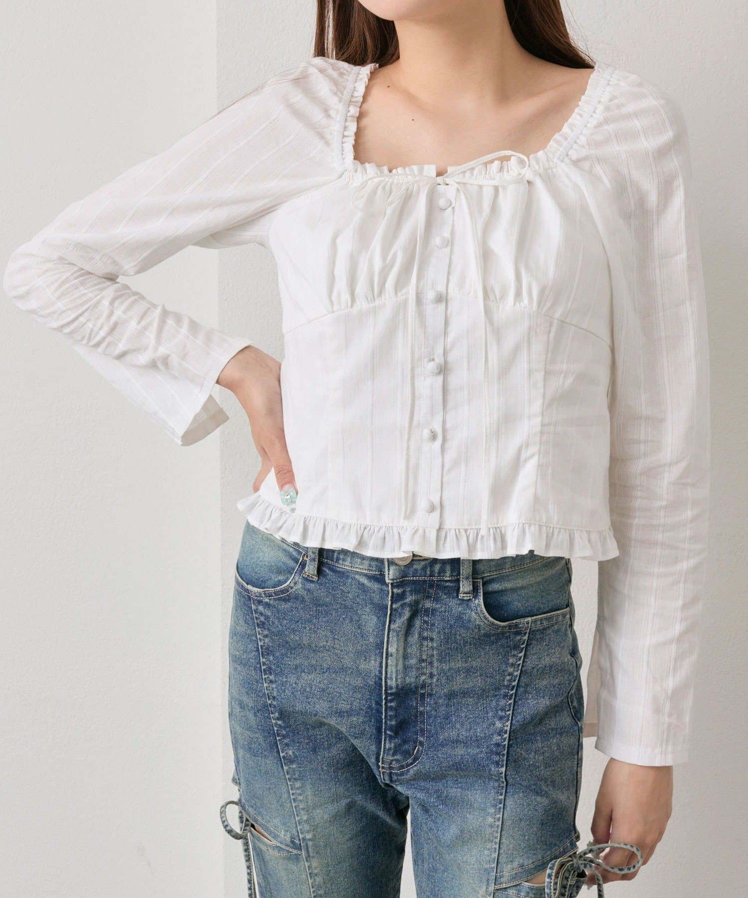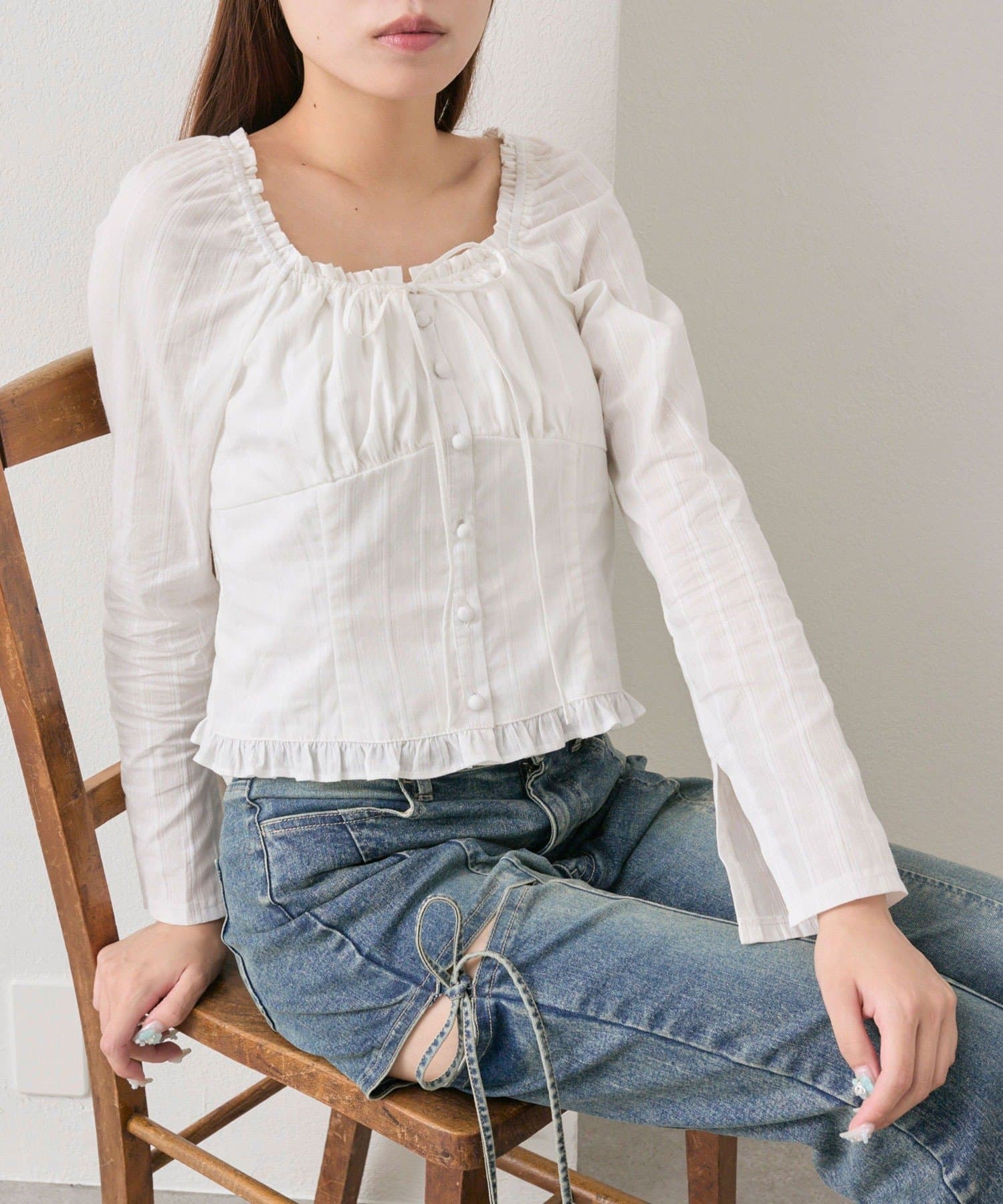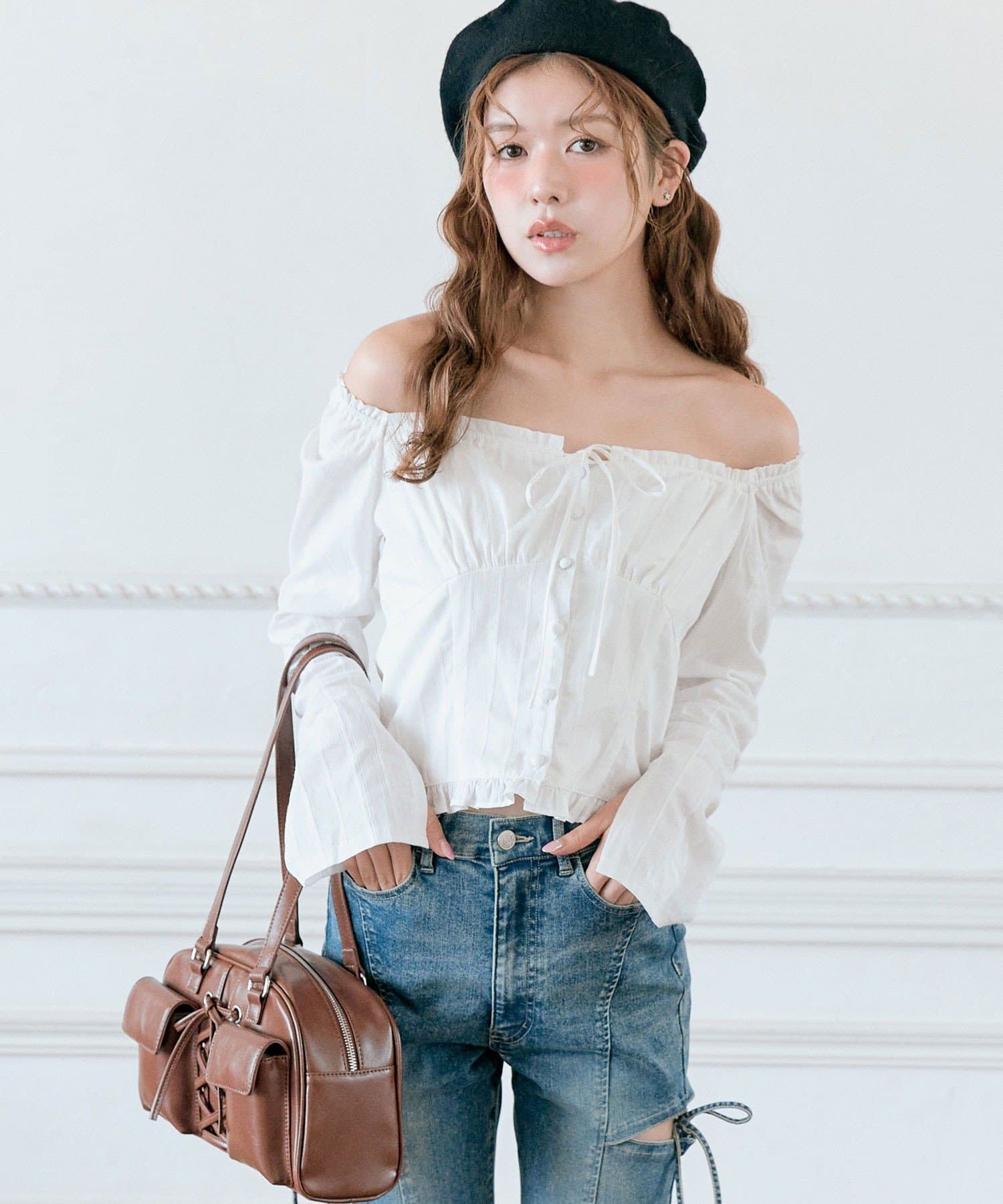 ・デコルテをきれいに見せるスクエアネックは、オフショルにもできる2WAY仕様で着回し力抜群。