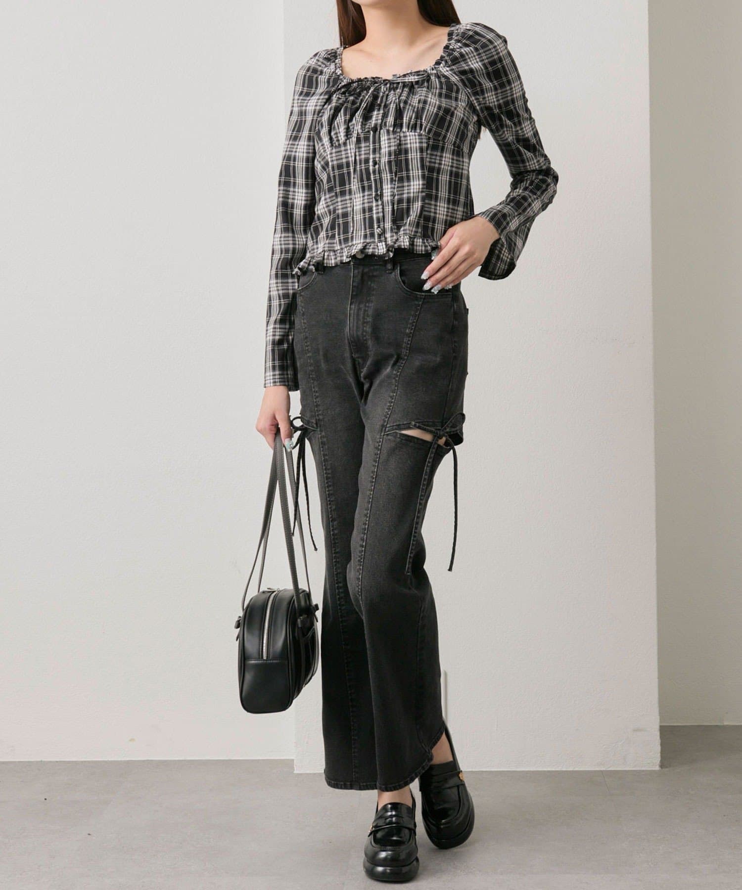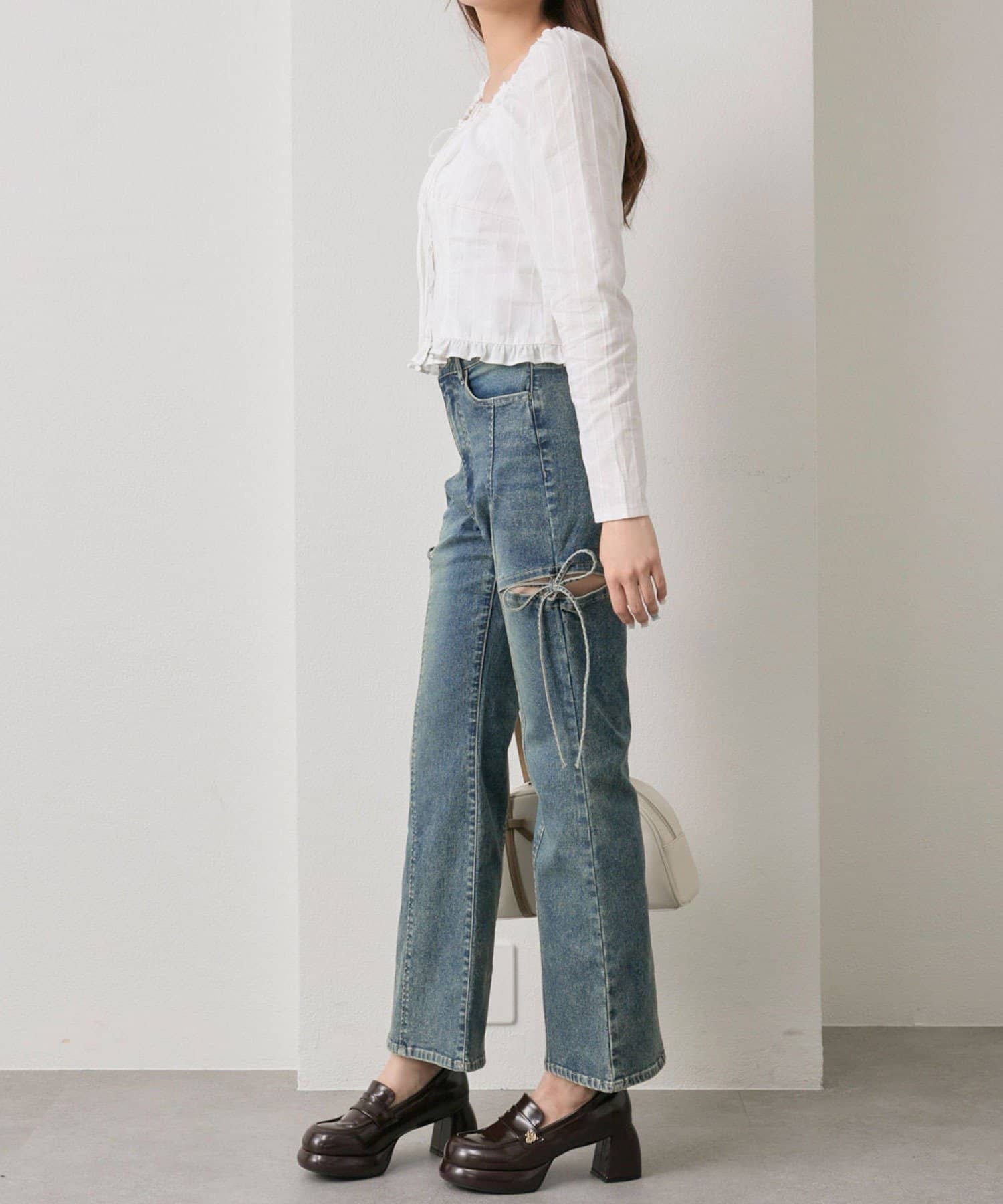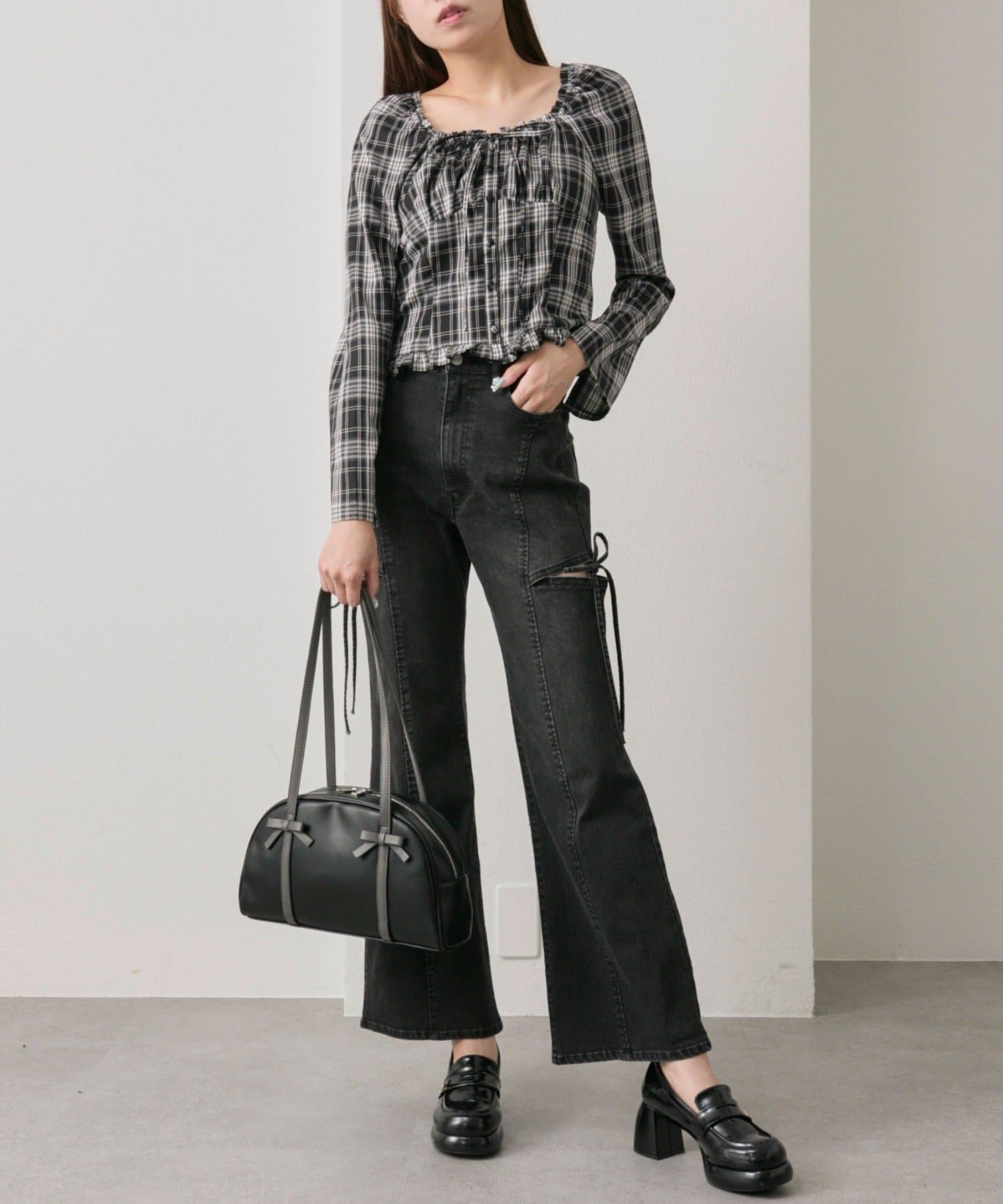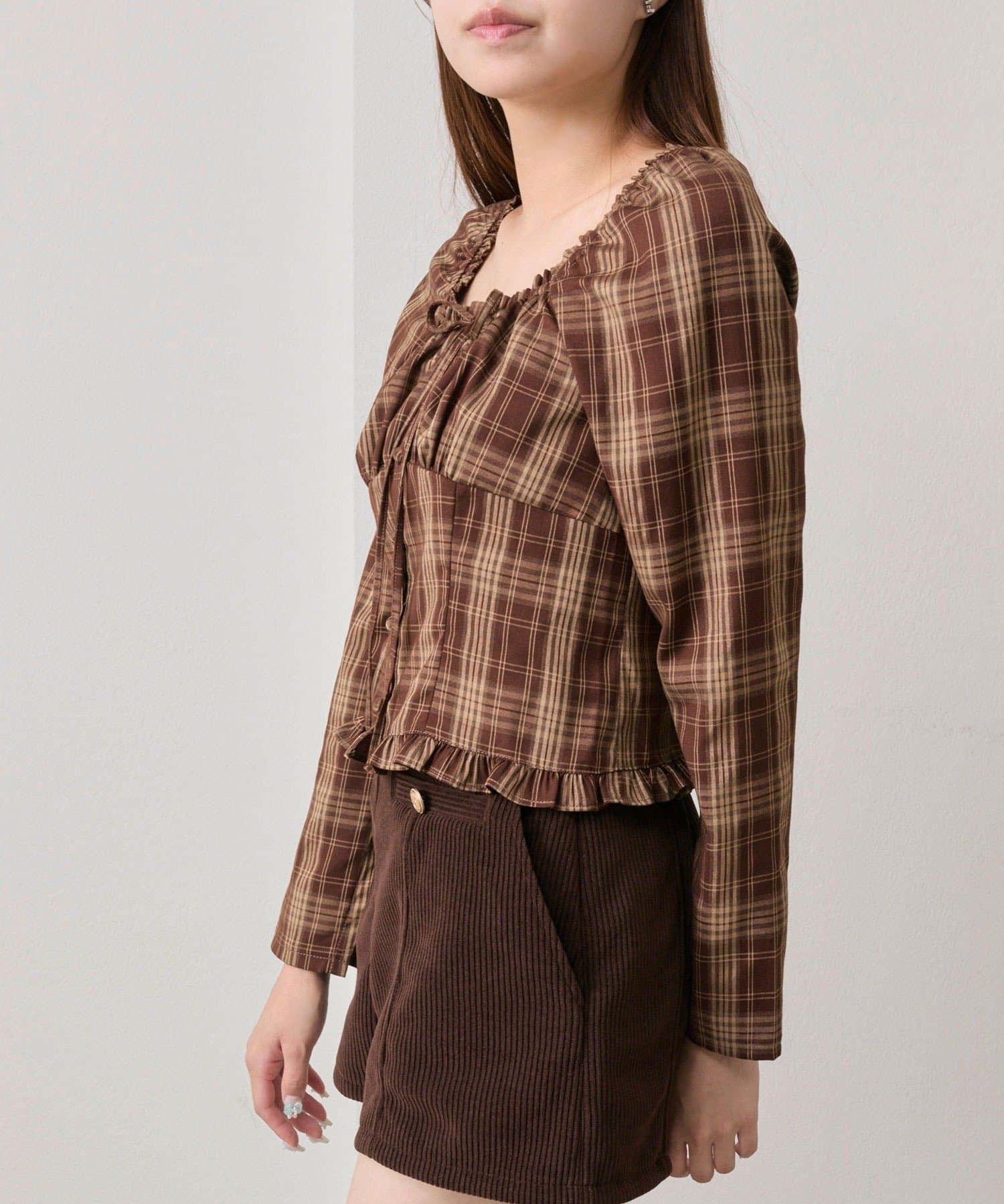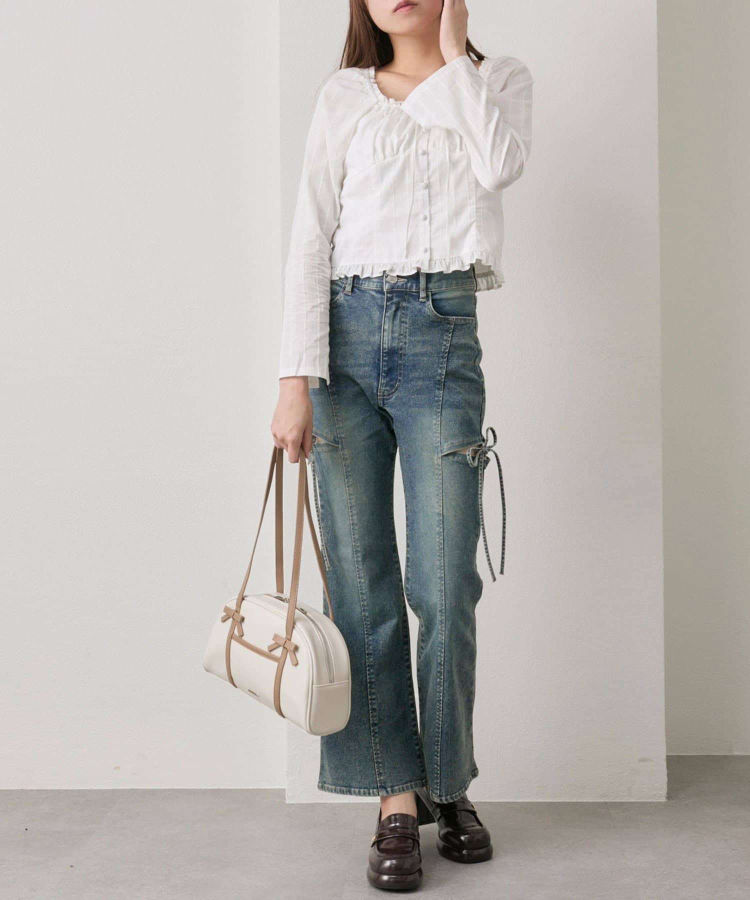 ・フロントのリボンと裾フリルが、さりげない甘さをプラスして女の子らしさをぐっと高めます。