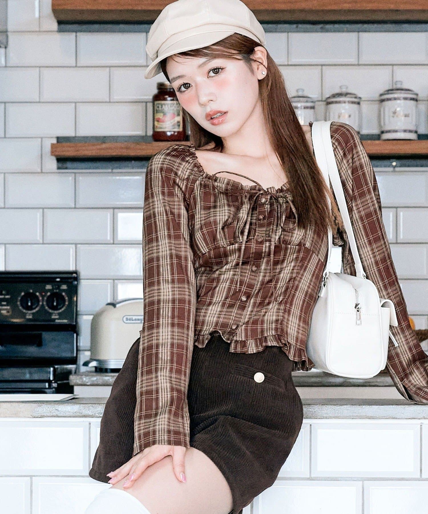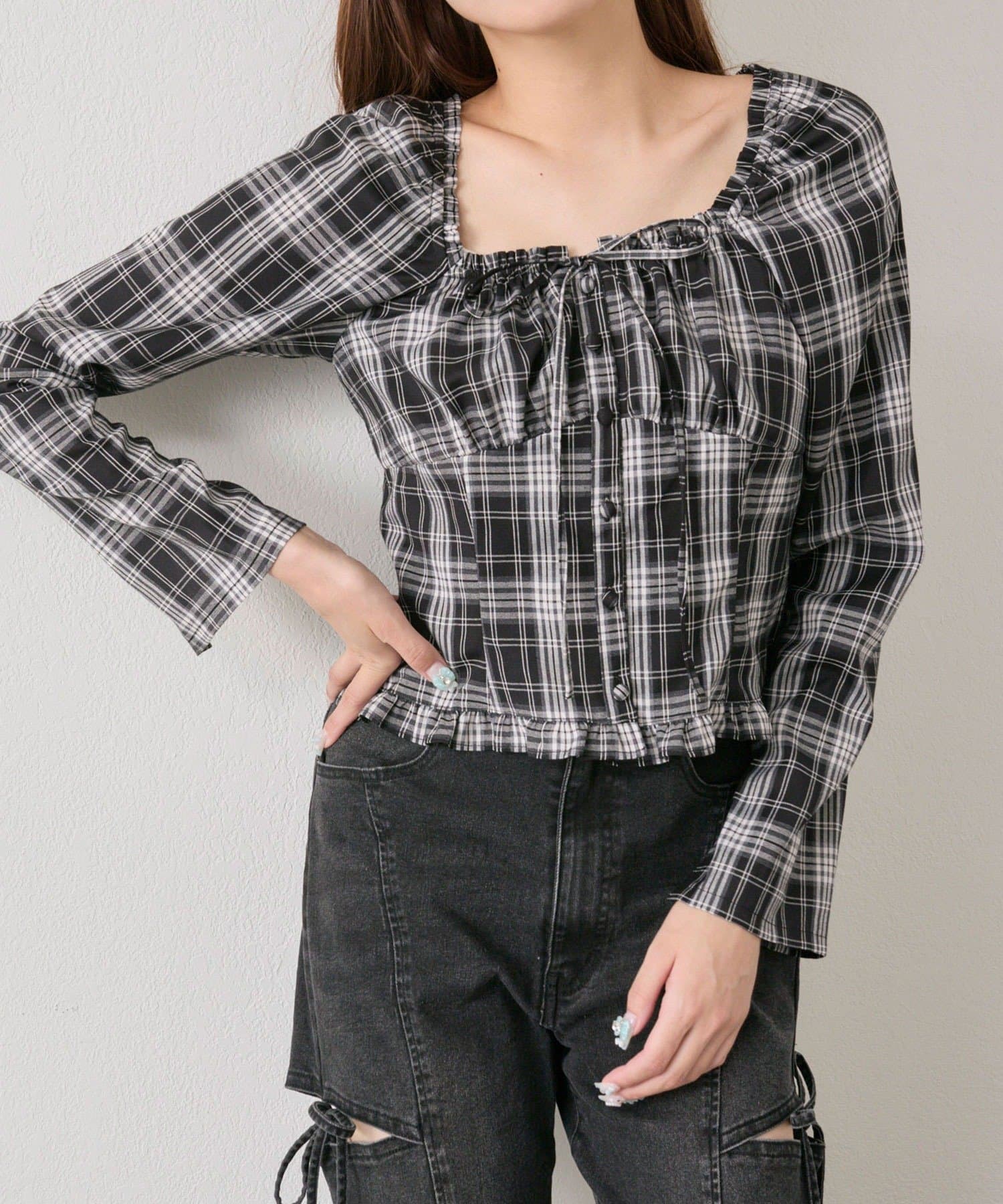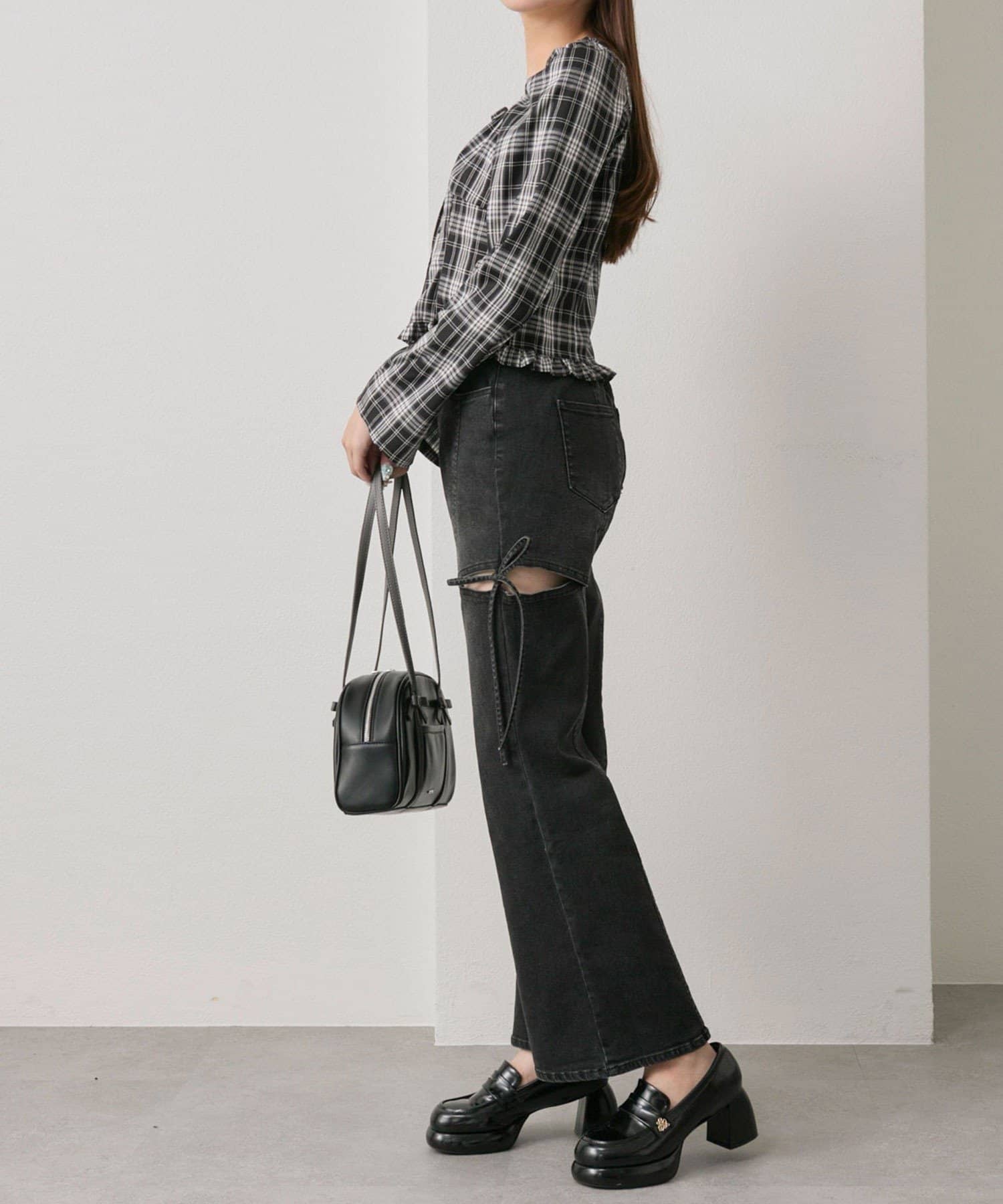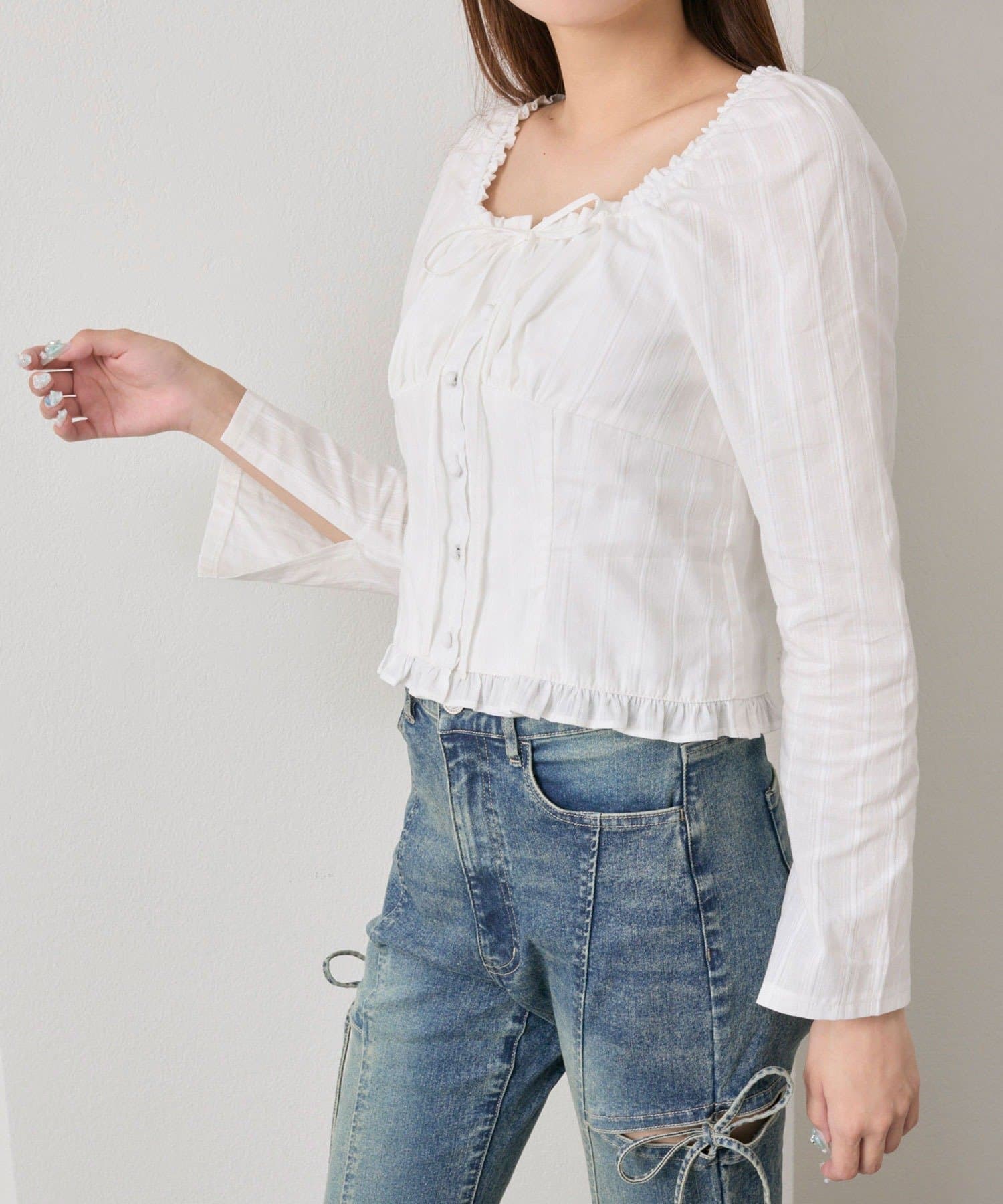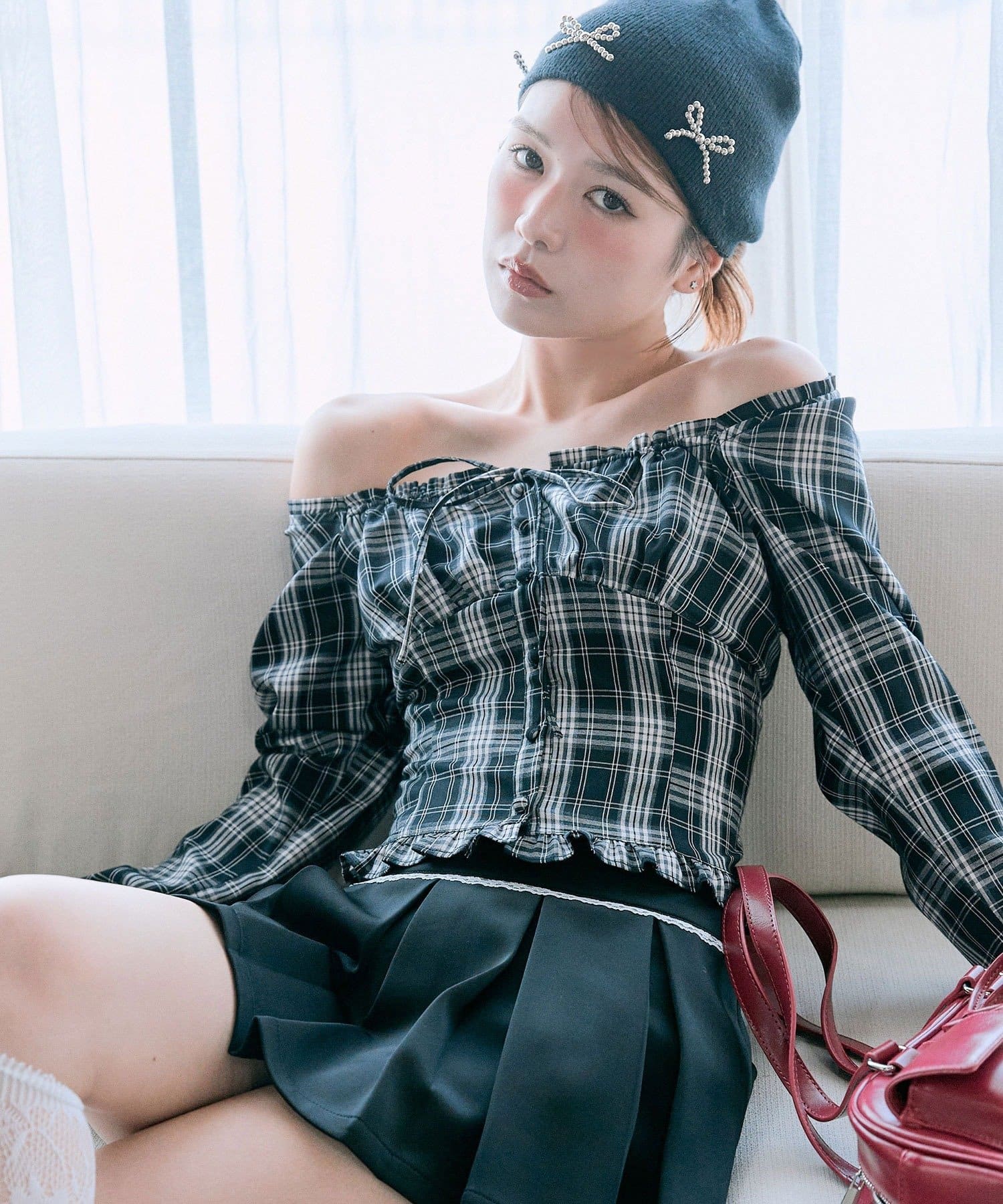 ・フロントのリボンと裾フリルが、さりげない甘さをプラスして女の子らしさをぐっと高めます。