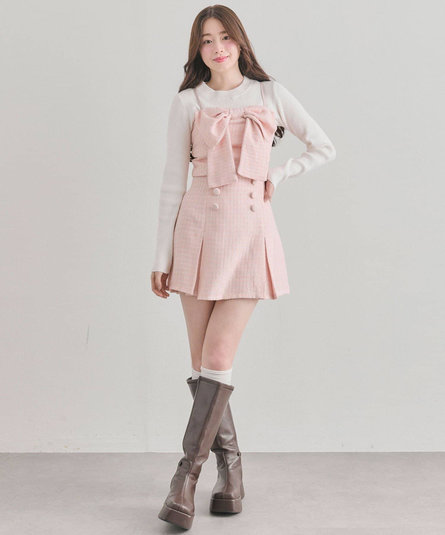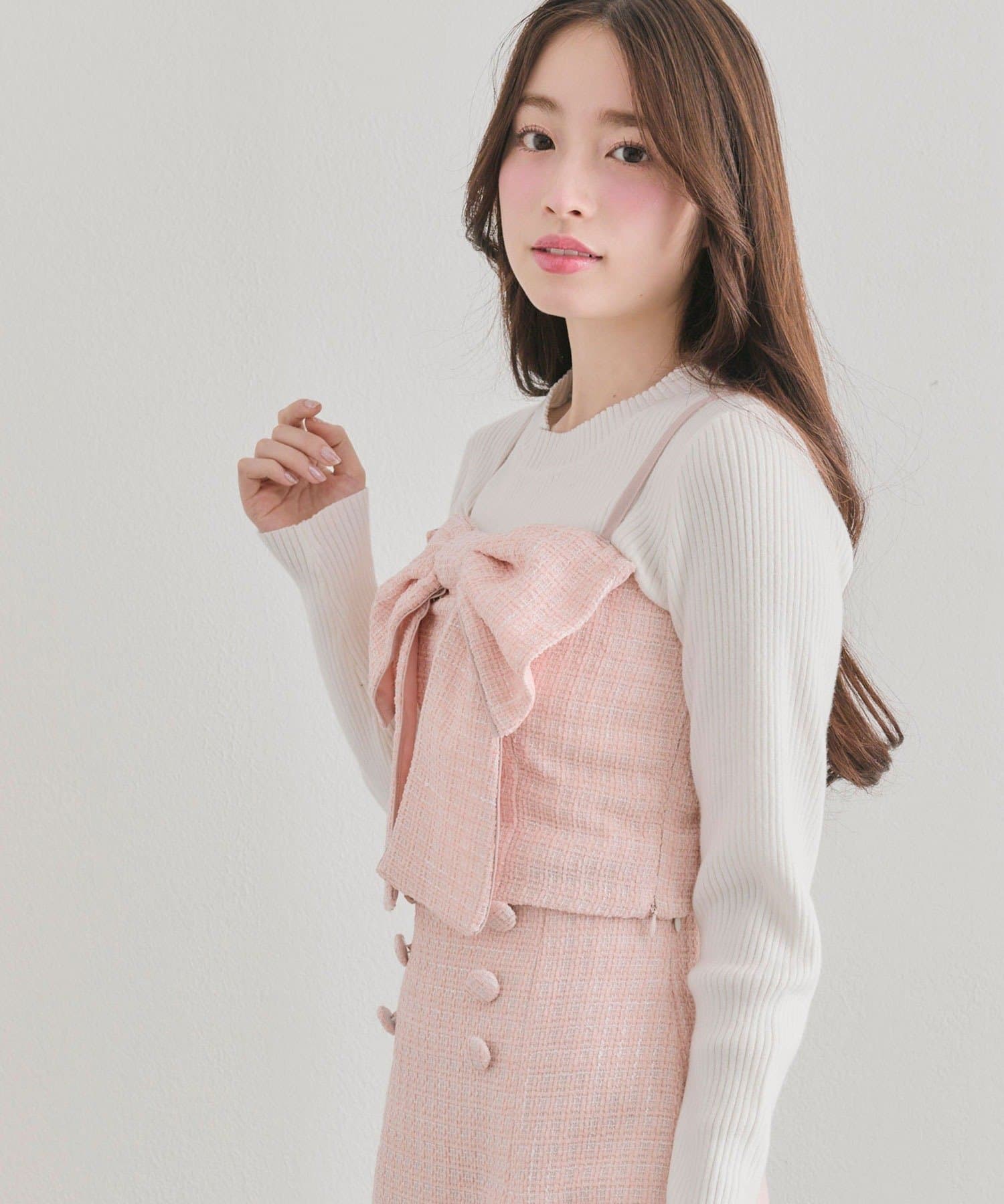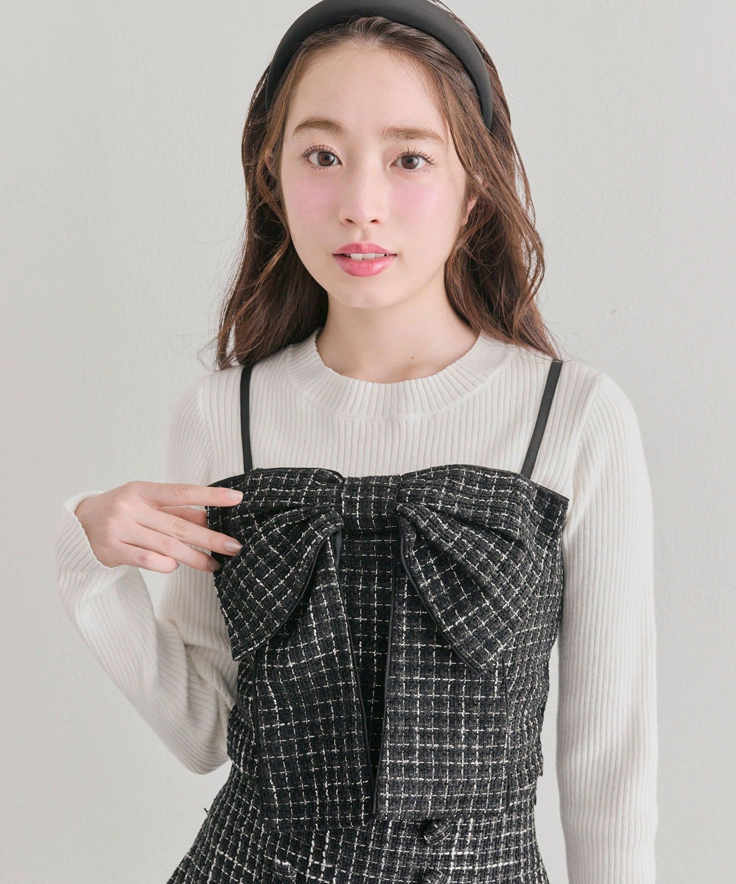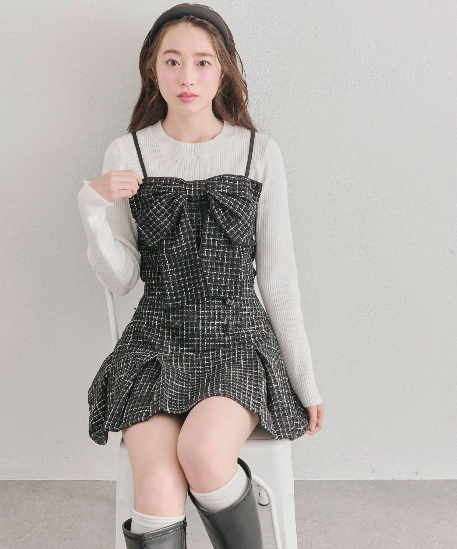 ・秋冬にぴったりなツイード素材のビスチェと、リブニットがセットになった着映えアイテム。