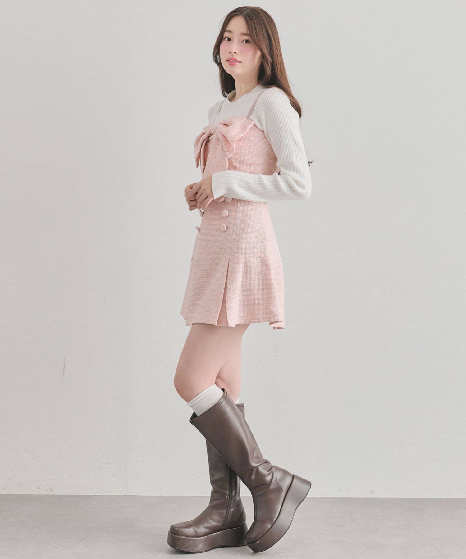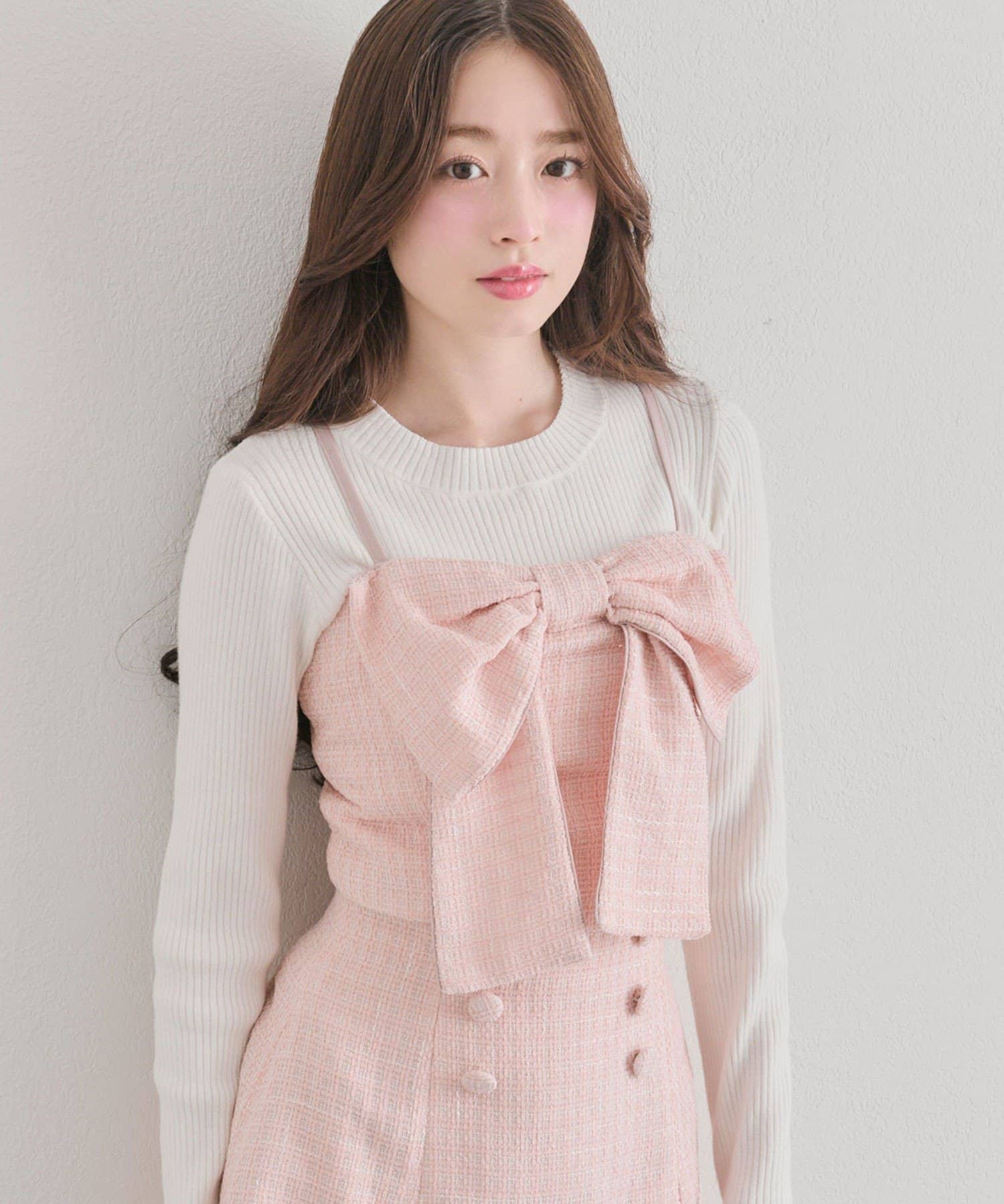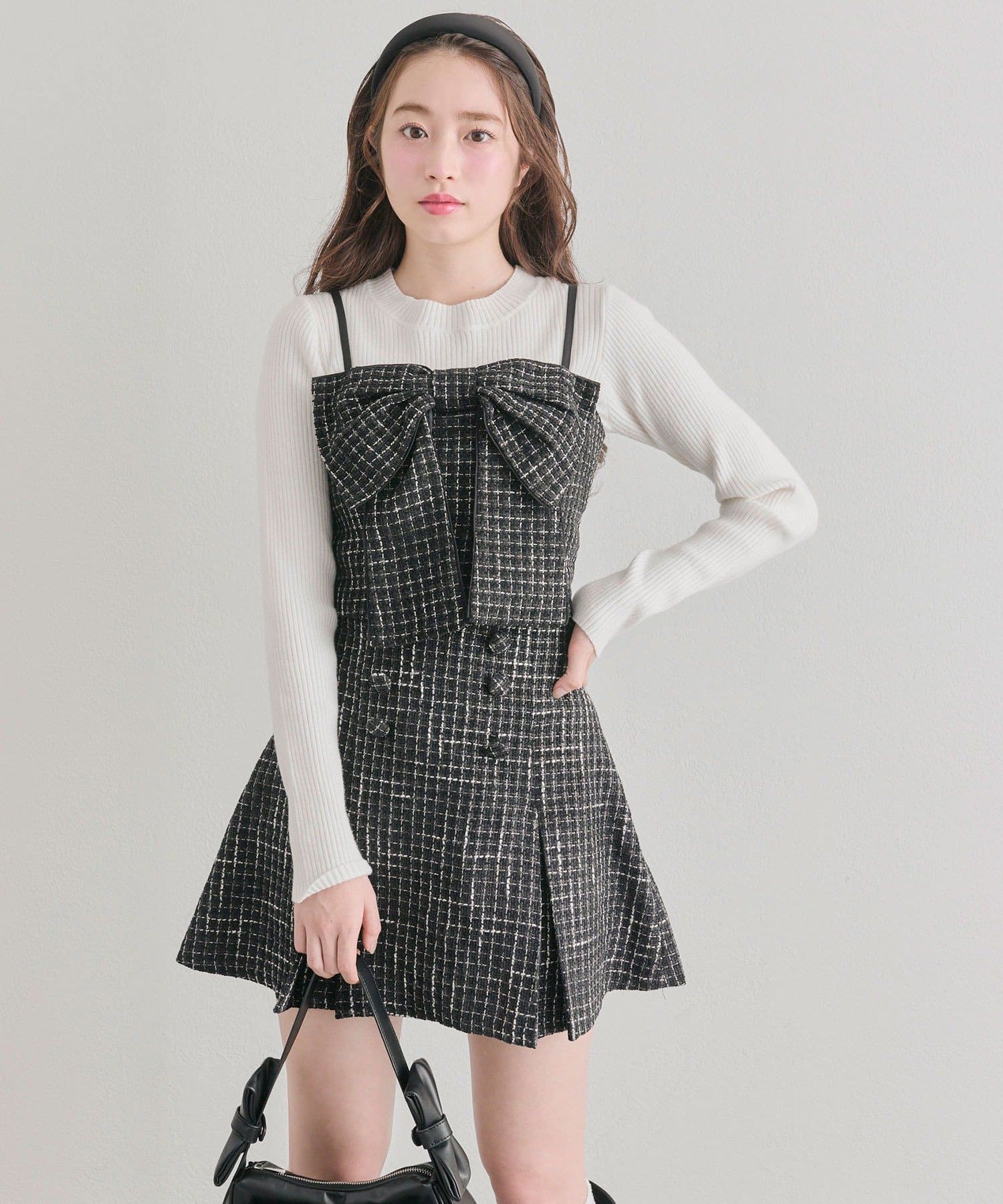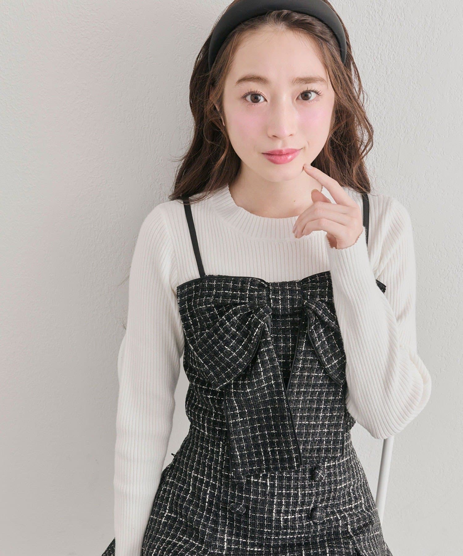 ・秋冬にぴったりなツイード素材のビスチェと、リブニットがセットになった着映えアイテム。