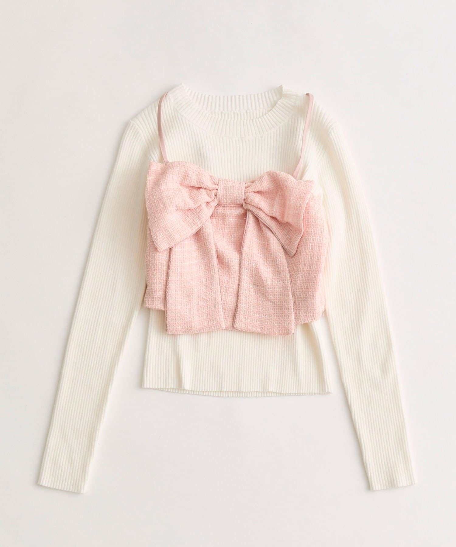 TOP > OLIVE des OLIVE > レディース > トップス > アンサンブル/セットアイテム > リボンビスチェとリブニットセット