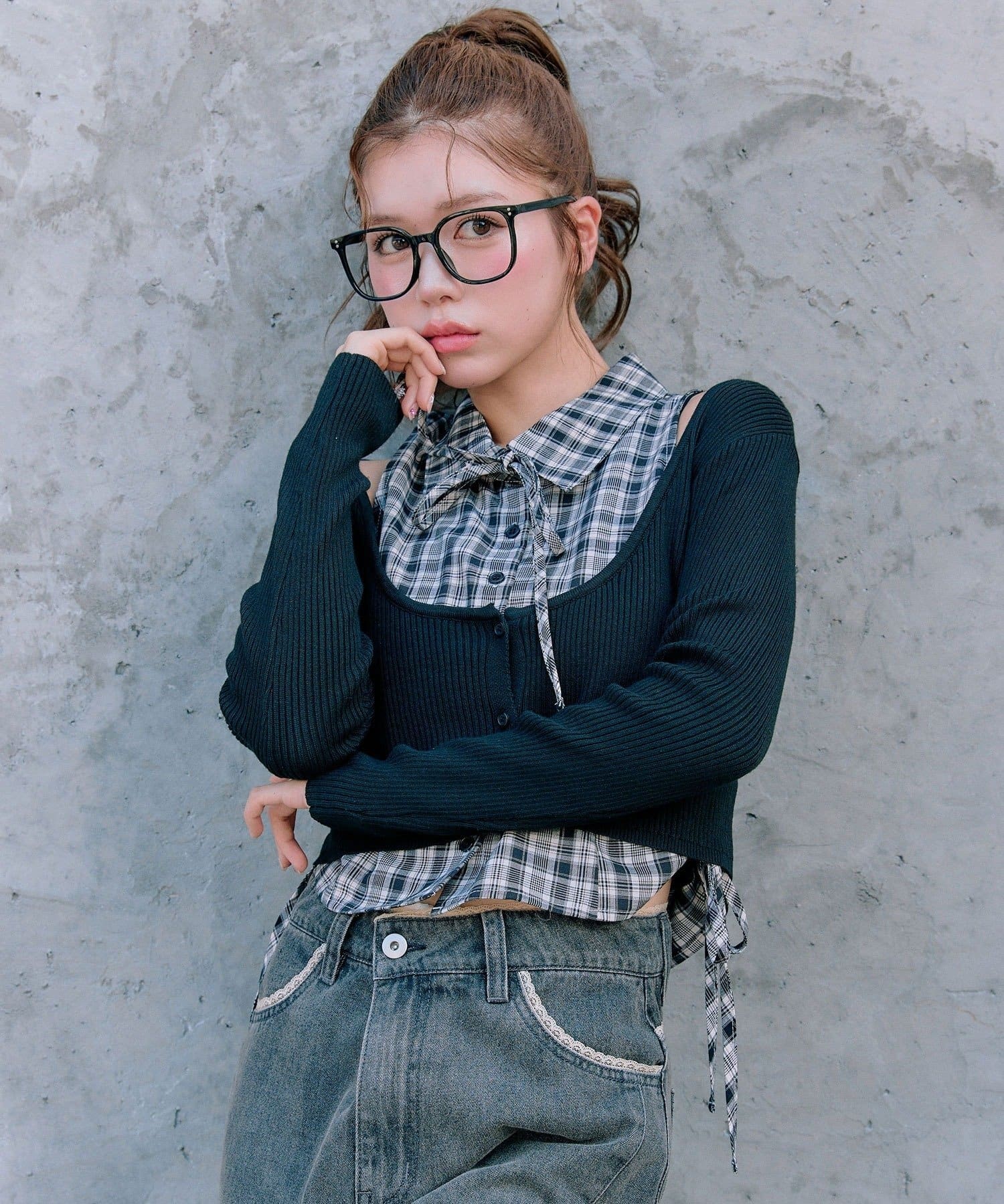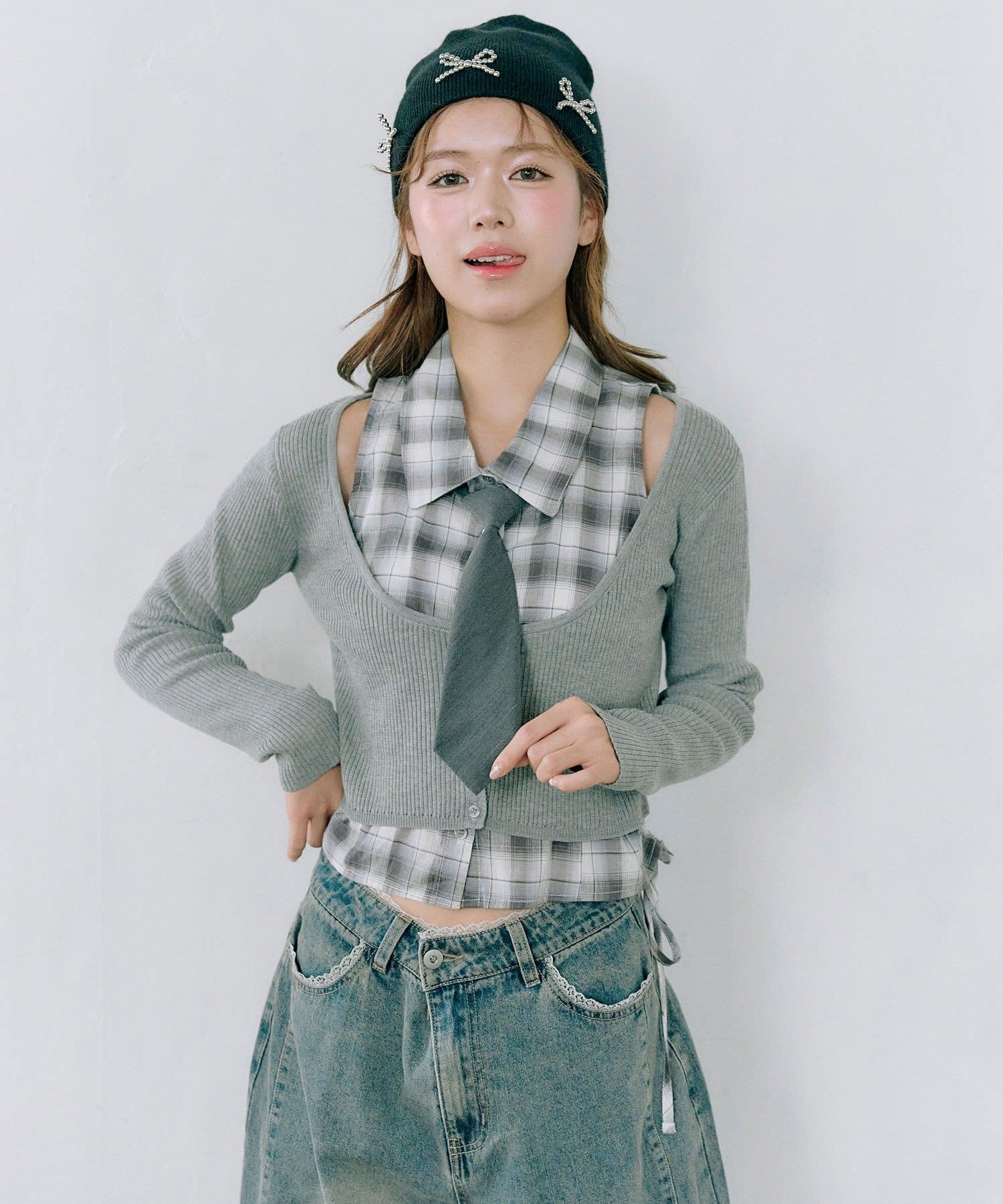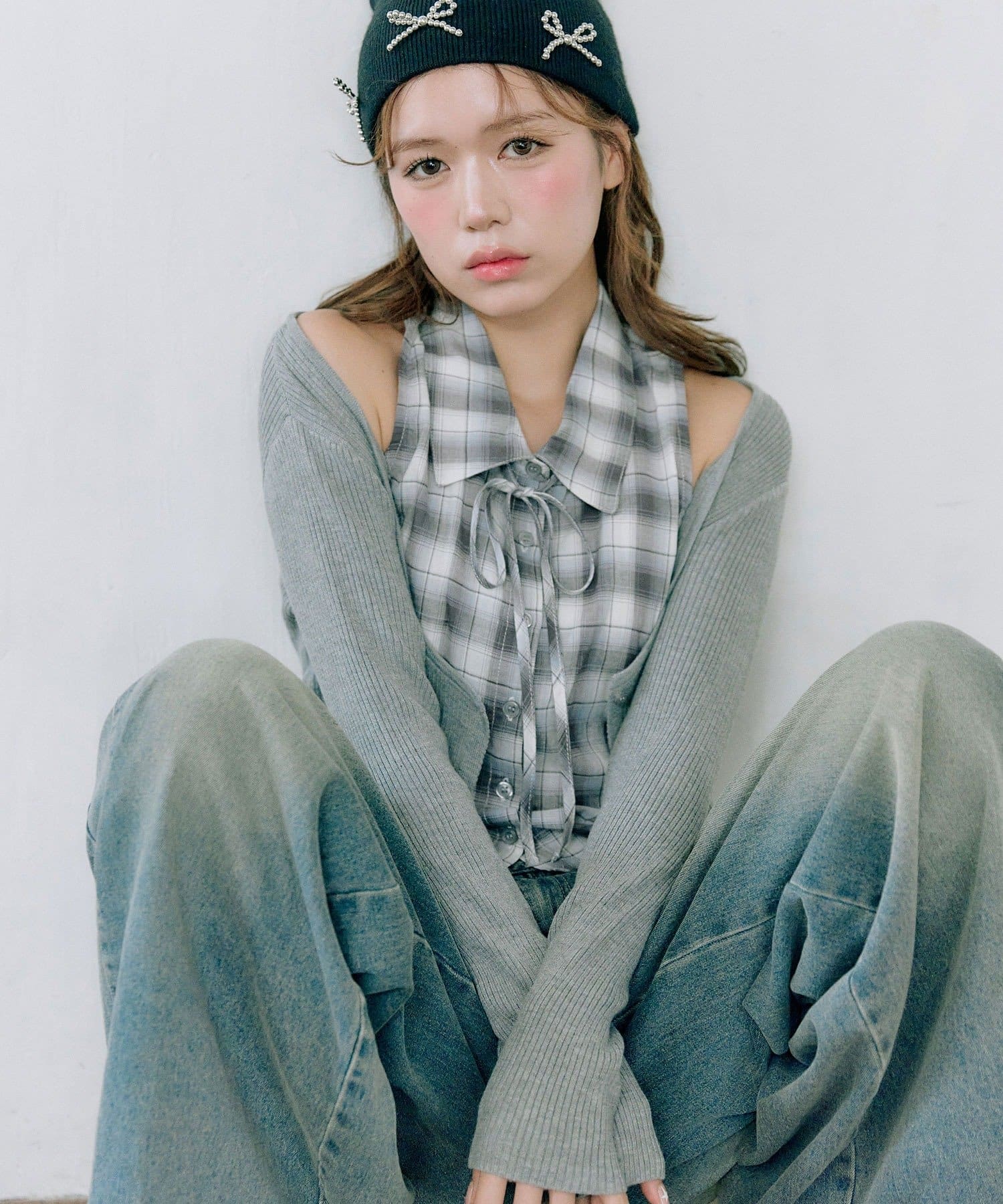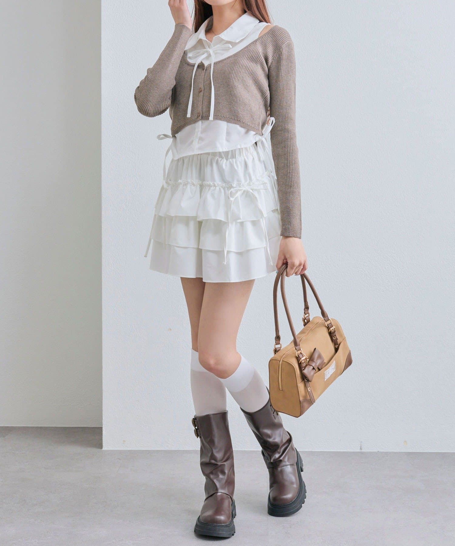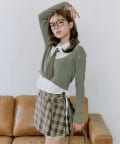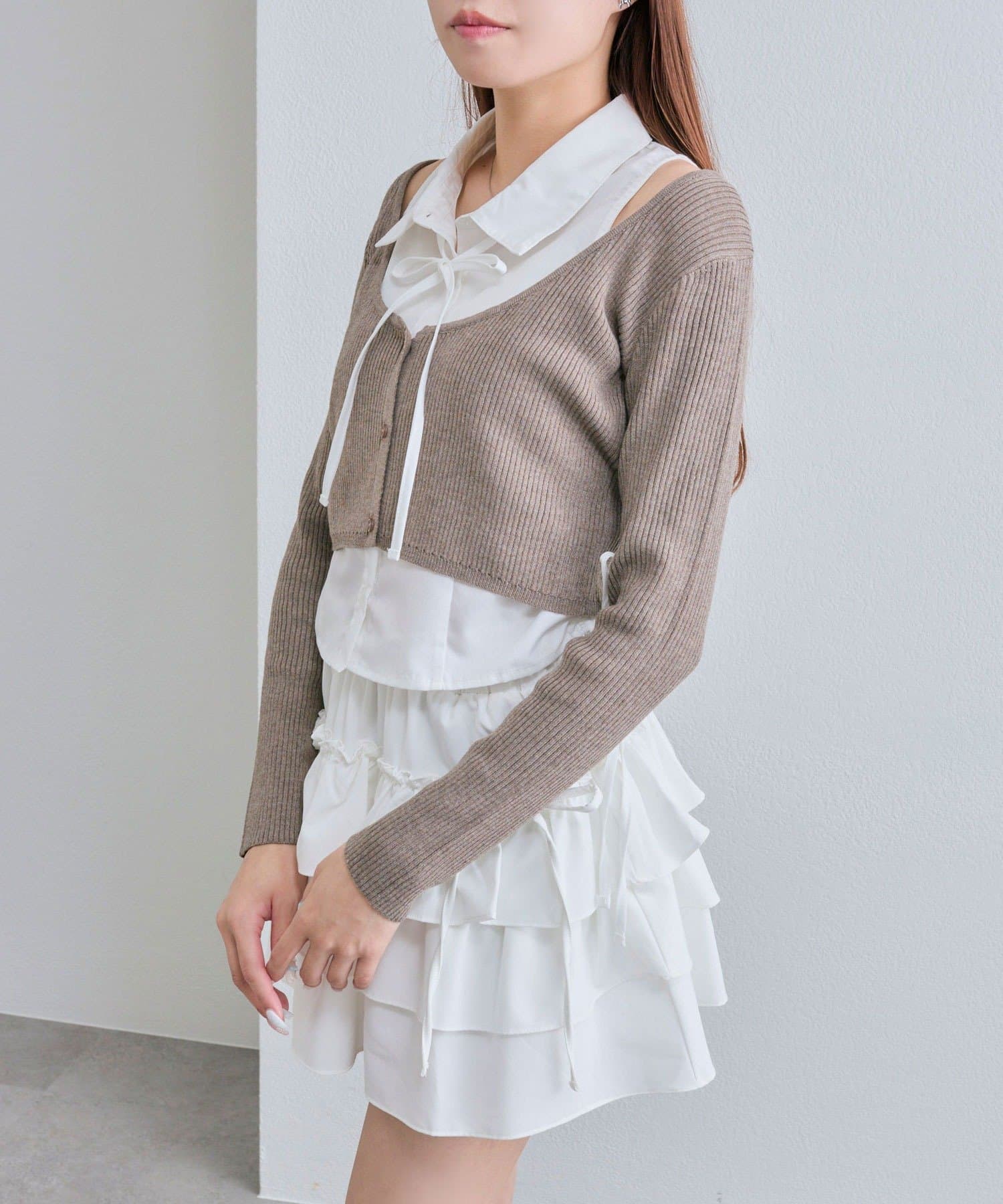 ・ニットカーディガンは、短めの丈でスタイルアップ効果も期待できます。