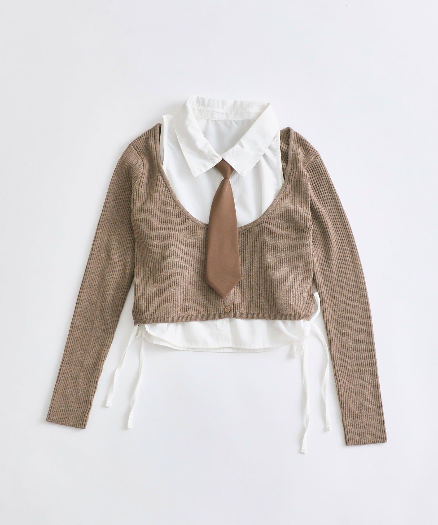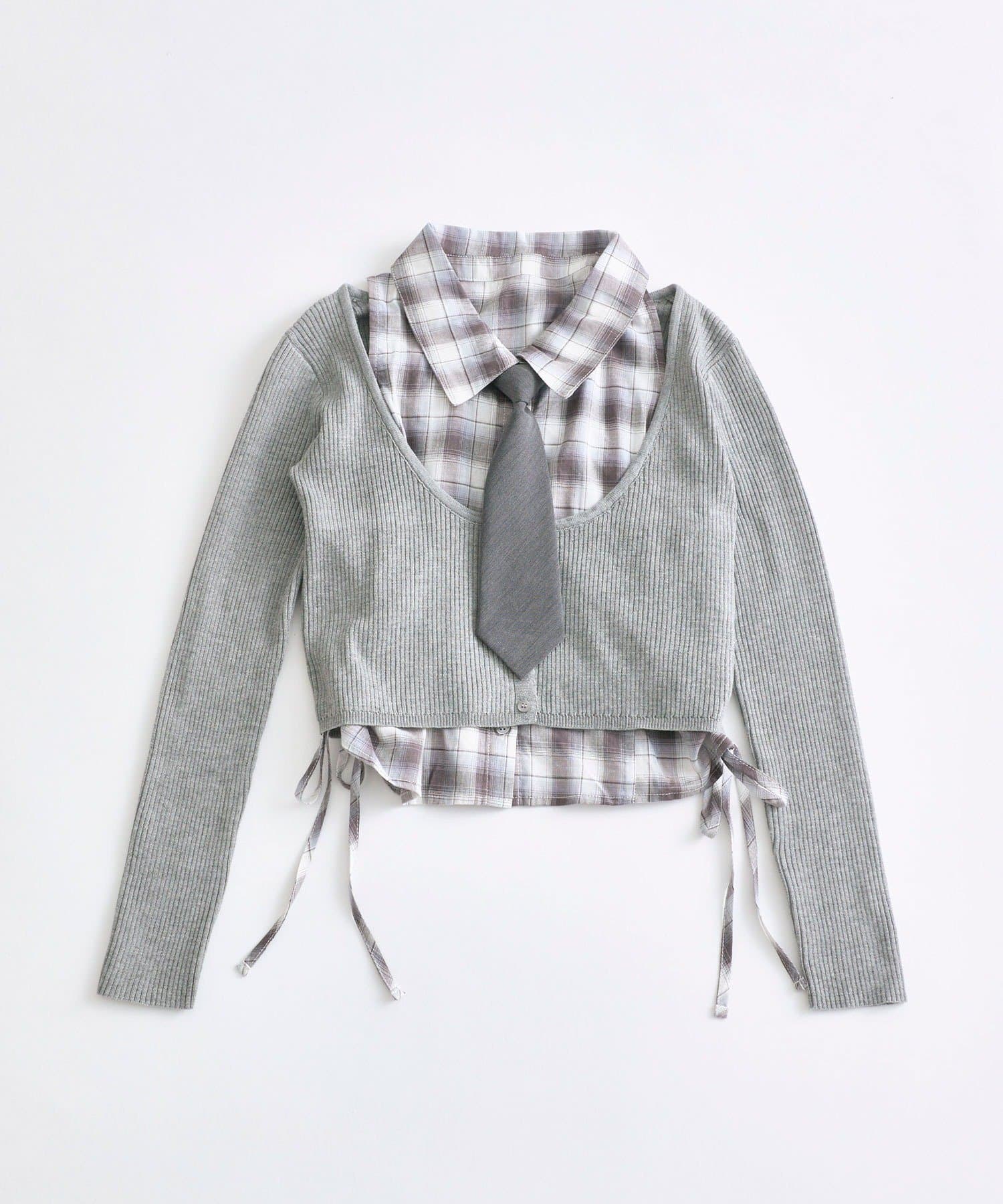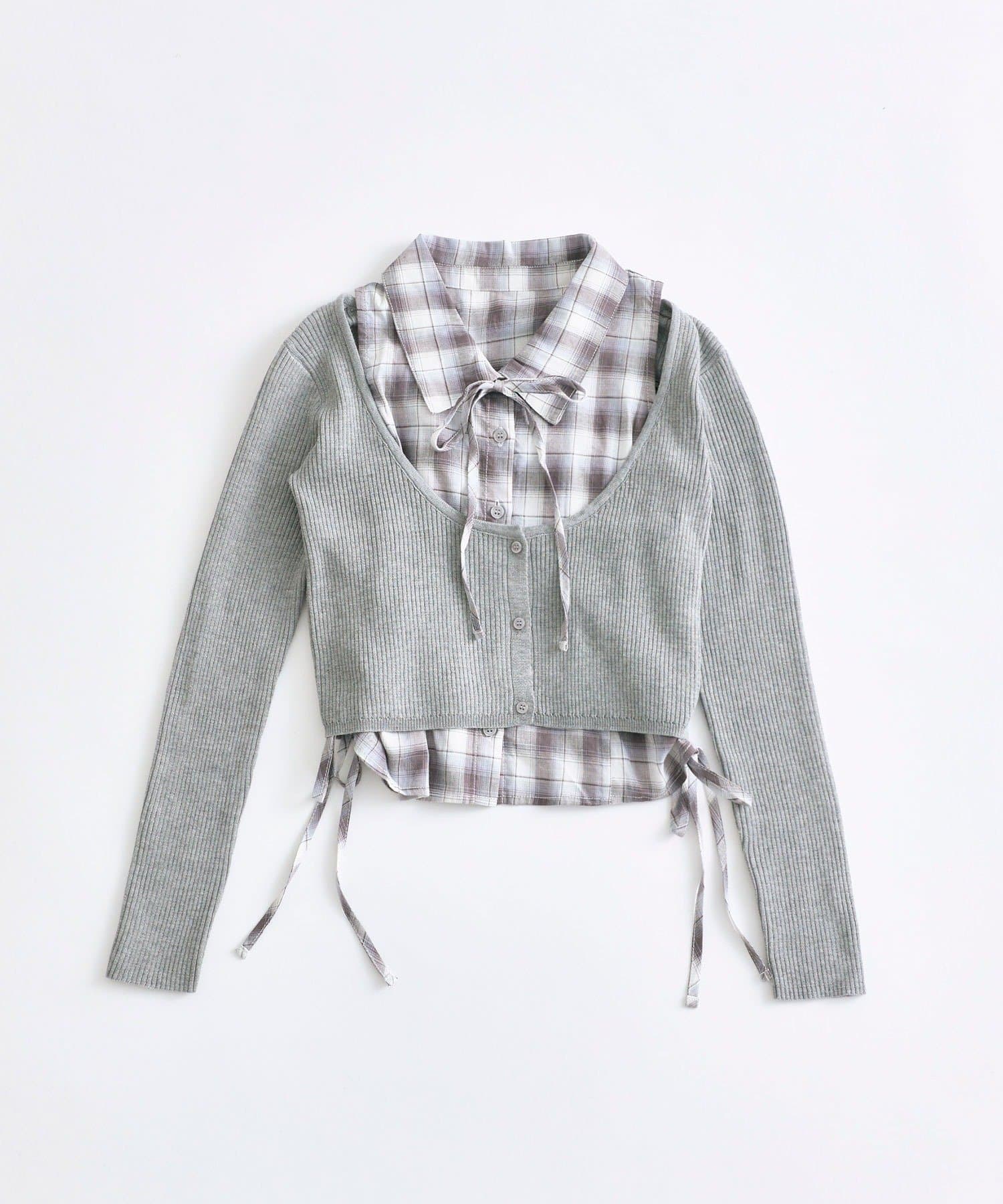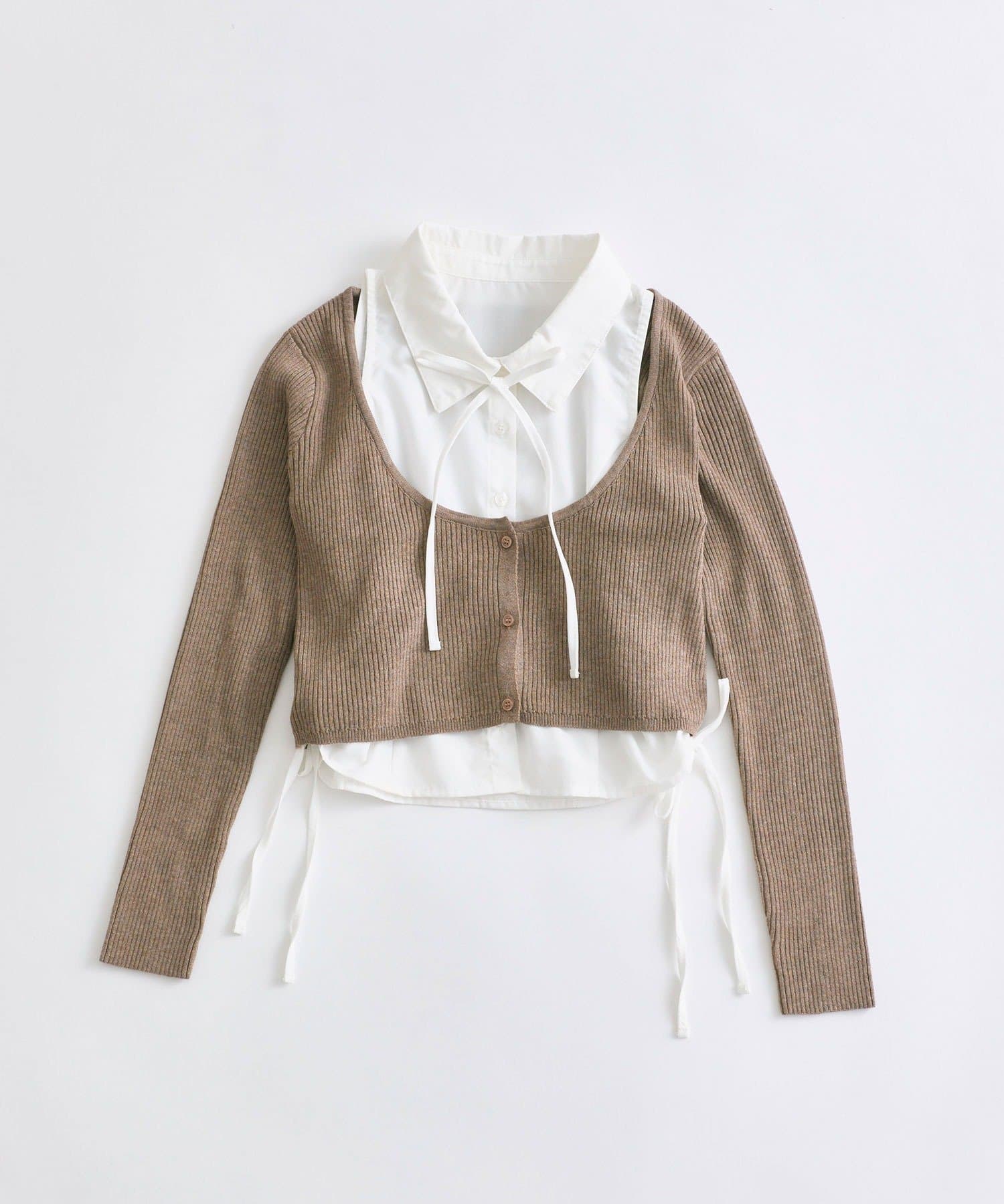 ・レイヤードスタイルが即完成するノースリーブシャツとニットカーディガンのセット。