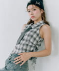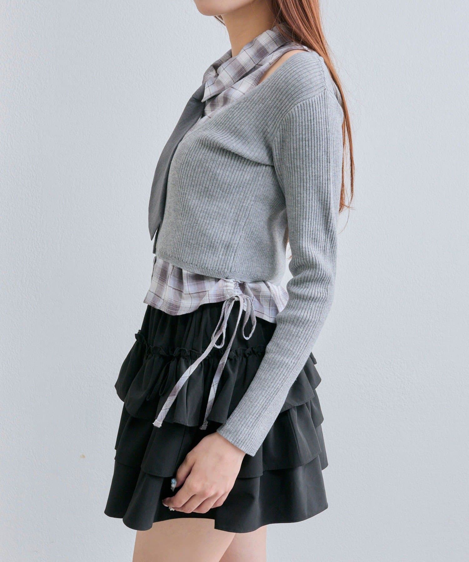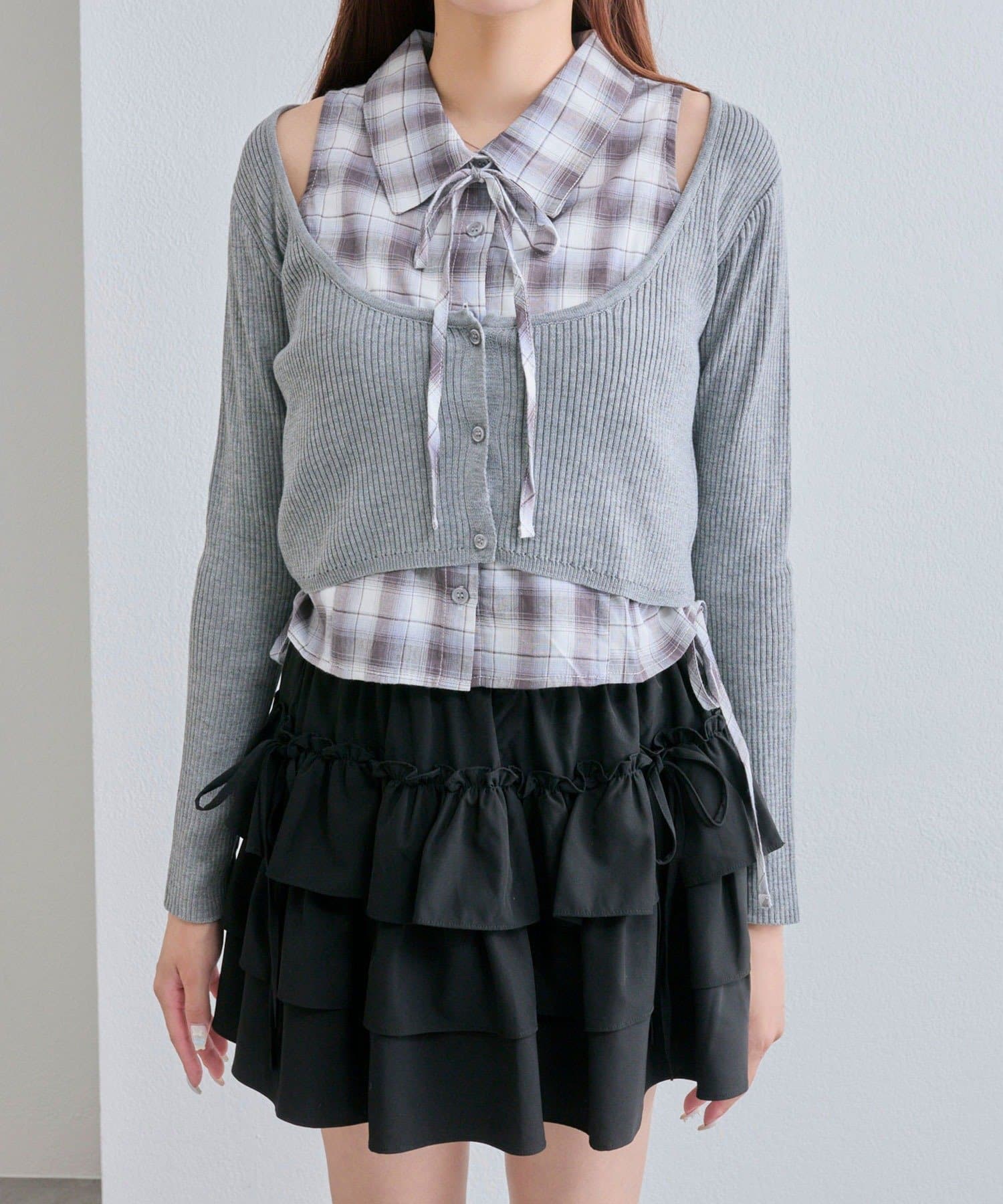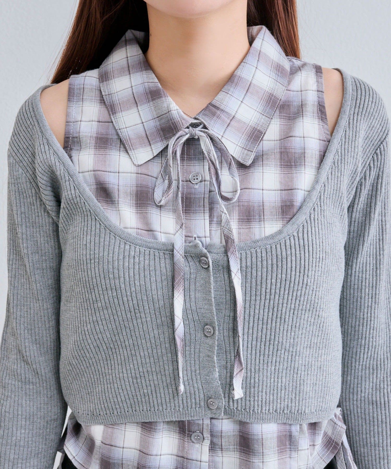 ・レイヤードスタイルが即完成するノースリーブシャツとニットカーディガンのセット。