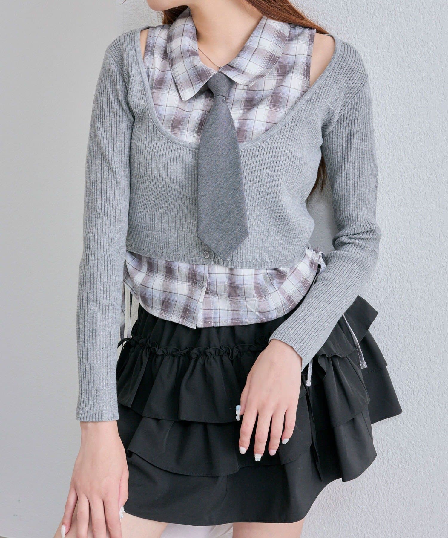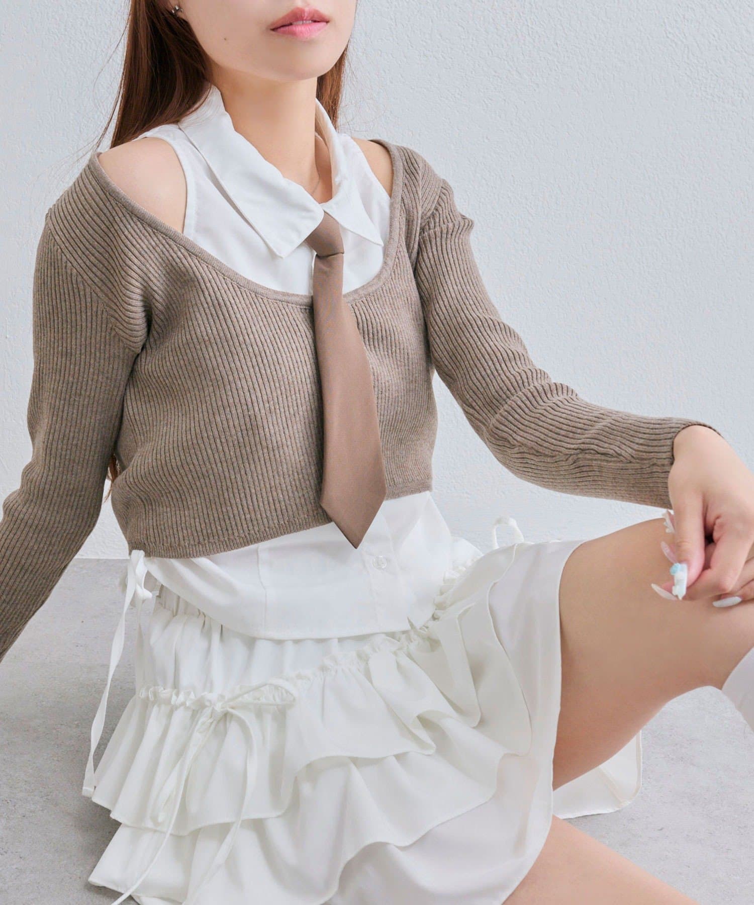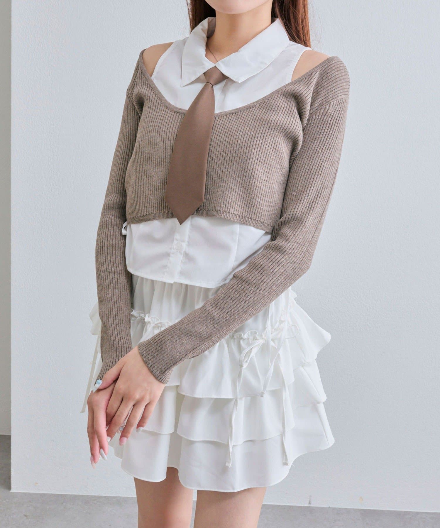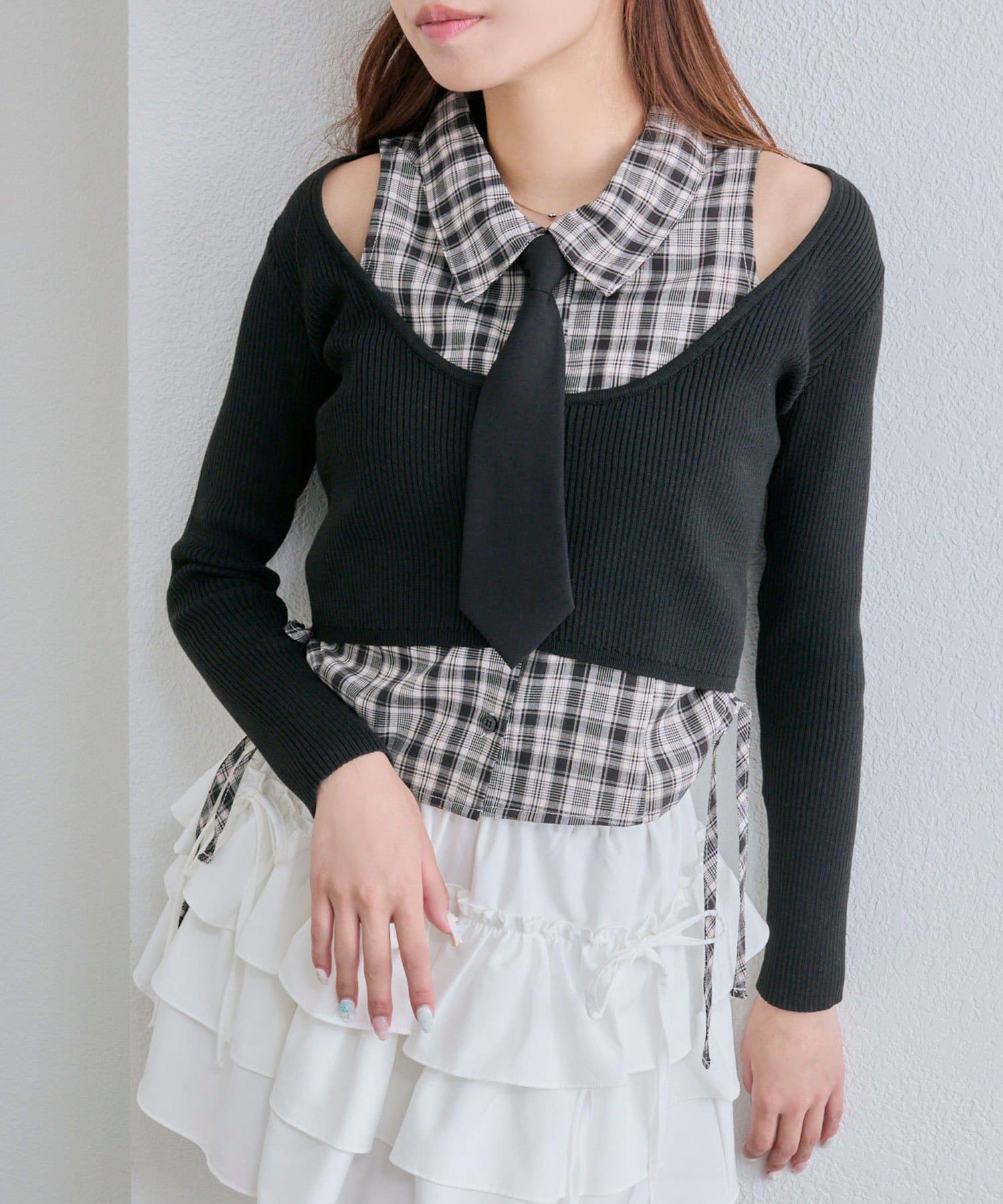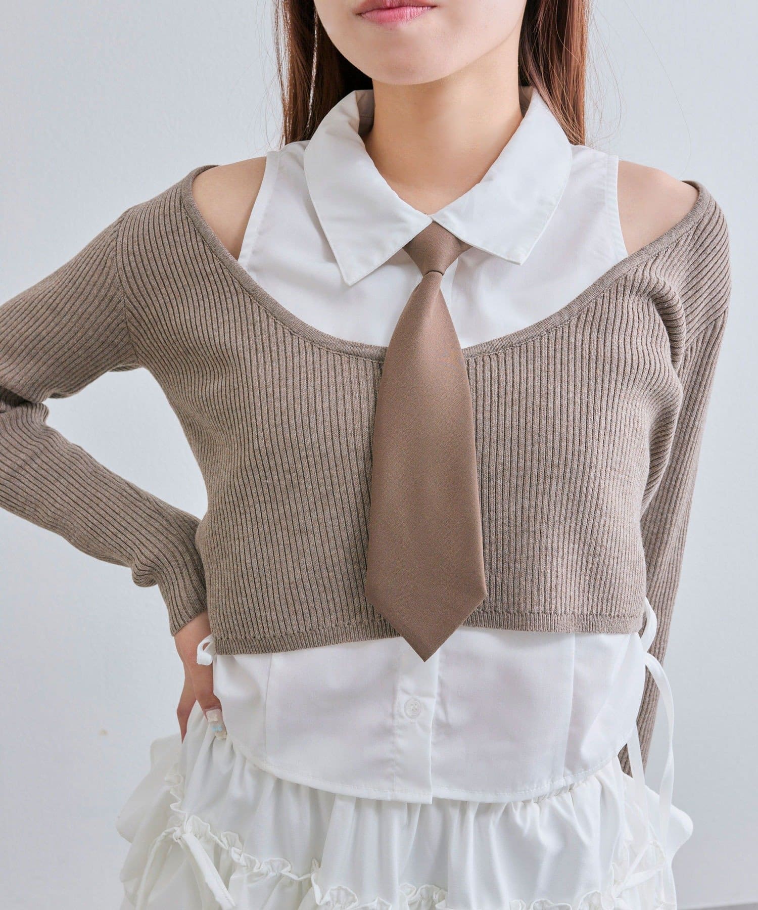 ・ネクタイ、細リボン、何もつけずにシンプルに!その日の気分で楽しめるマルチWAY仕様です。