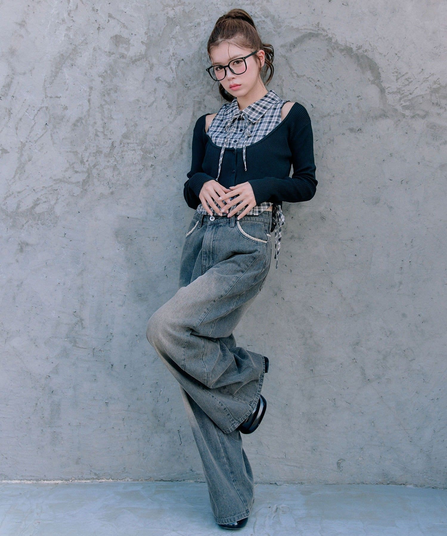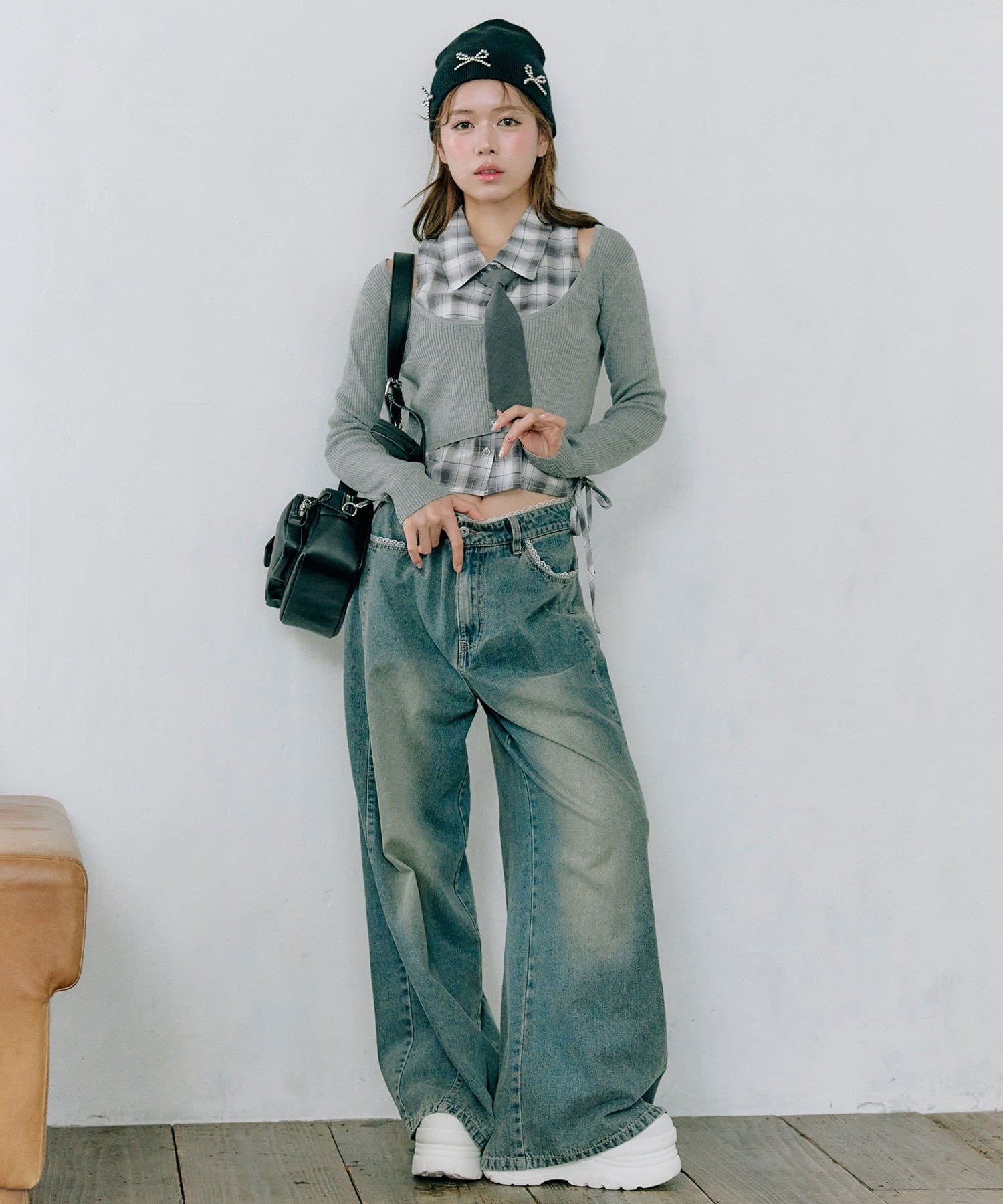 ・デニムパンツでカジュアルにまとめるのもかわいいです。