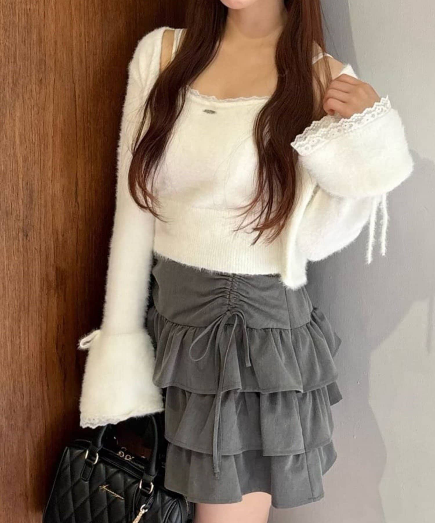 ・胸レースニットキャミ(商品番号:1052050050)とセットできるのがおすすめ。