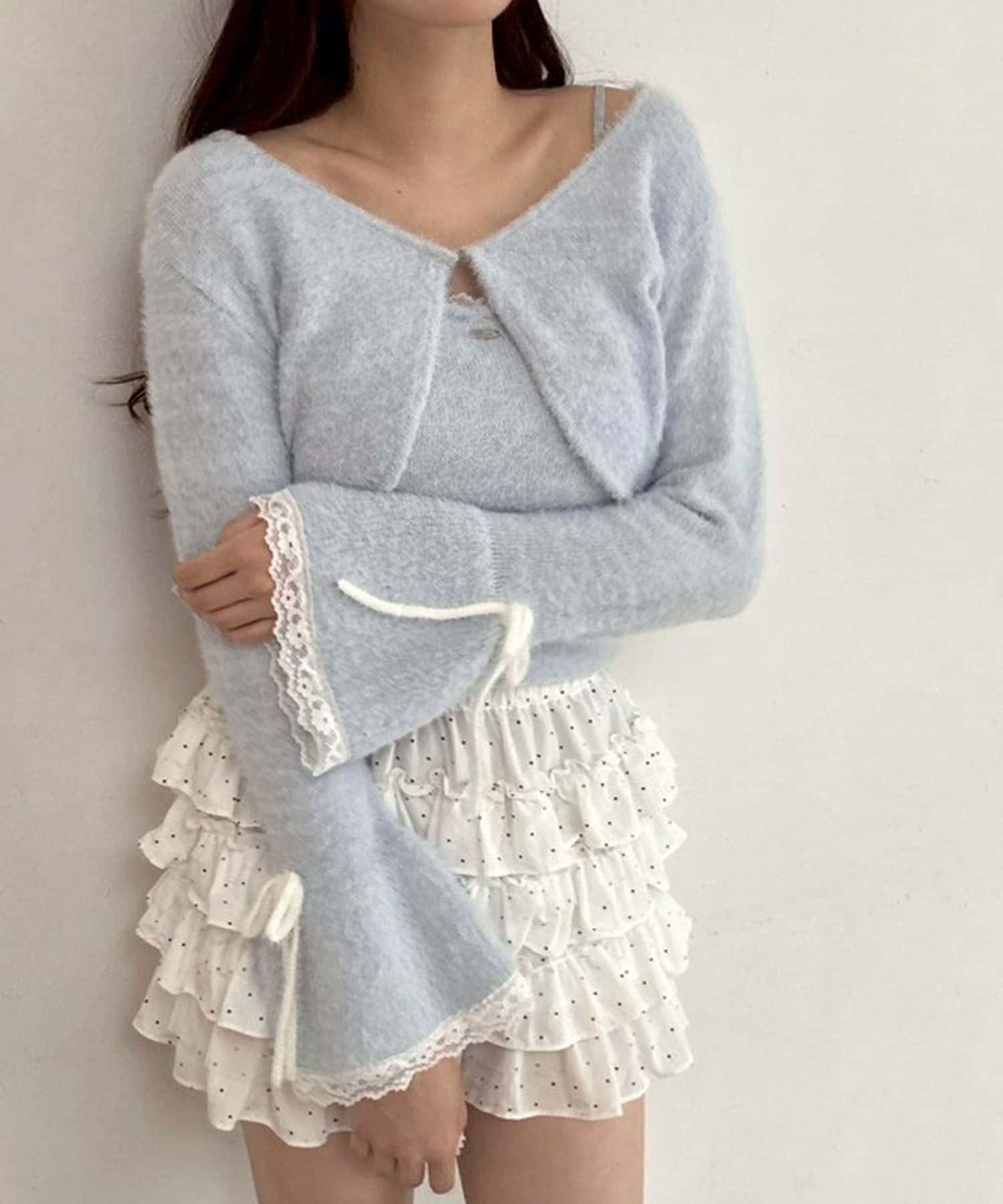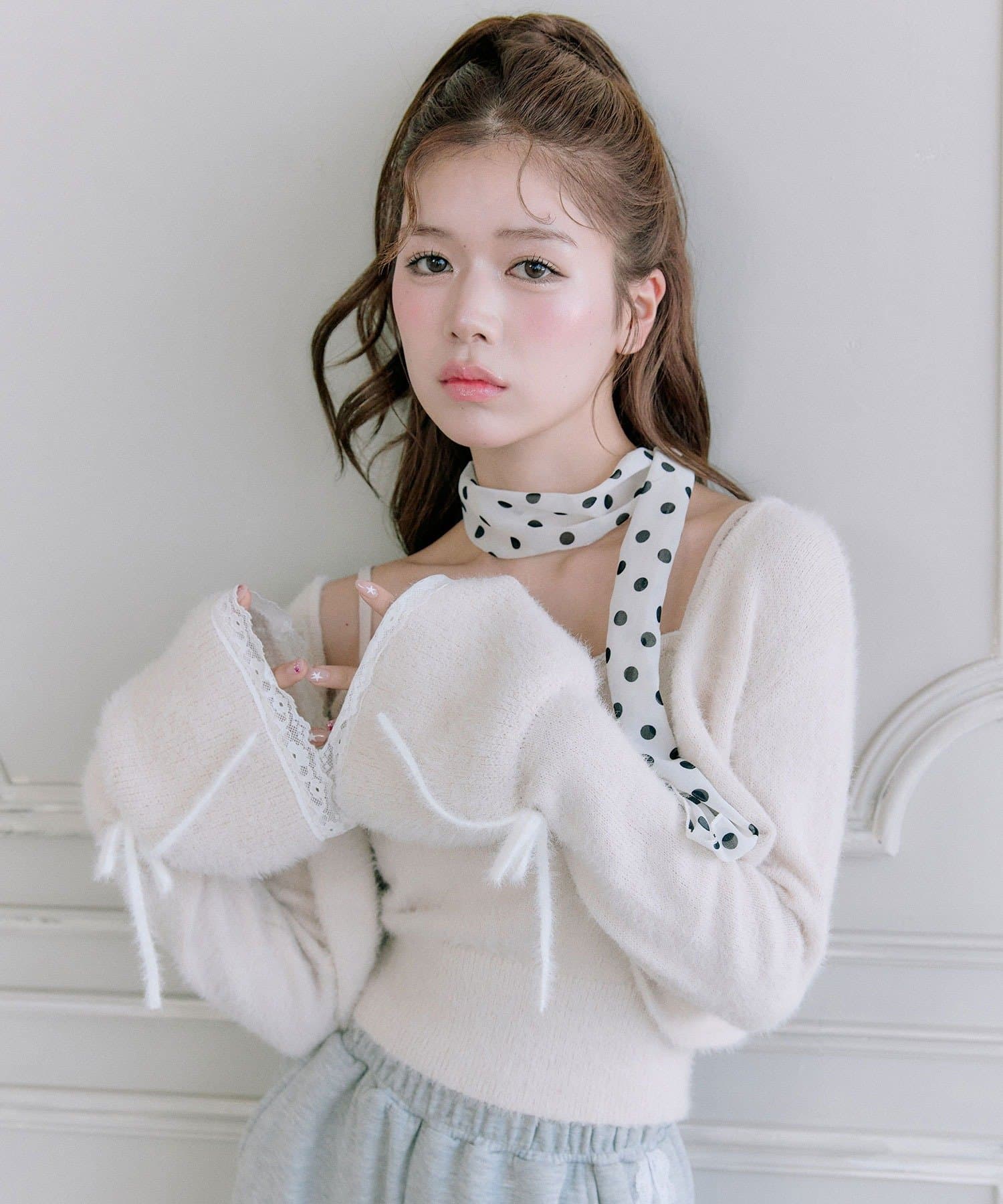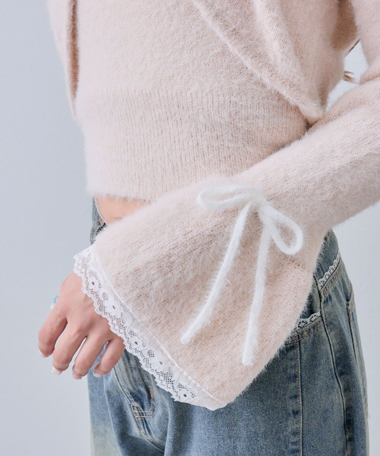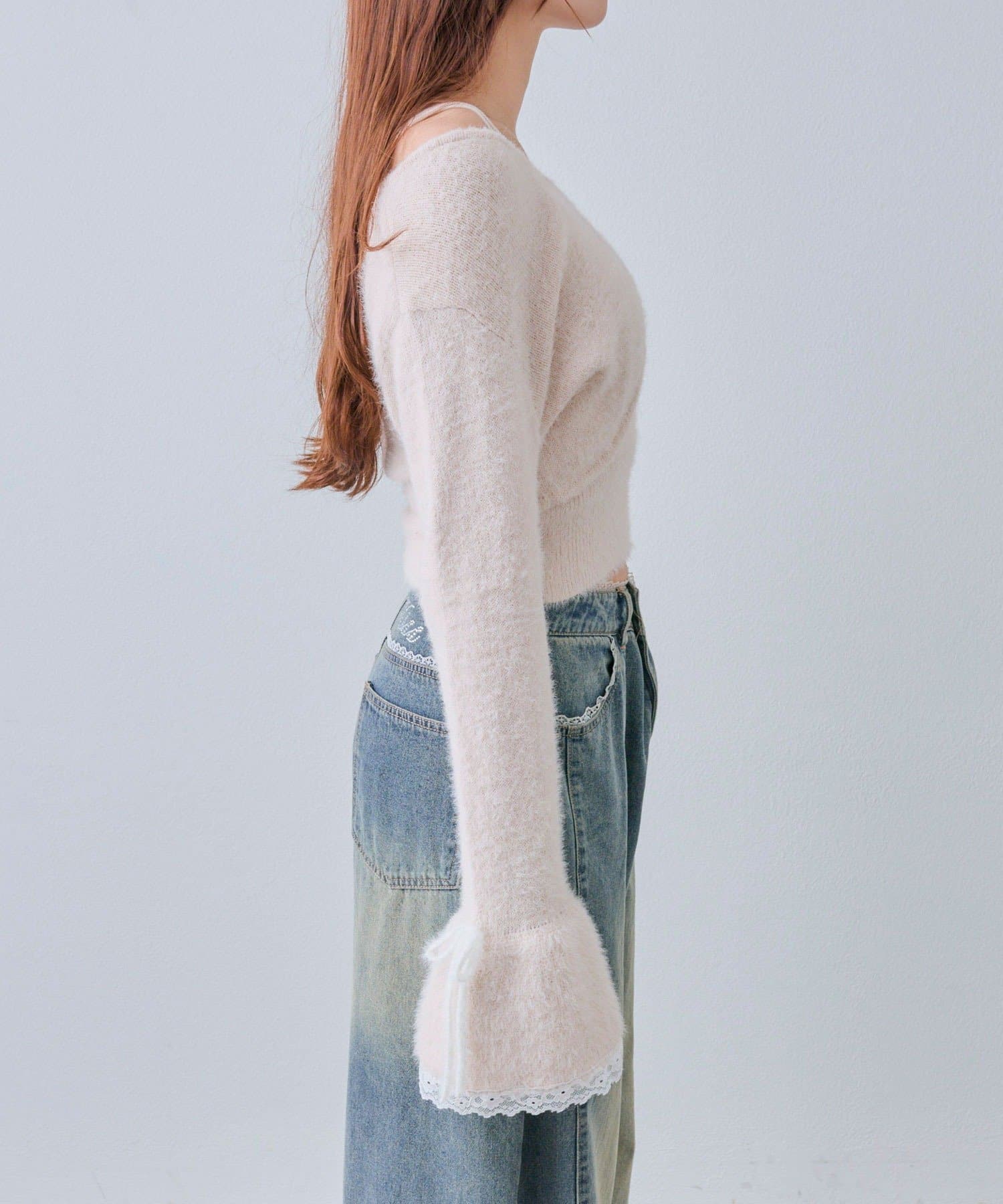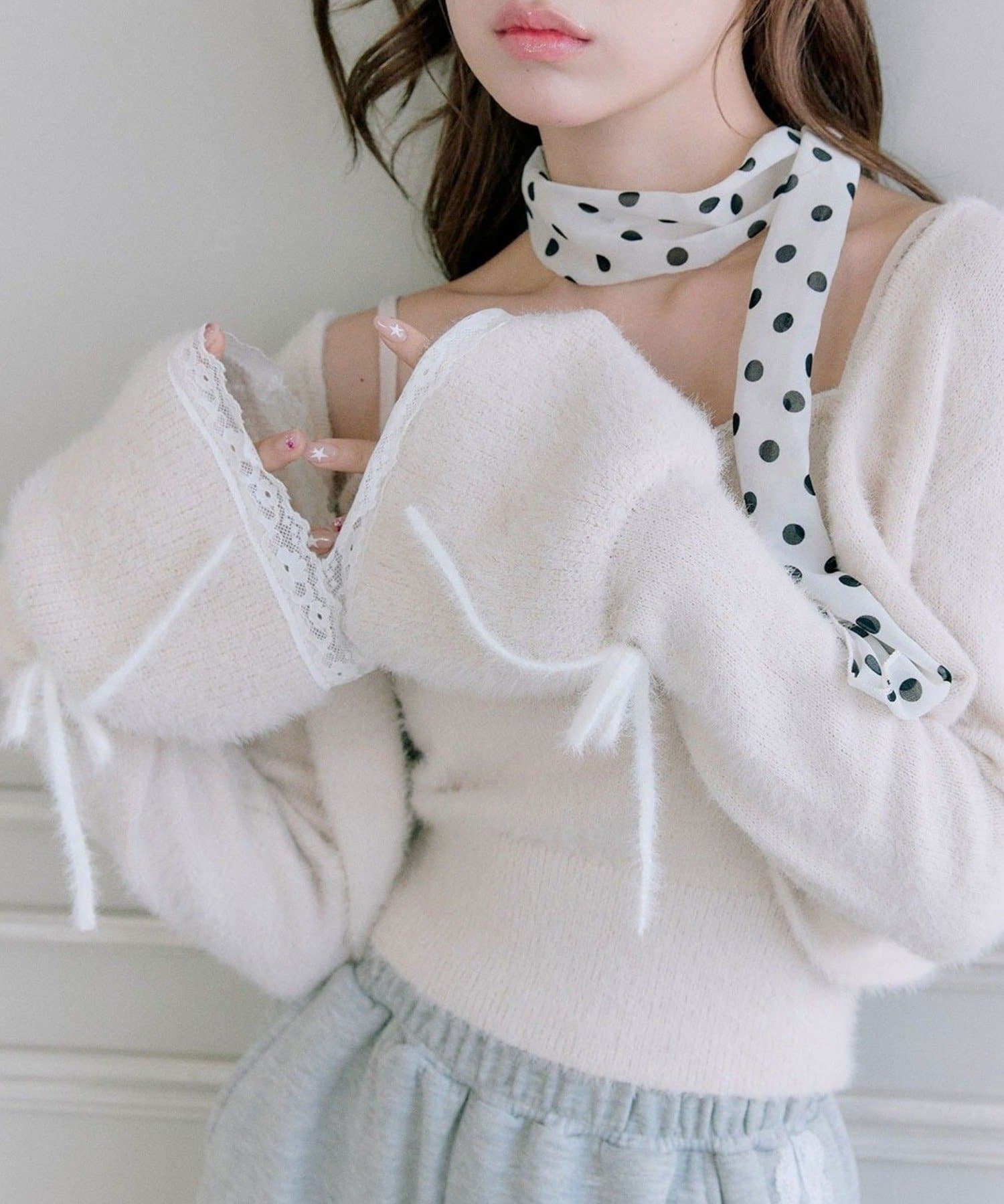 ・袖にさりげなくレースが付いていて、甘さをプラスするデザインです。