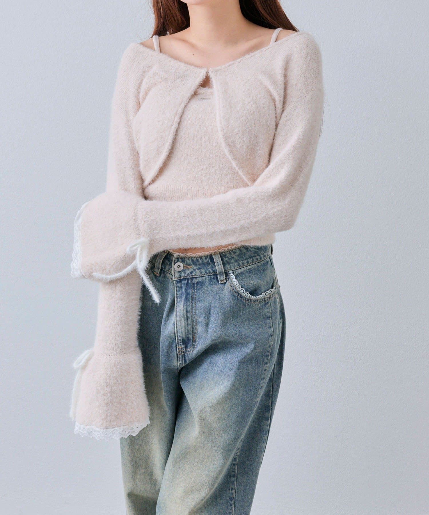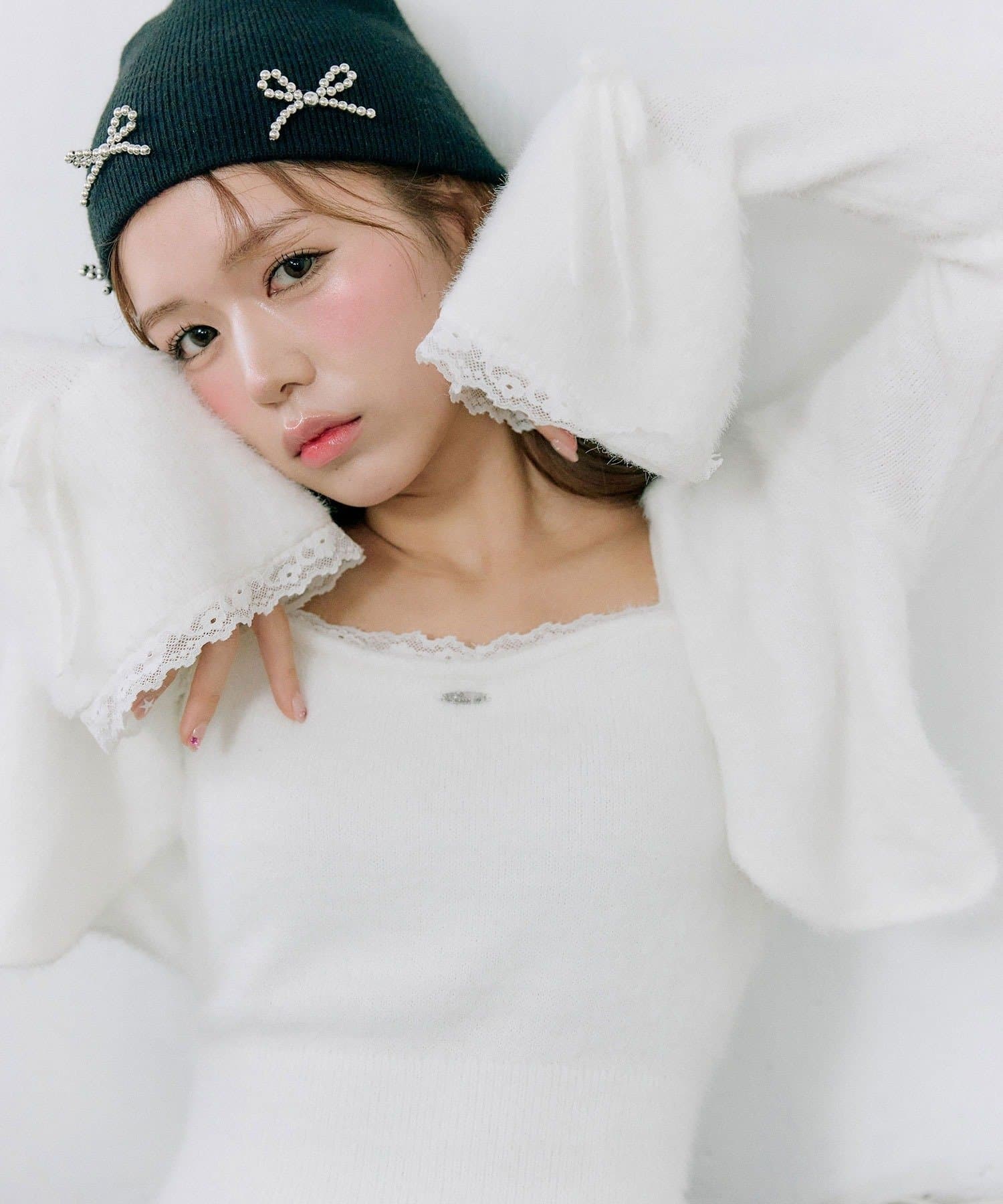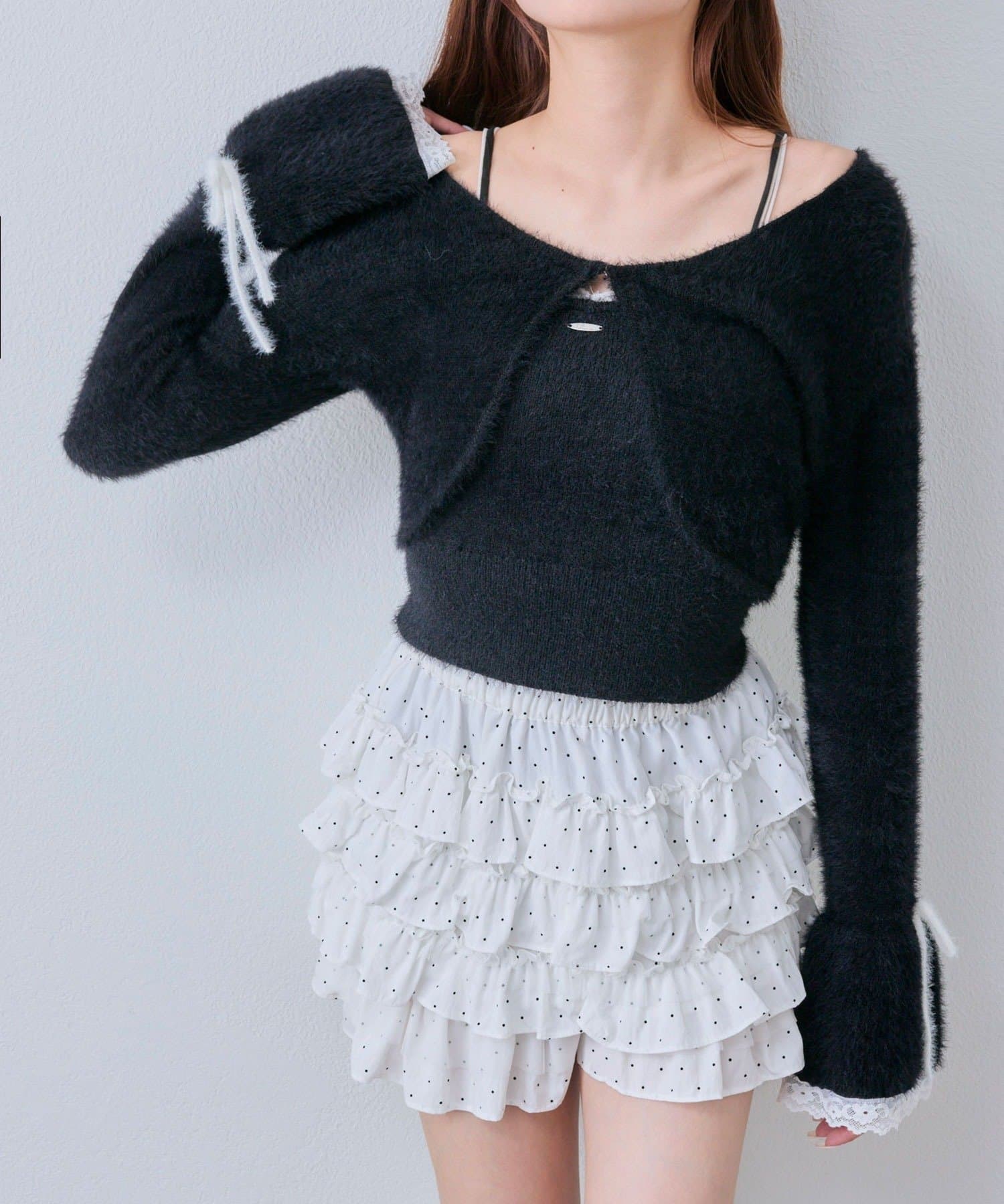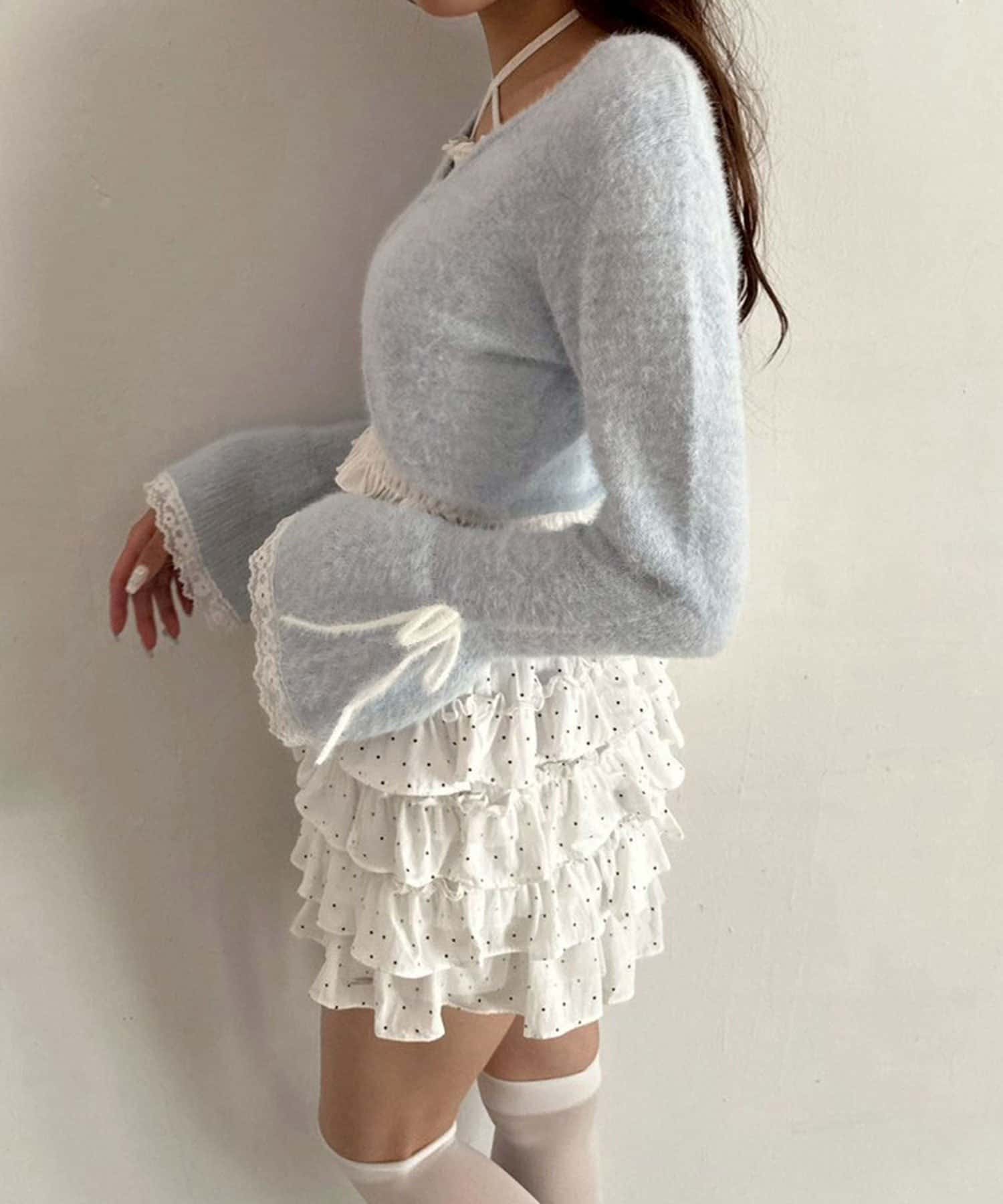 ・袖にさりげなくレースが付いていて、甘さをプラスするデザインです。