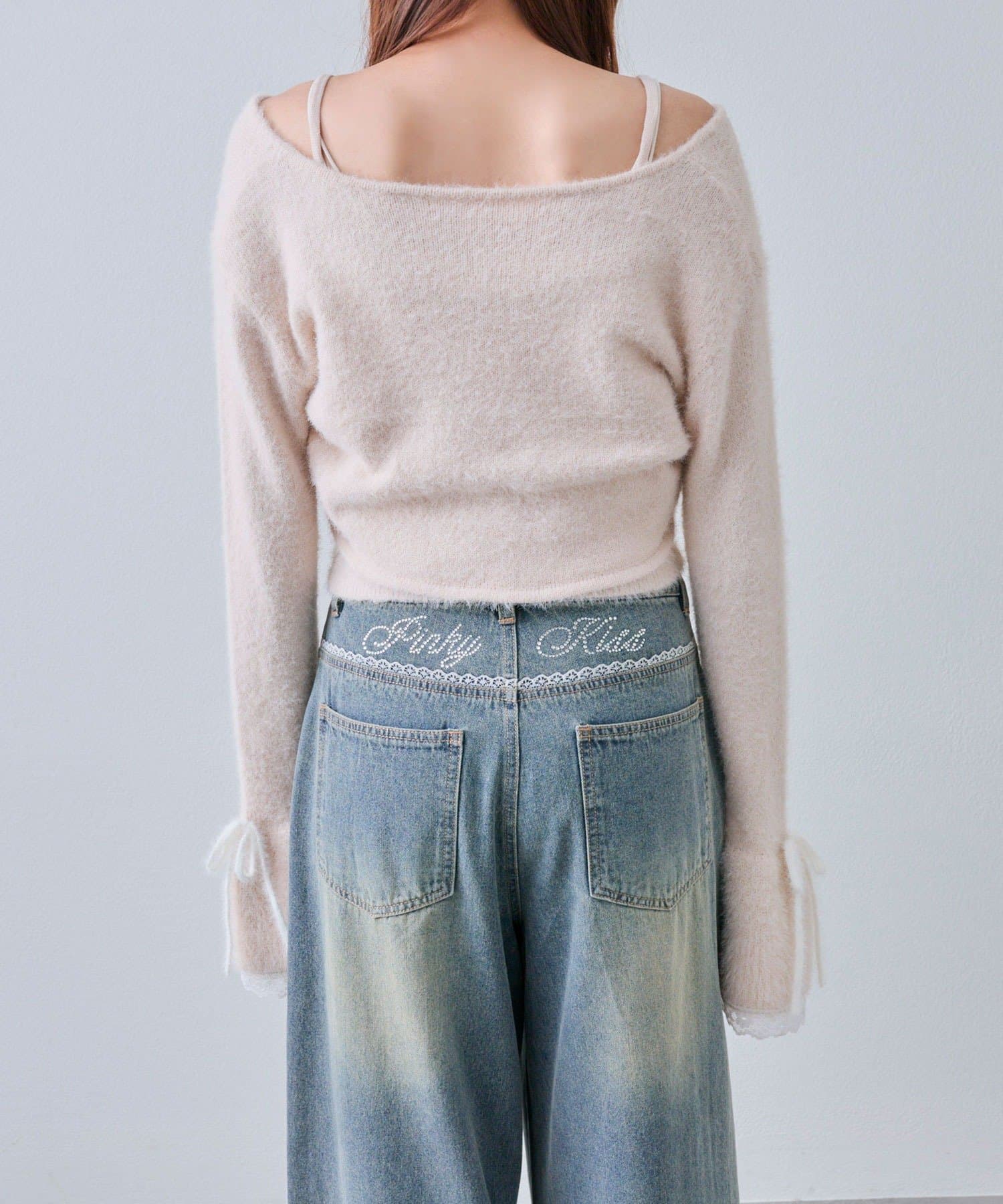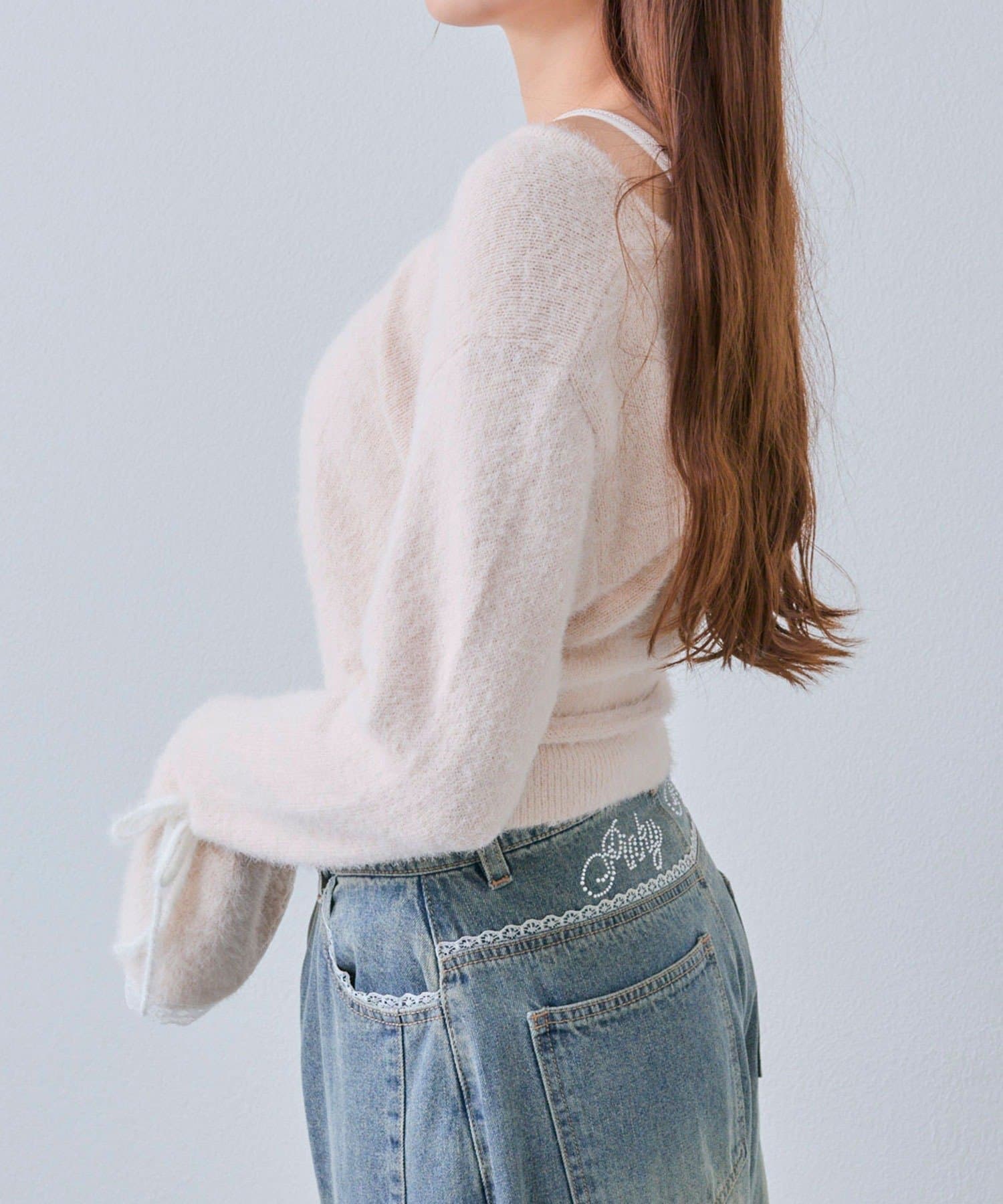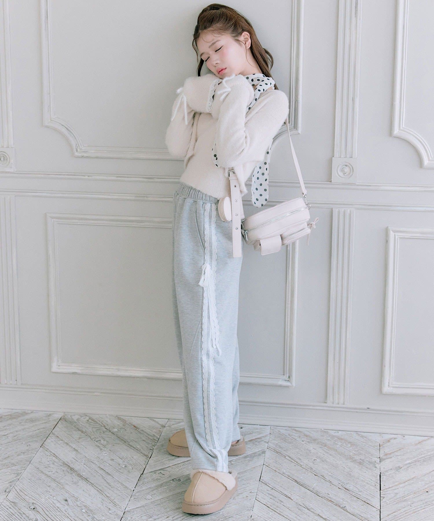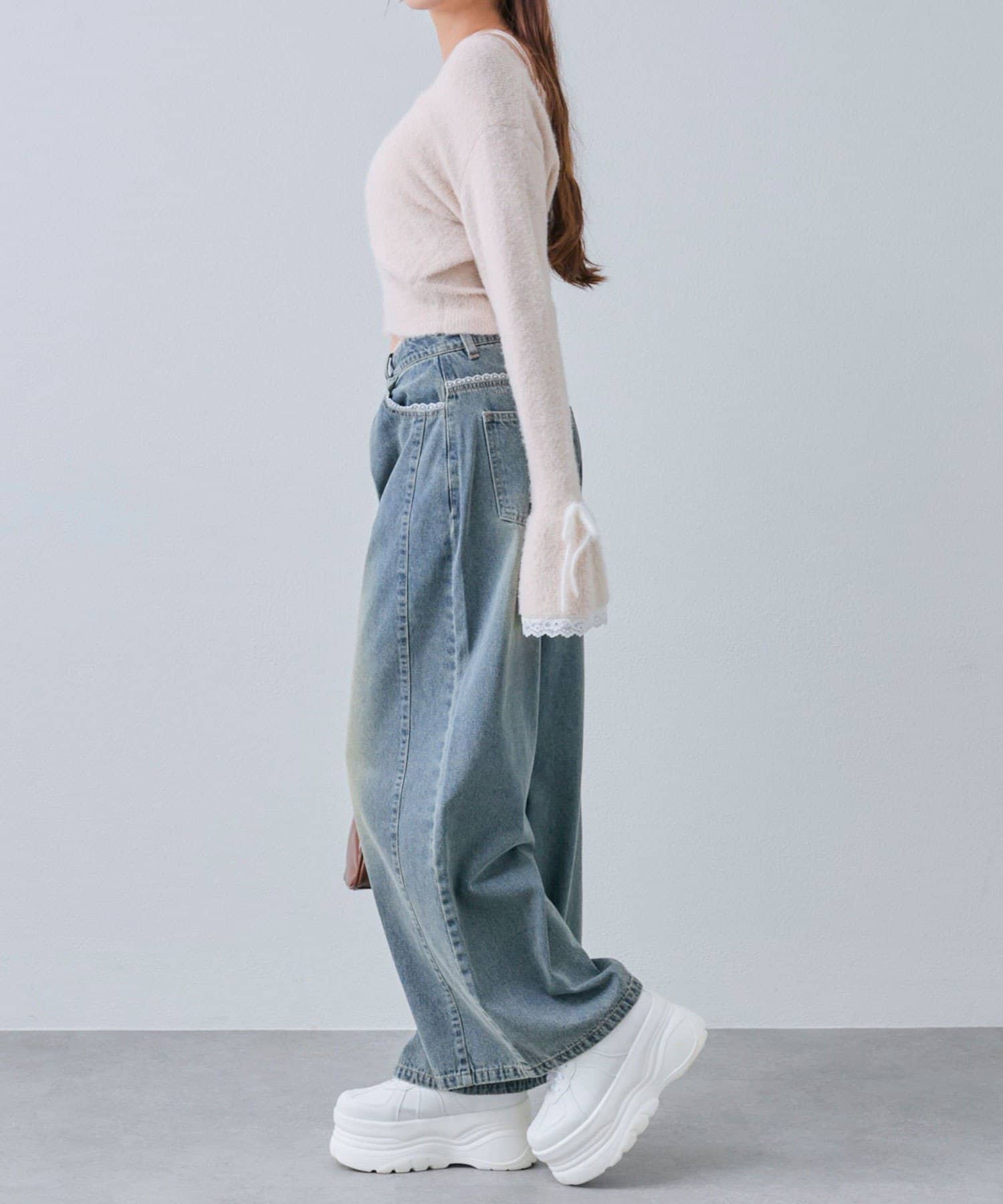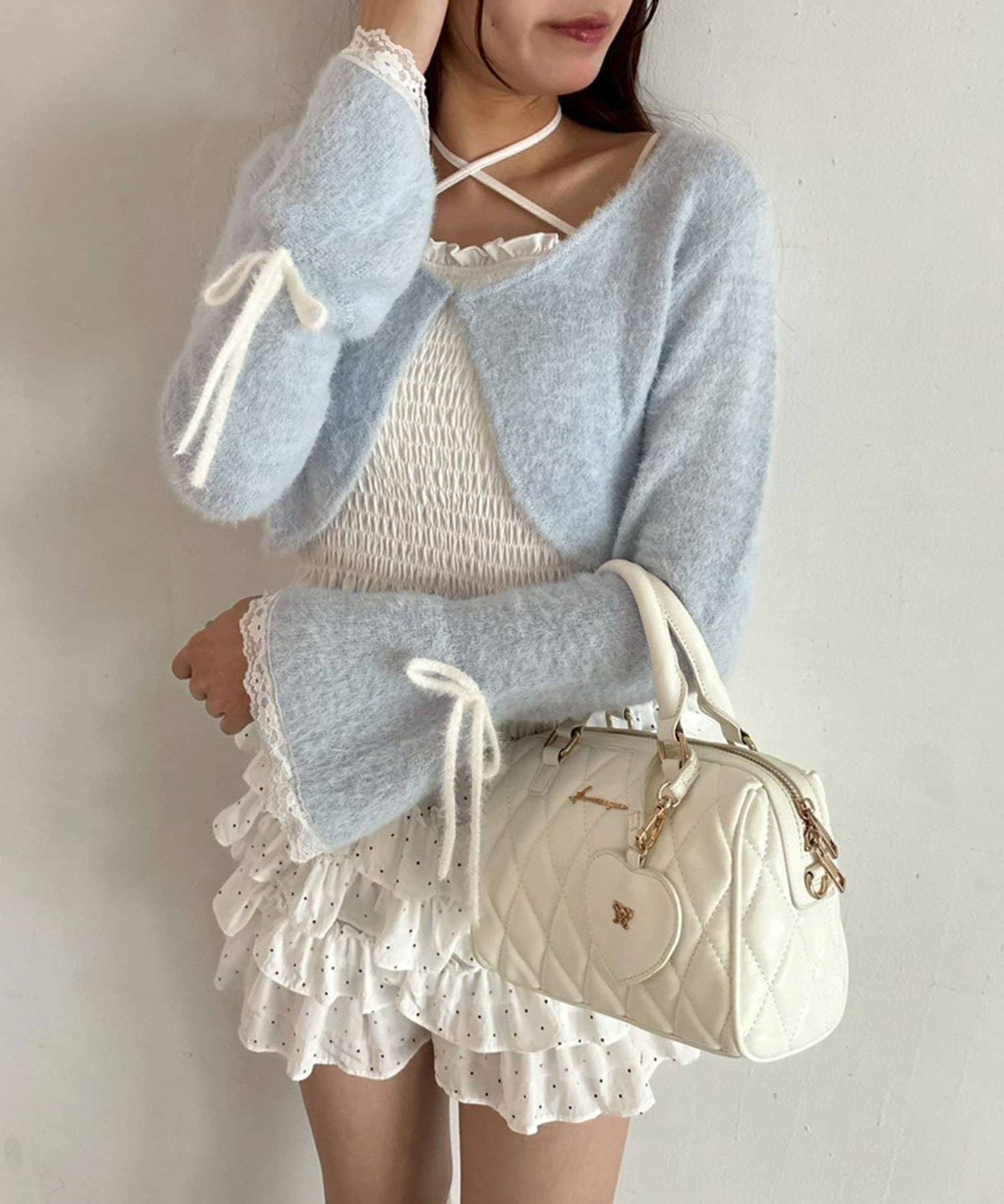 ・袖にさりげなくレースが付いていて、甘さをプラスするデザインです。