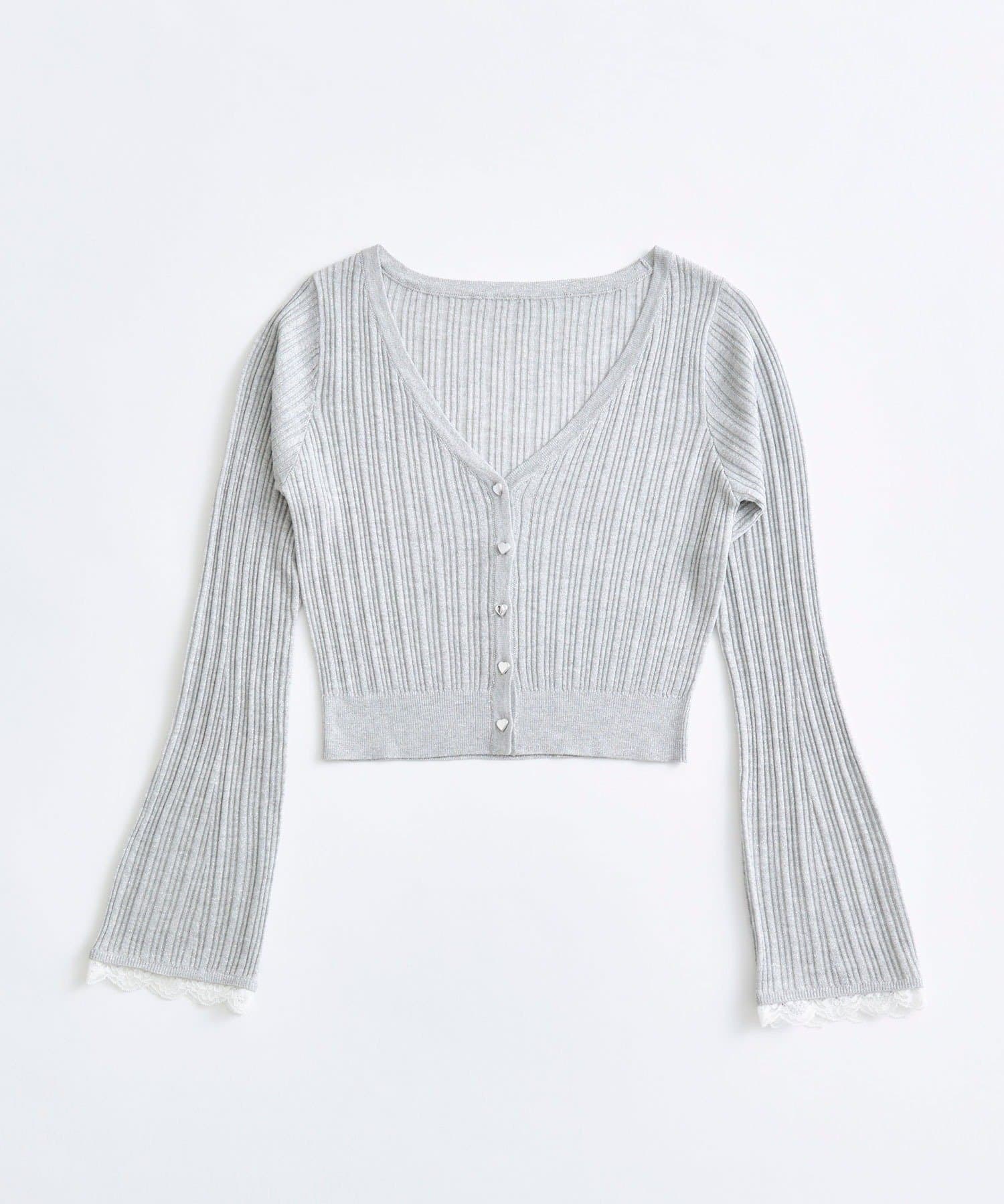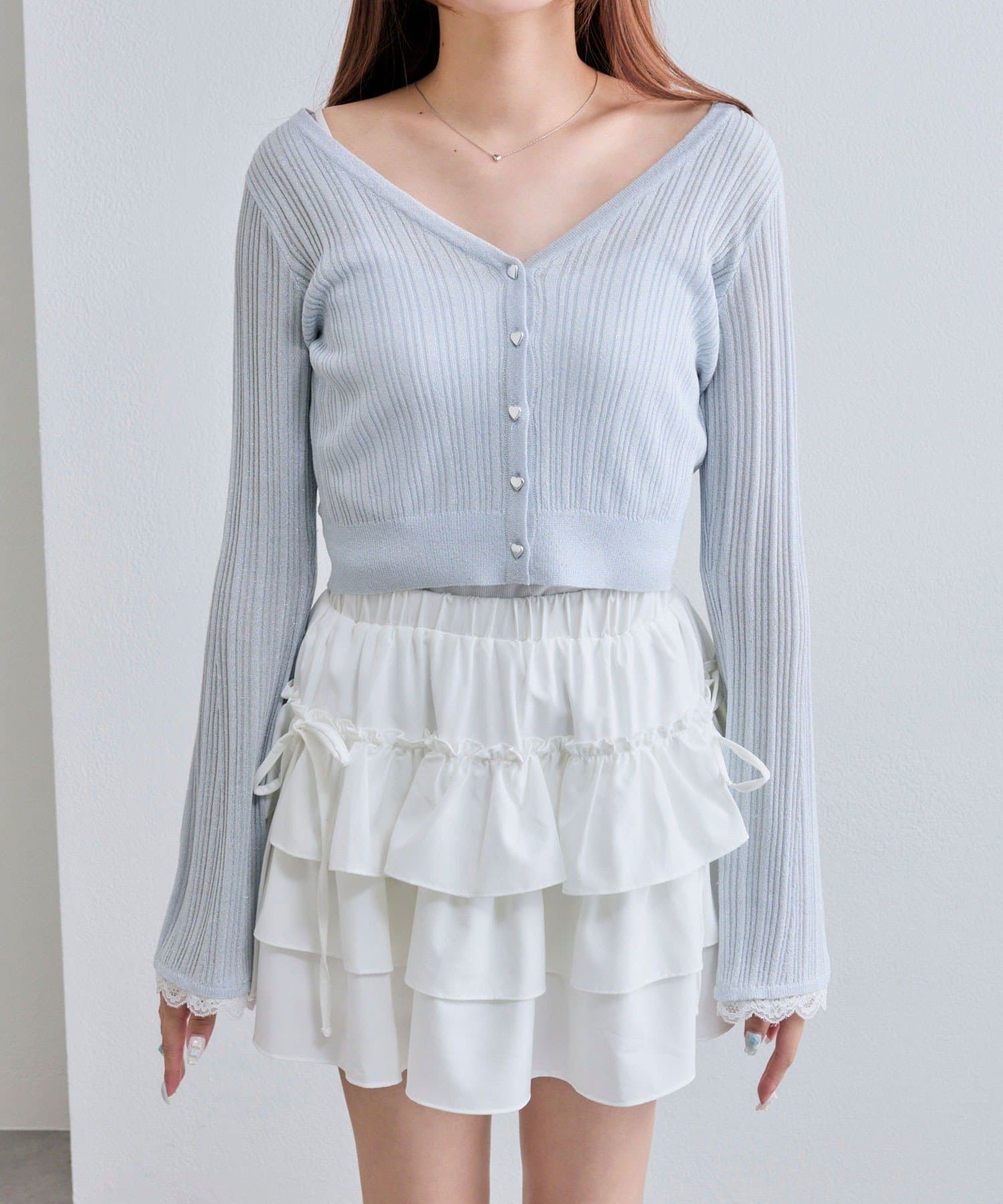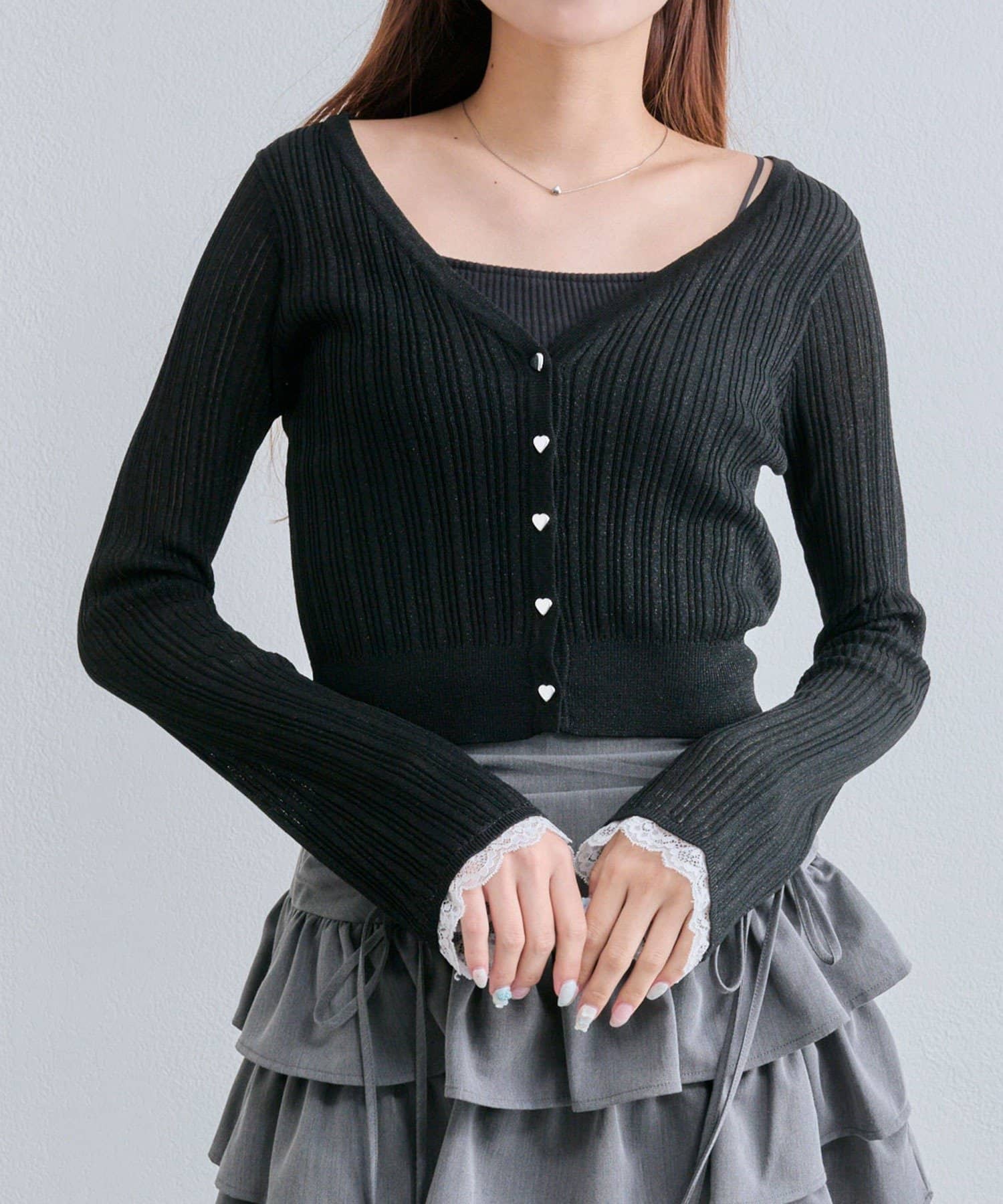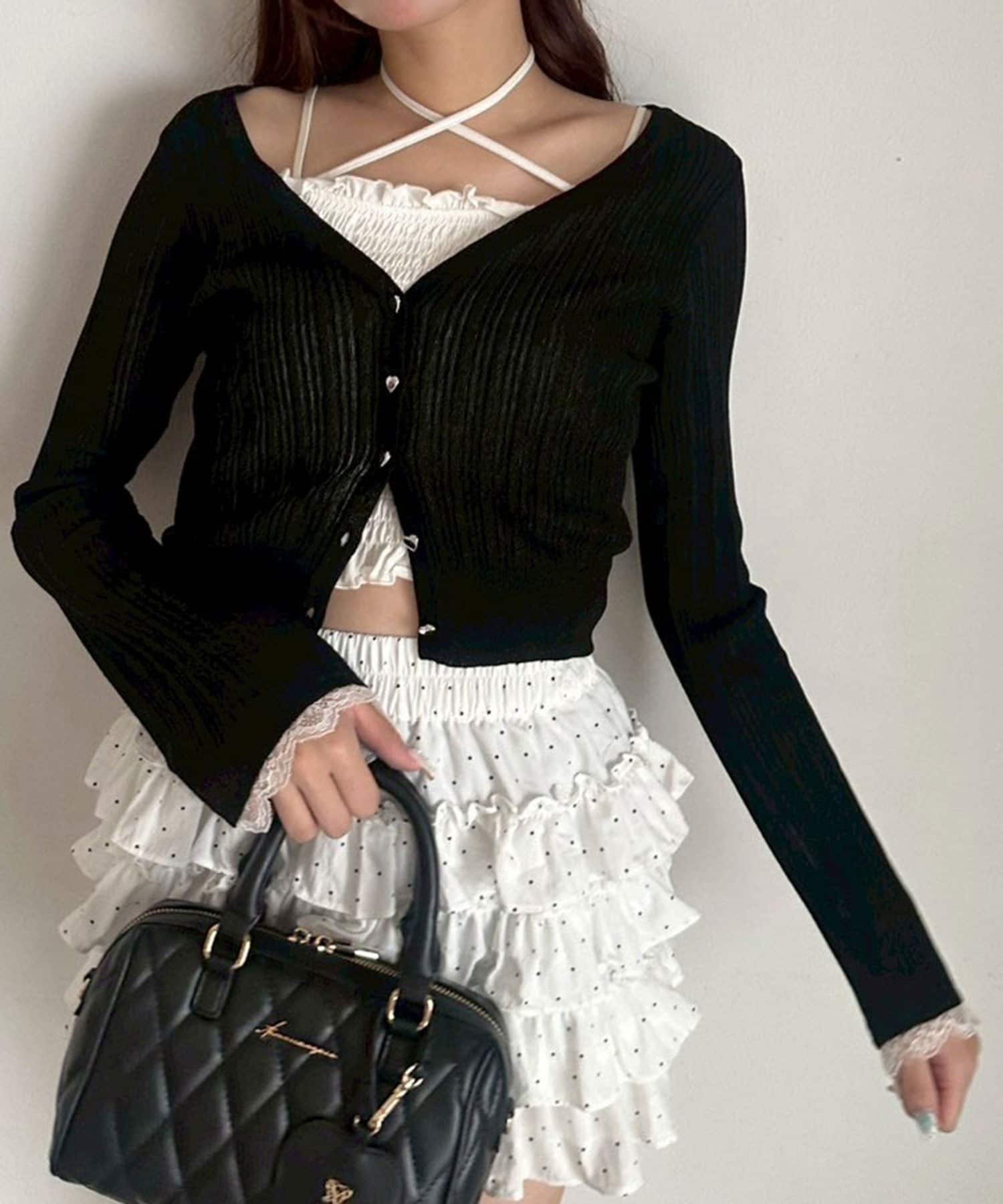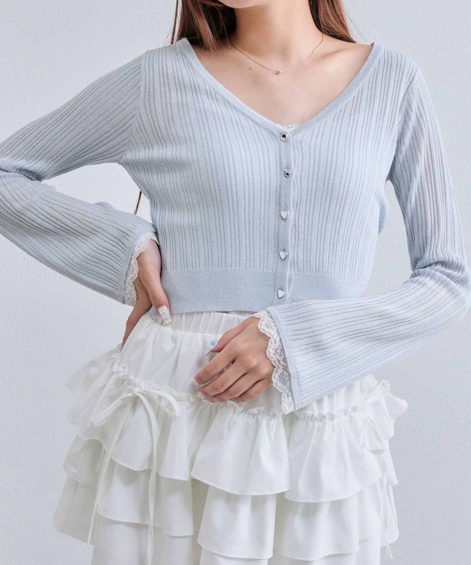 ・さりげないハートボタンと袖のレースも可愛いポイントで、コーデに甘さをプラスします。
