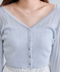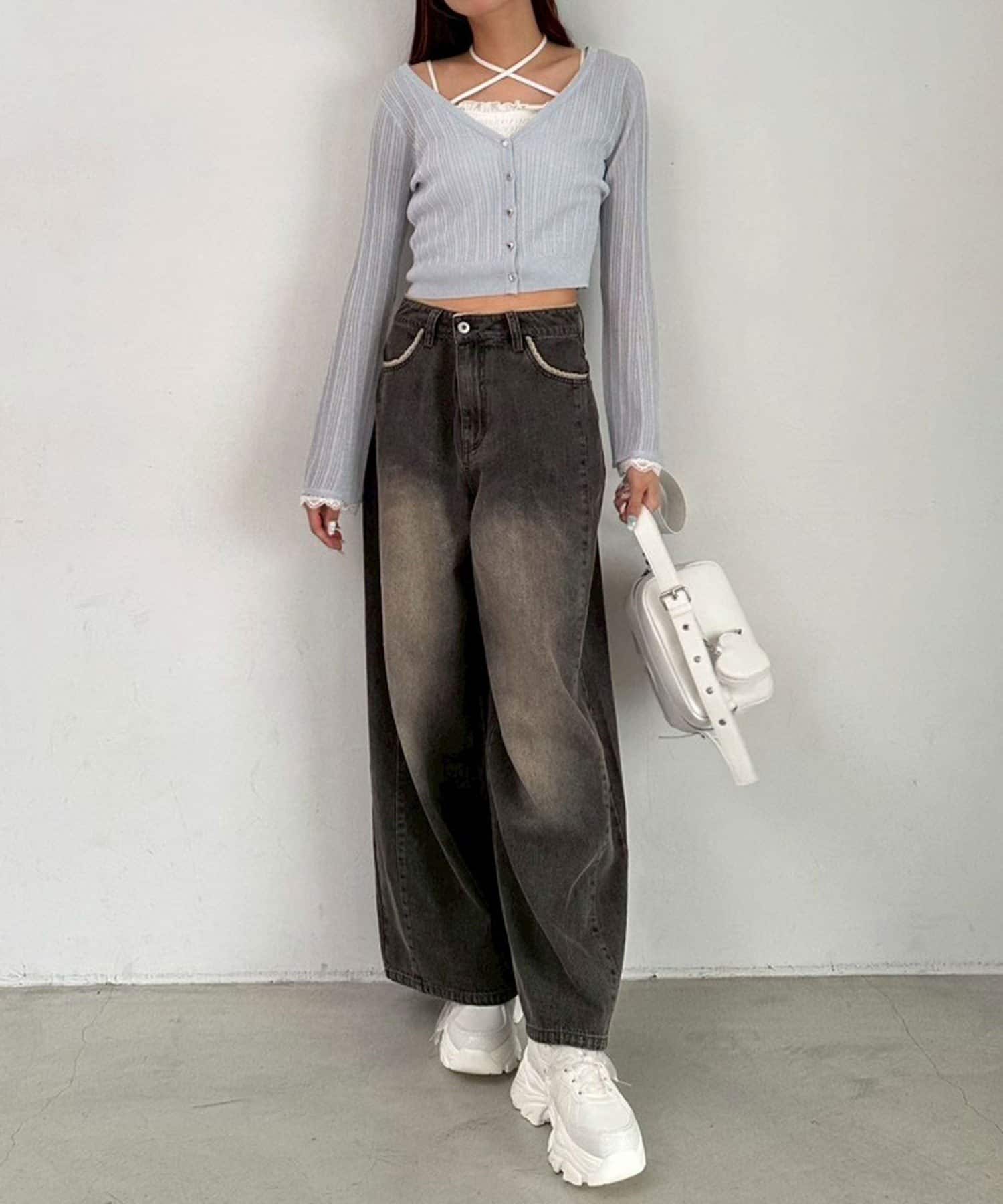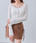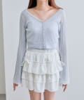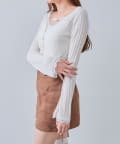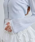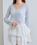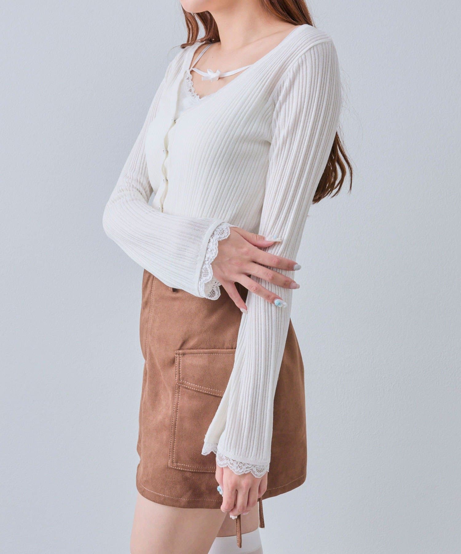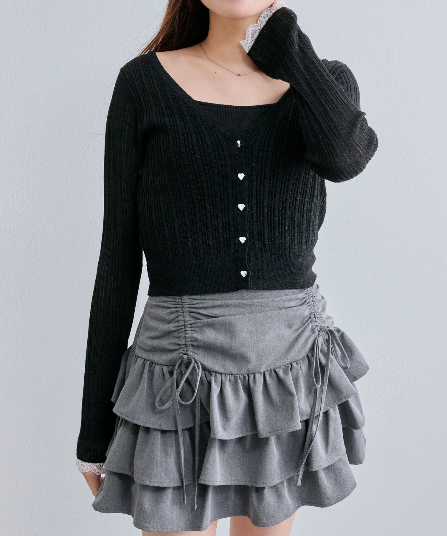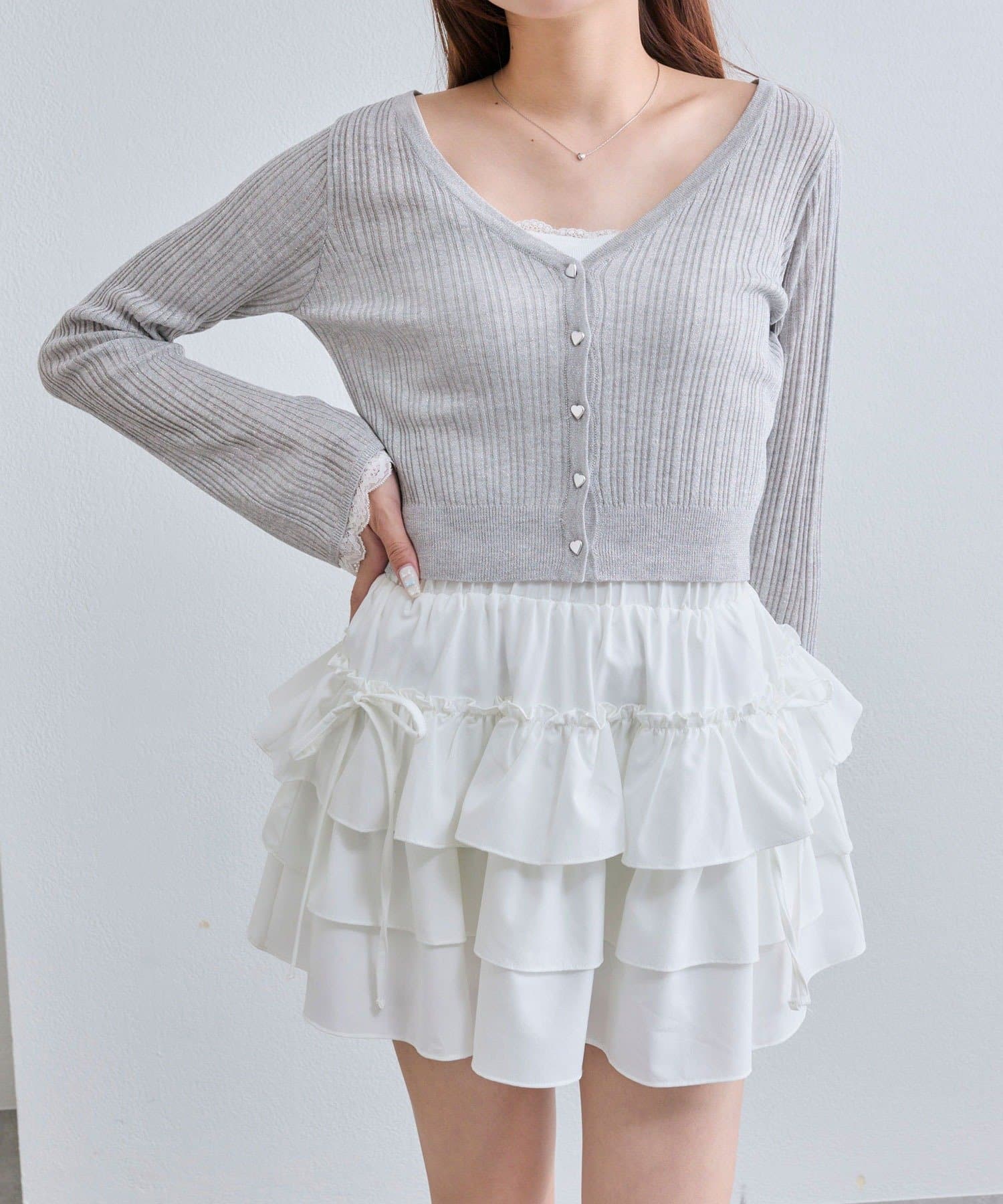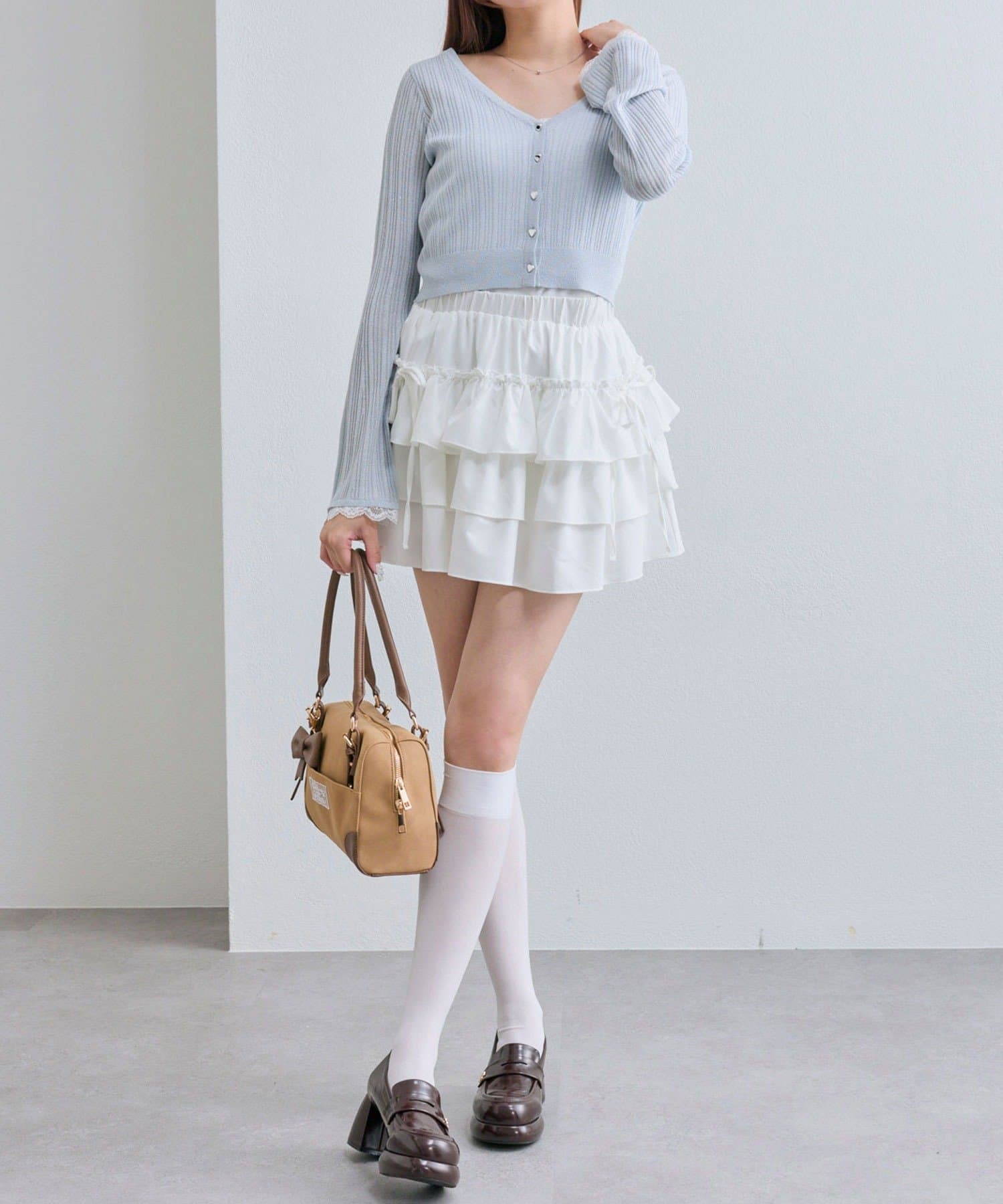 ・さりげないハートボタンと袖のレースも可愛いポイントで、コーデに甘さをプラスします。