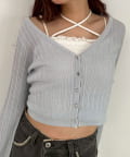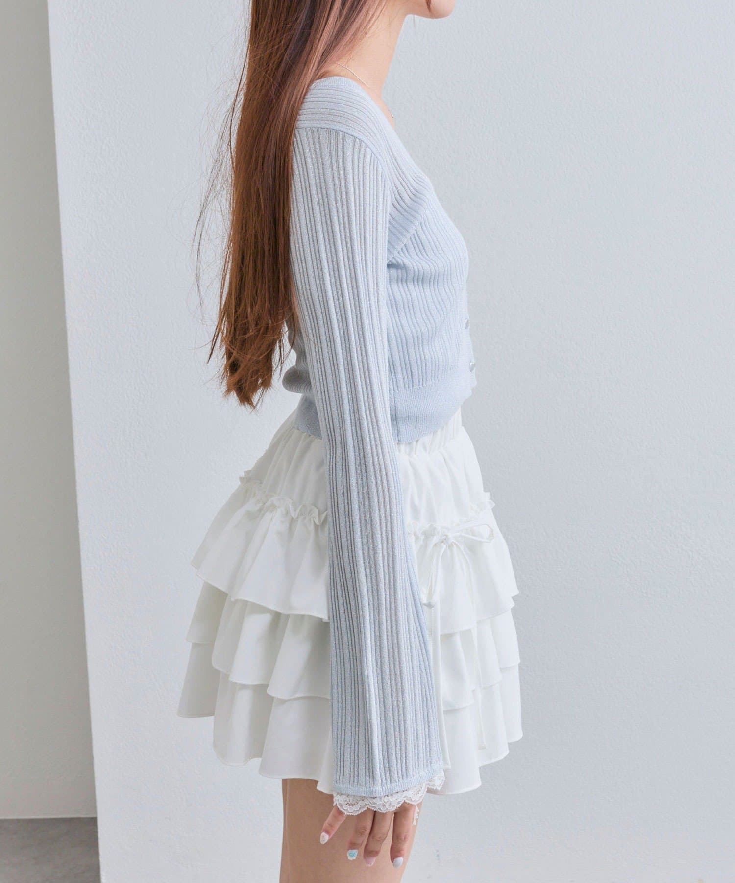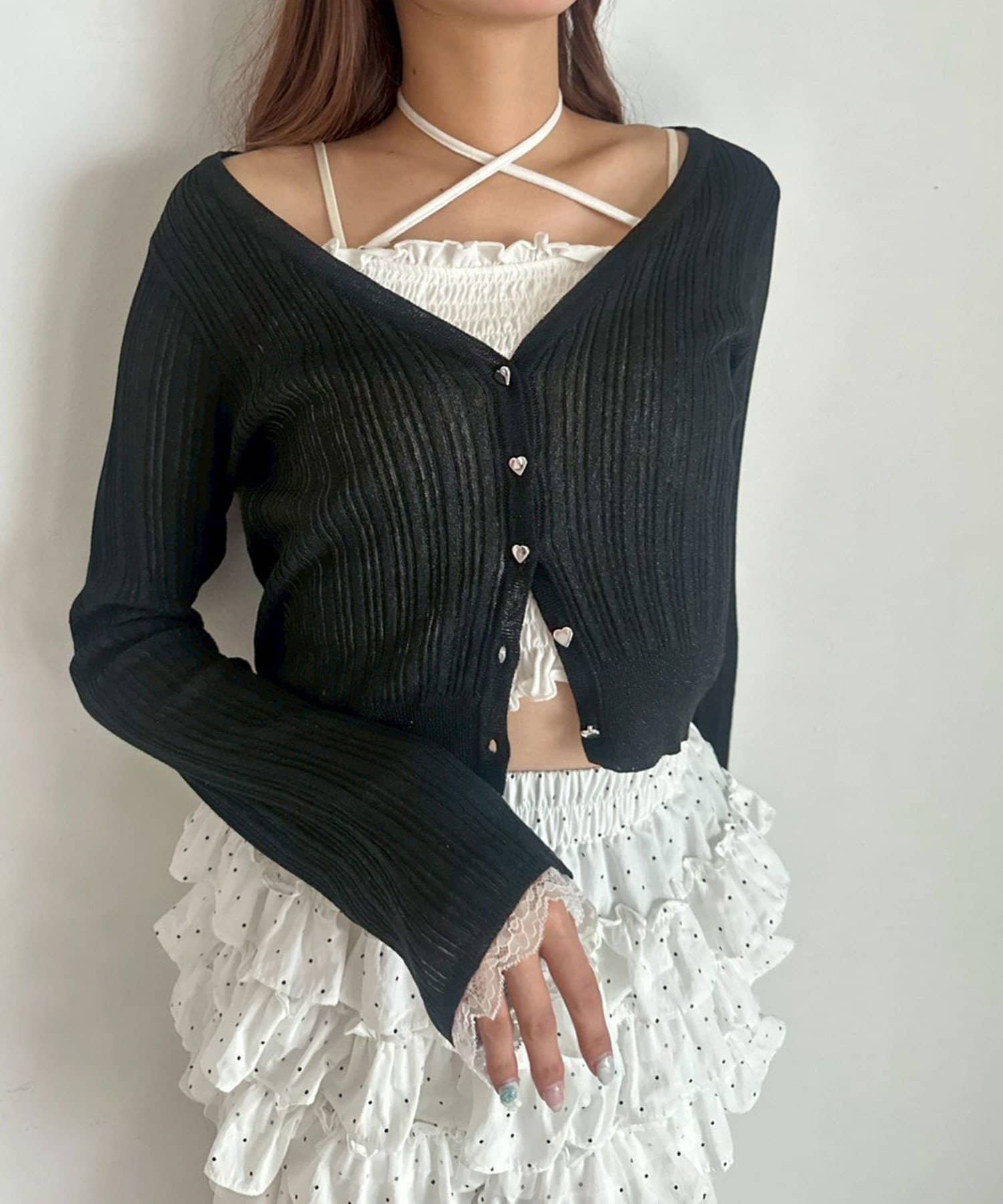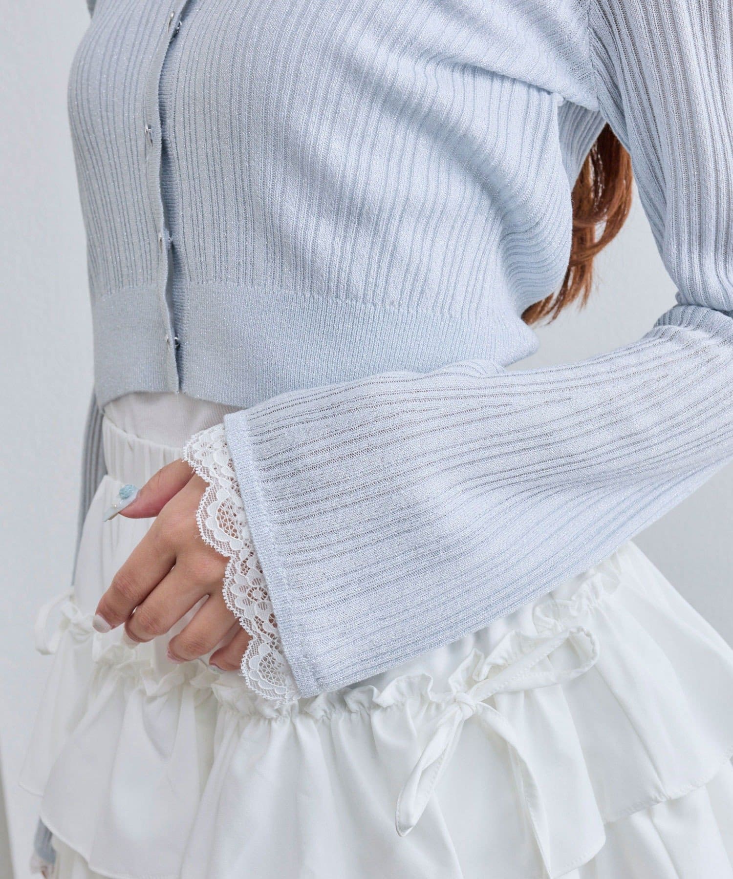 ・透け感のあるシア素材に、きらきらのラメが輝くカーディガン。