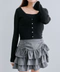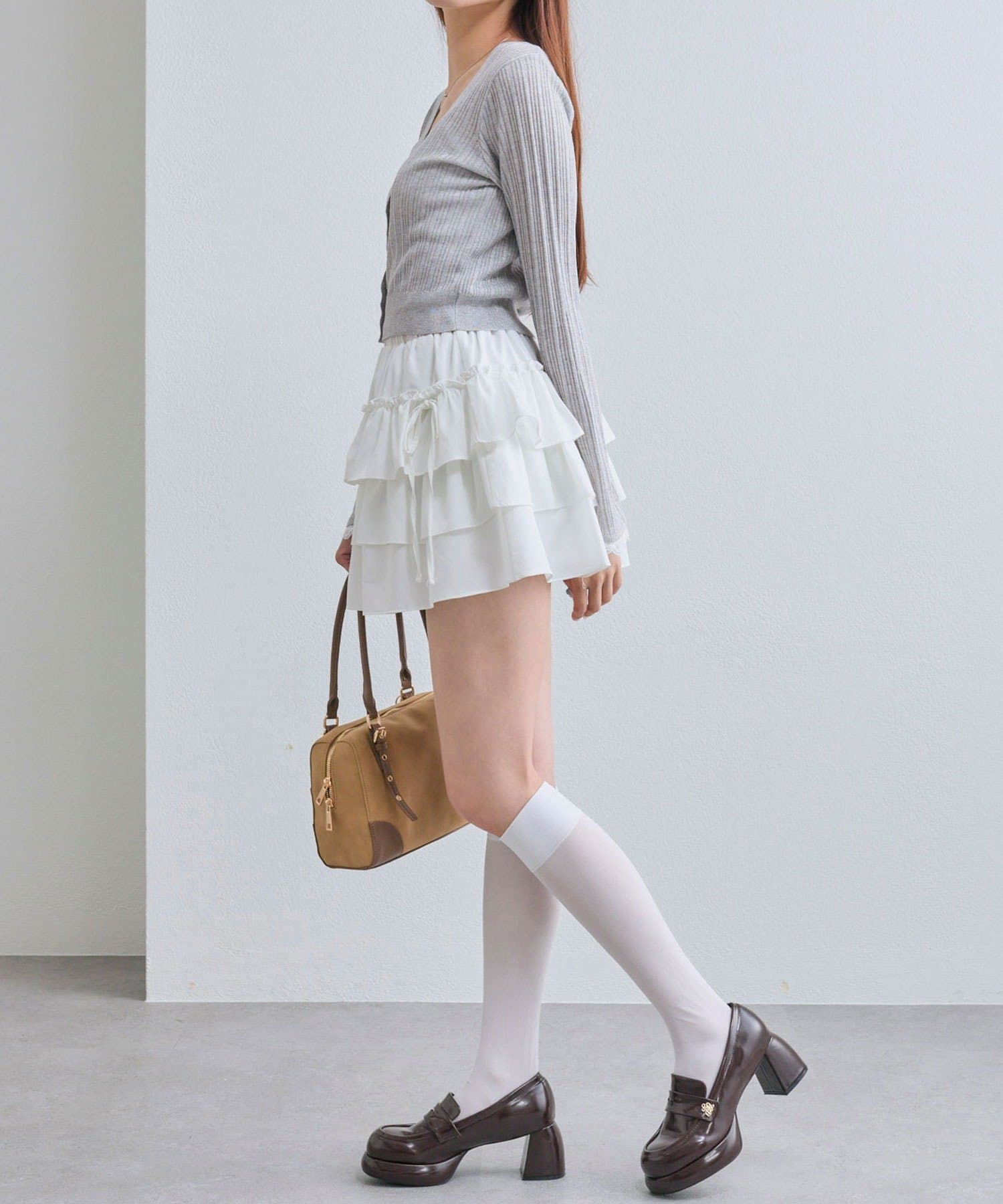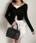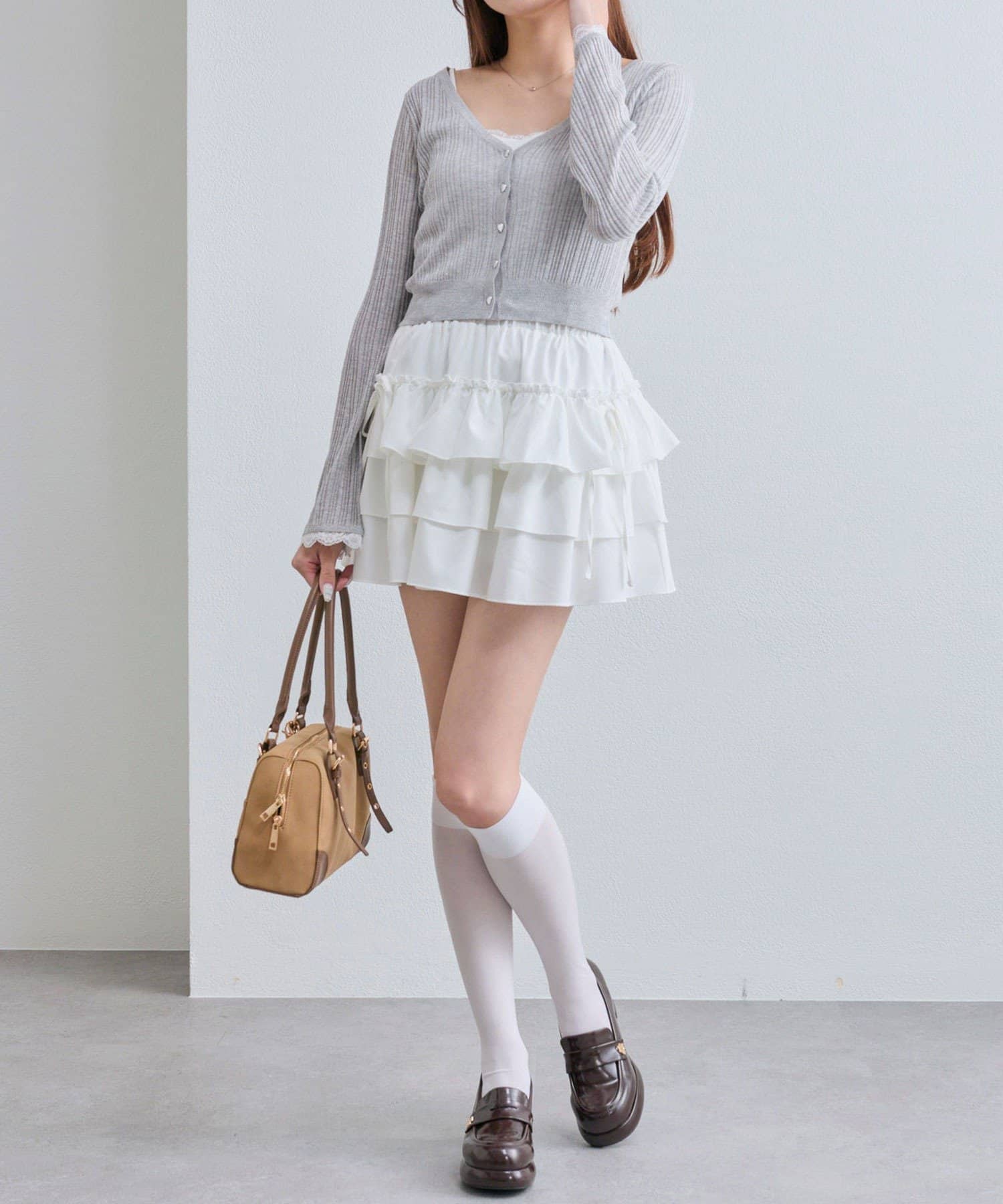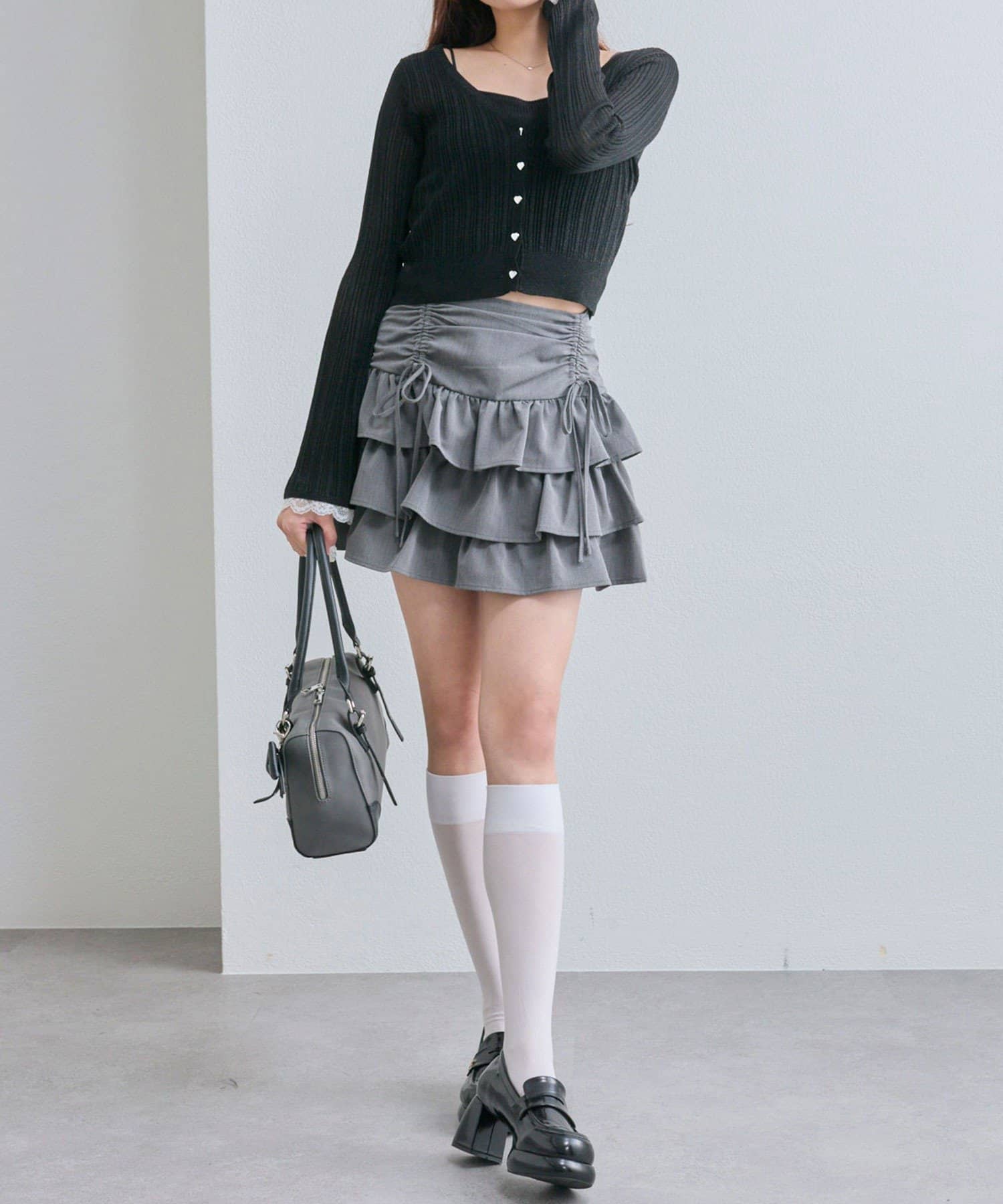 ・ミニスカートを合わせて、トレンド感のある韓国ガーリーにまとめるのがおすすめ。