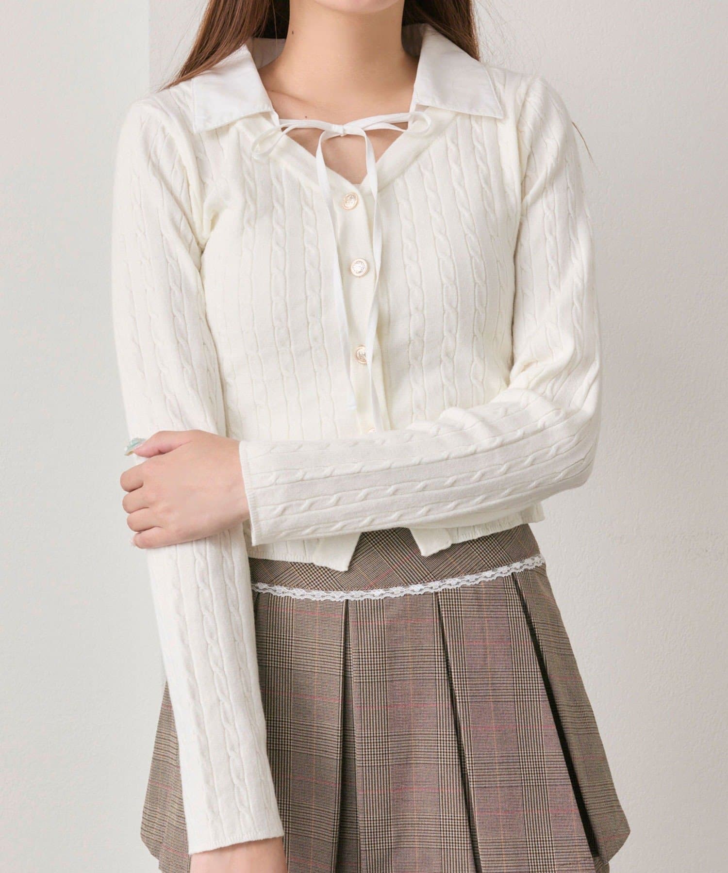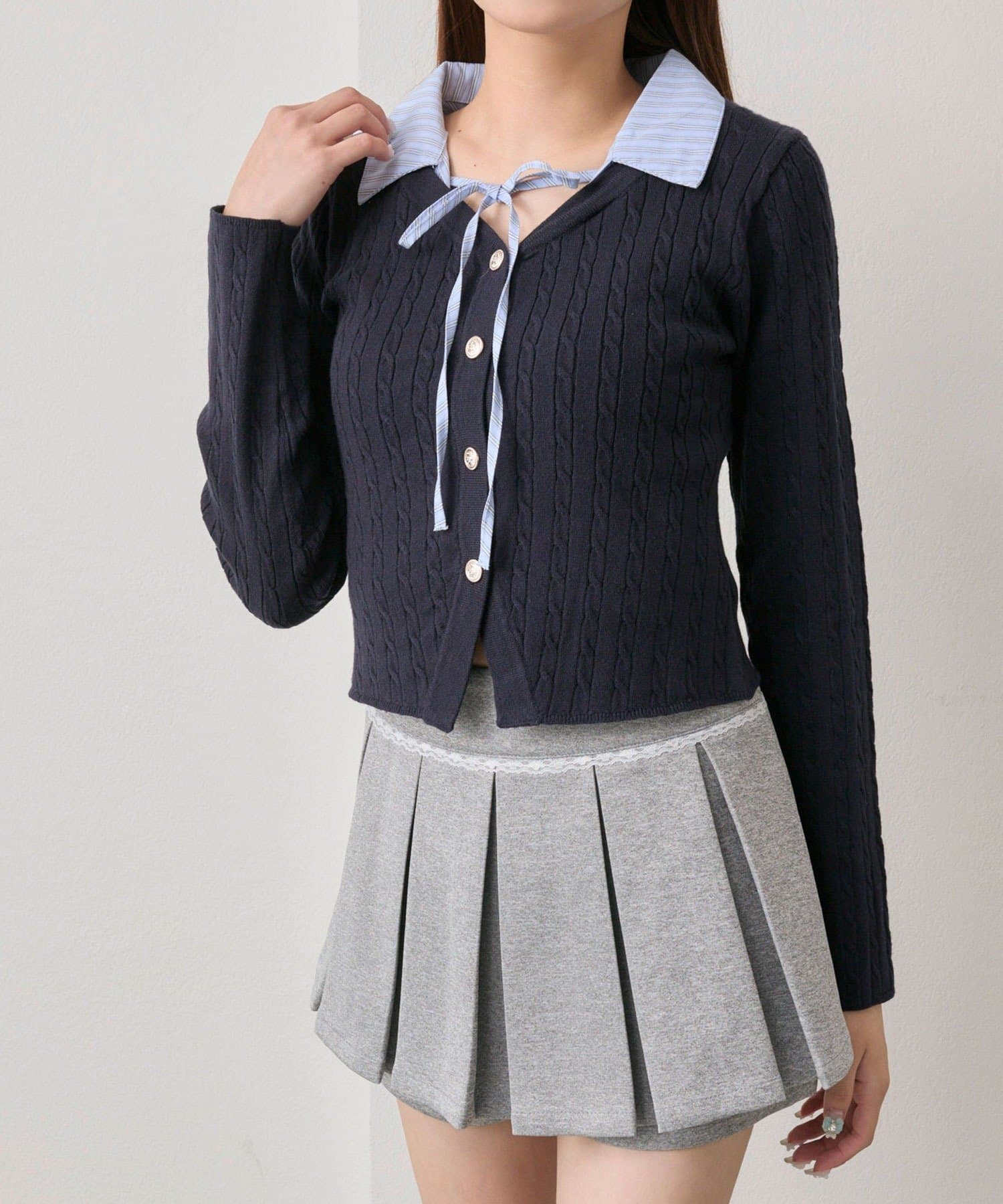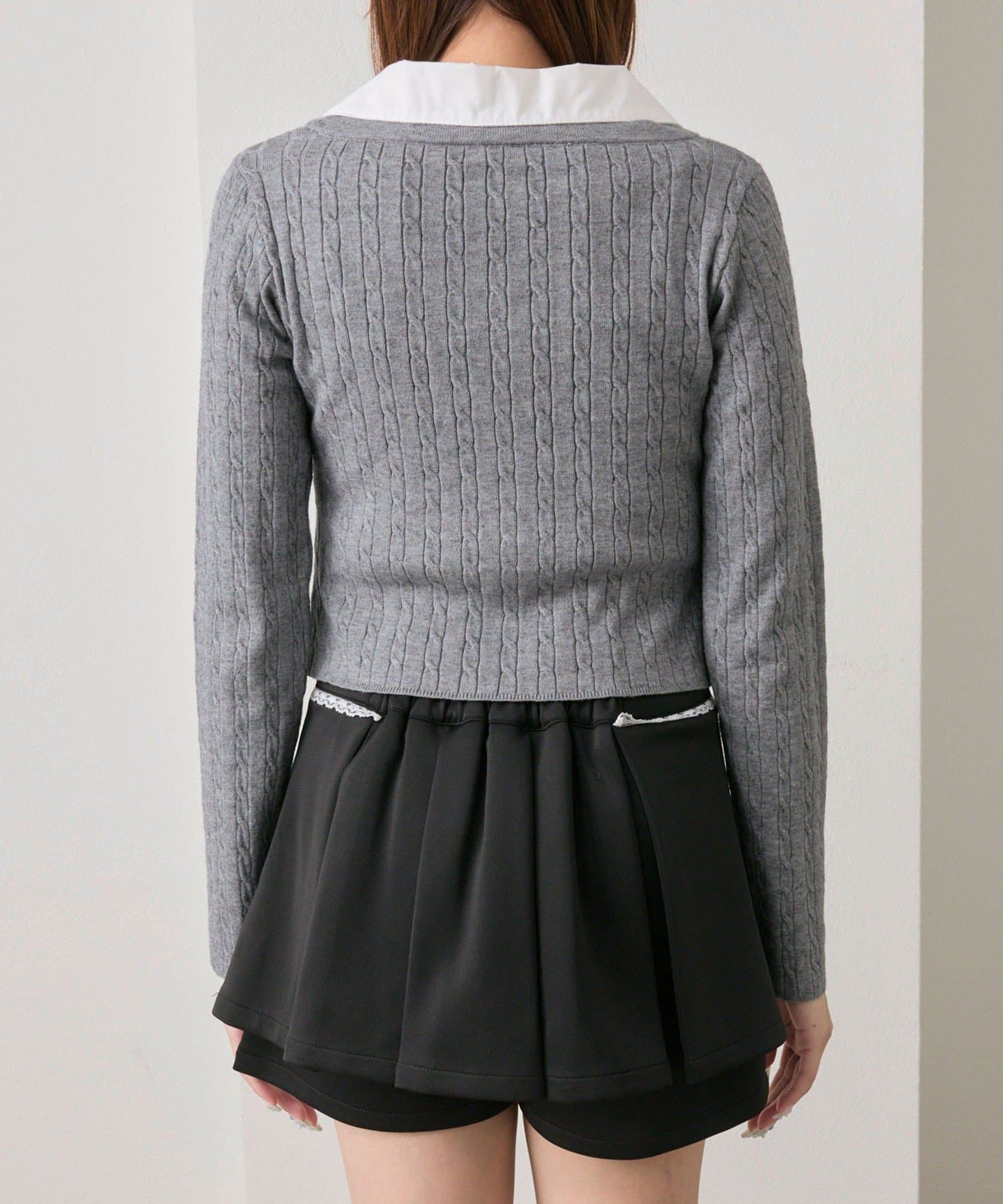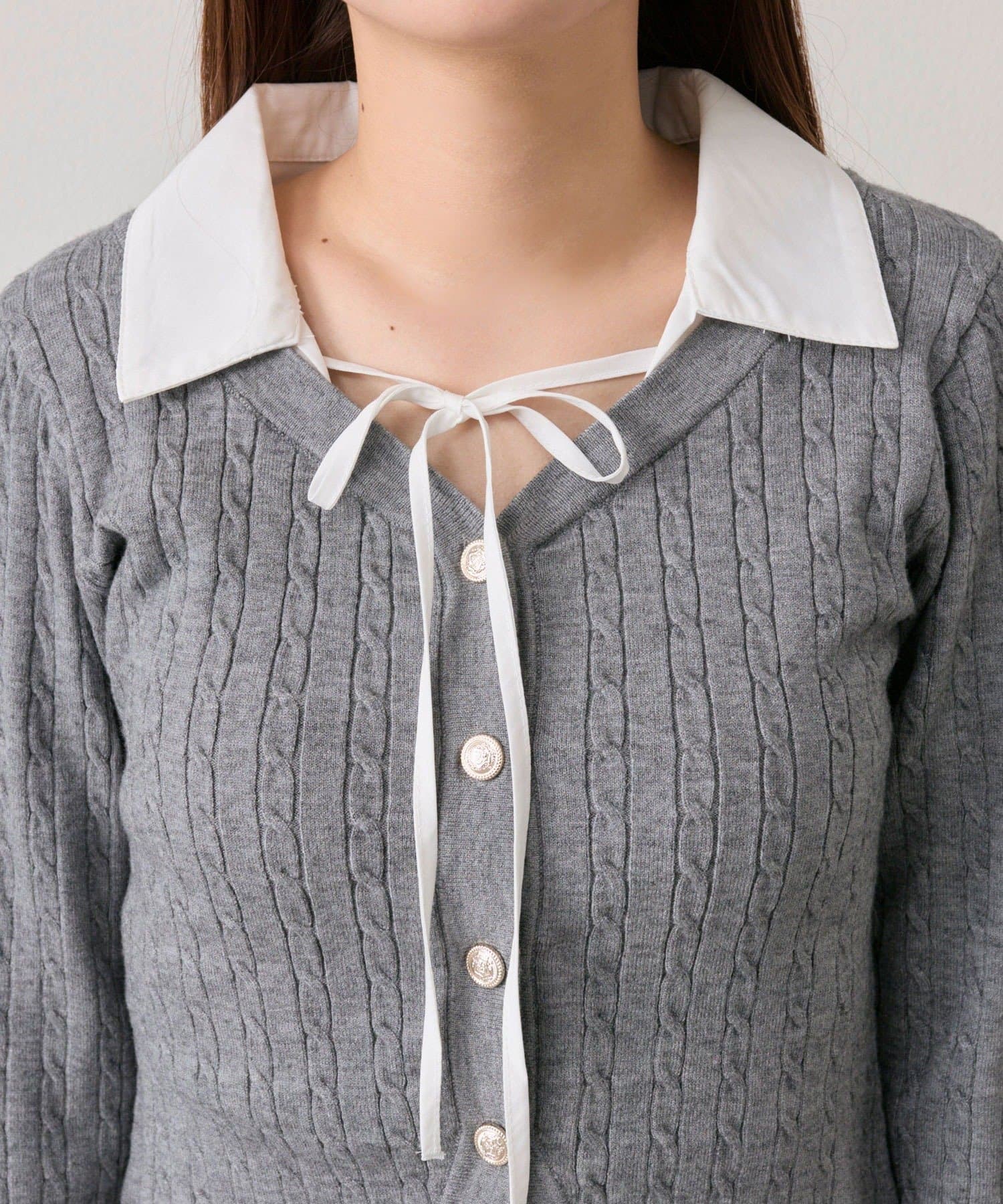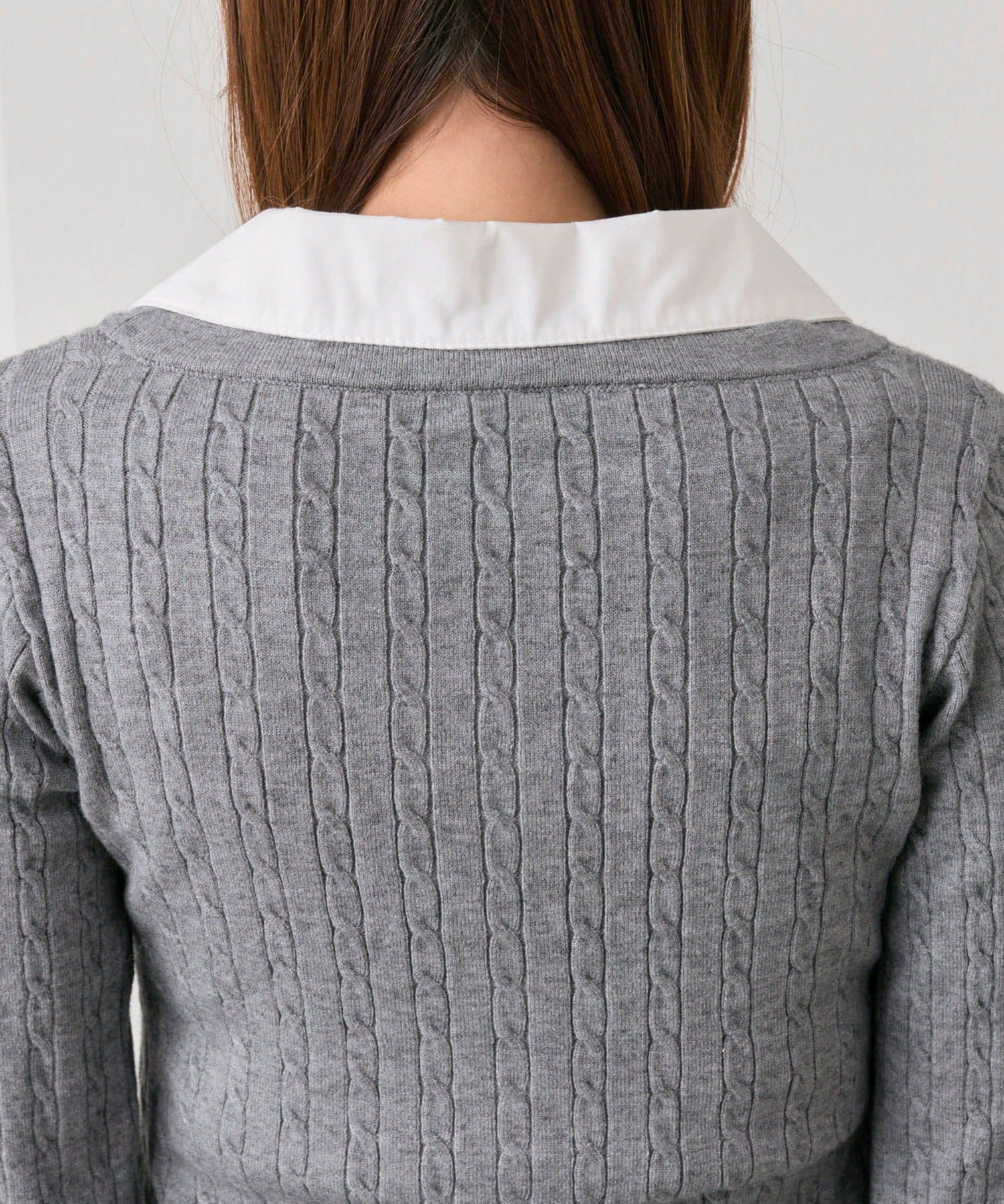 ・金ボタン付きのケーブルニットに、シャツをレイヤードしたようなきちんと感も可愛さも欲張れるデザイン。