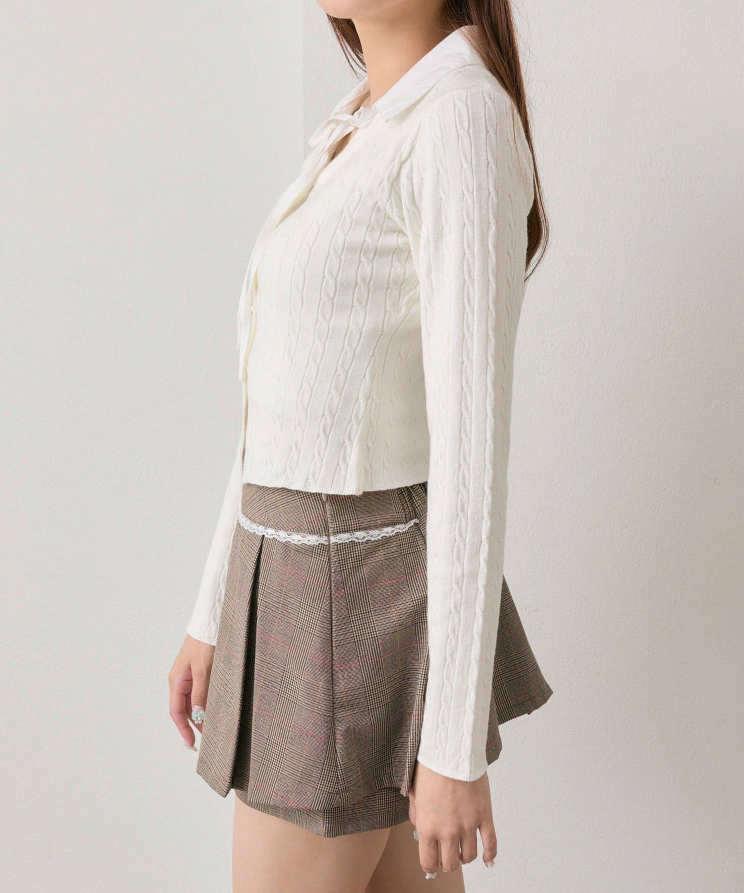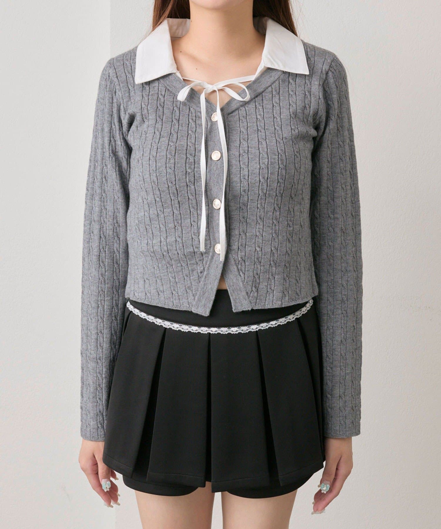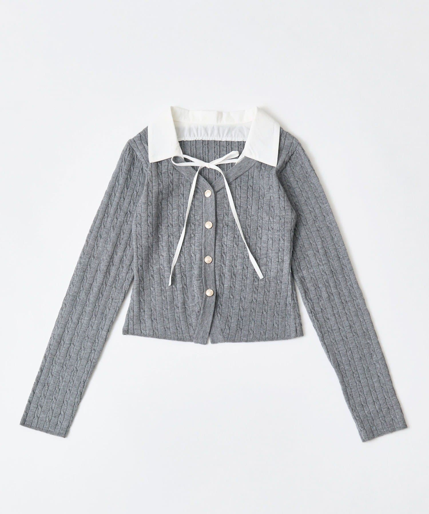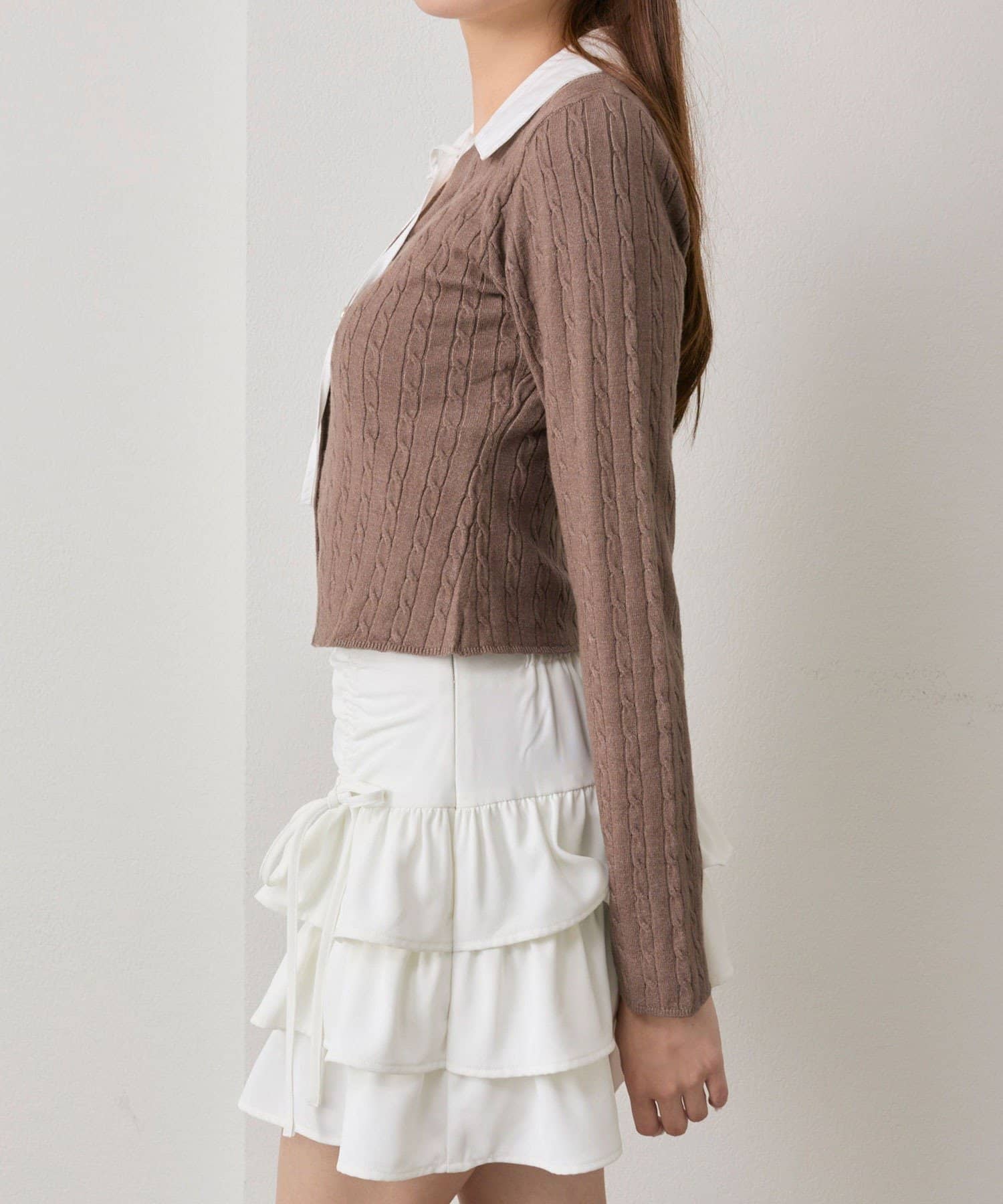 ・金ボタン付きのケーブルニットに、シャツをレイヤードしたようなきちんと感も可愛さも欲張れるデザイン。