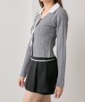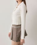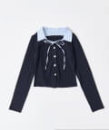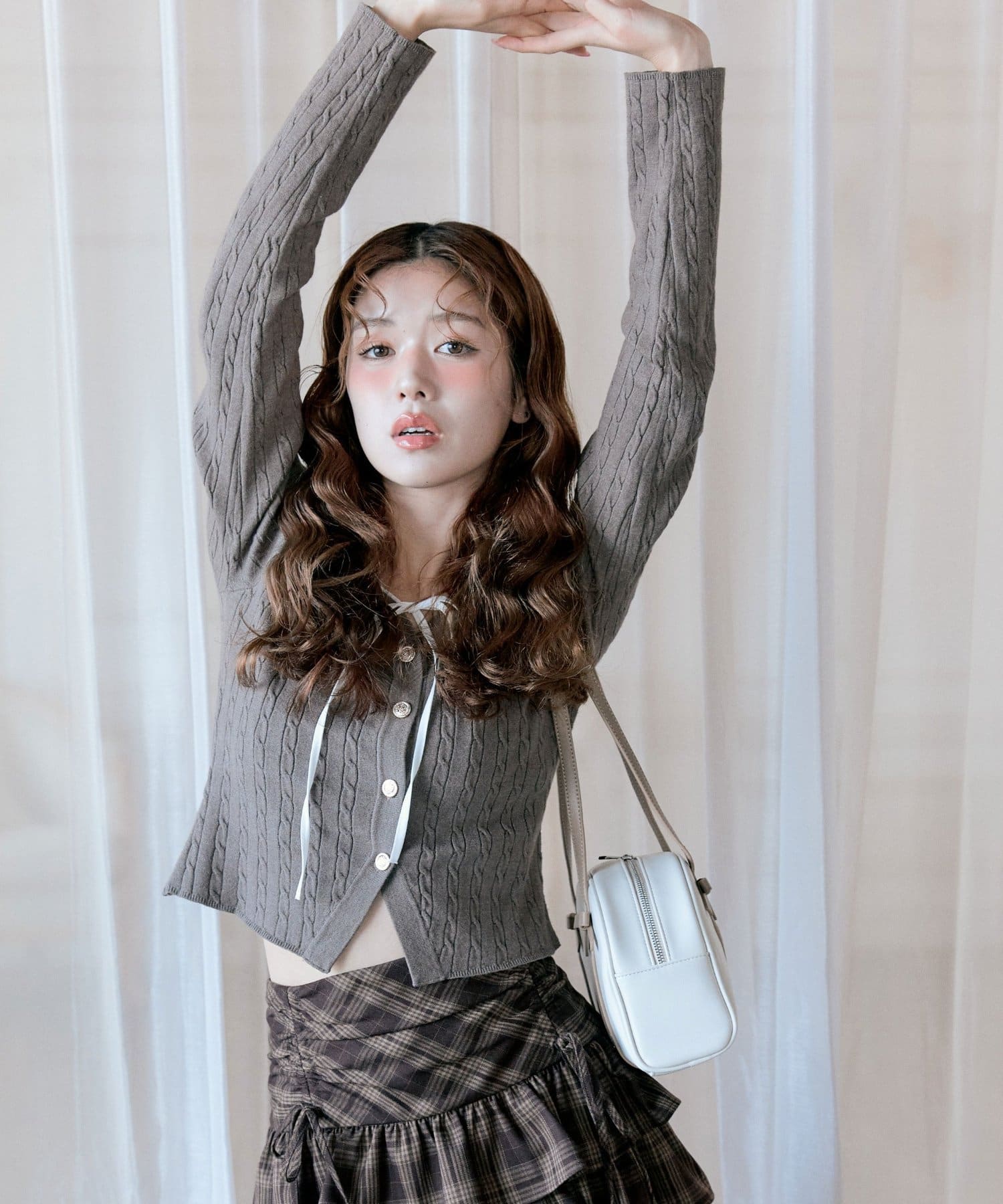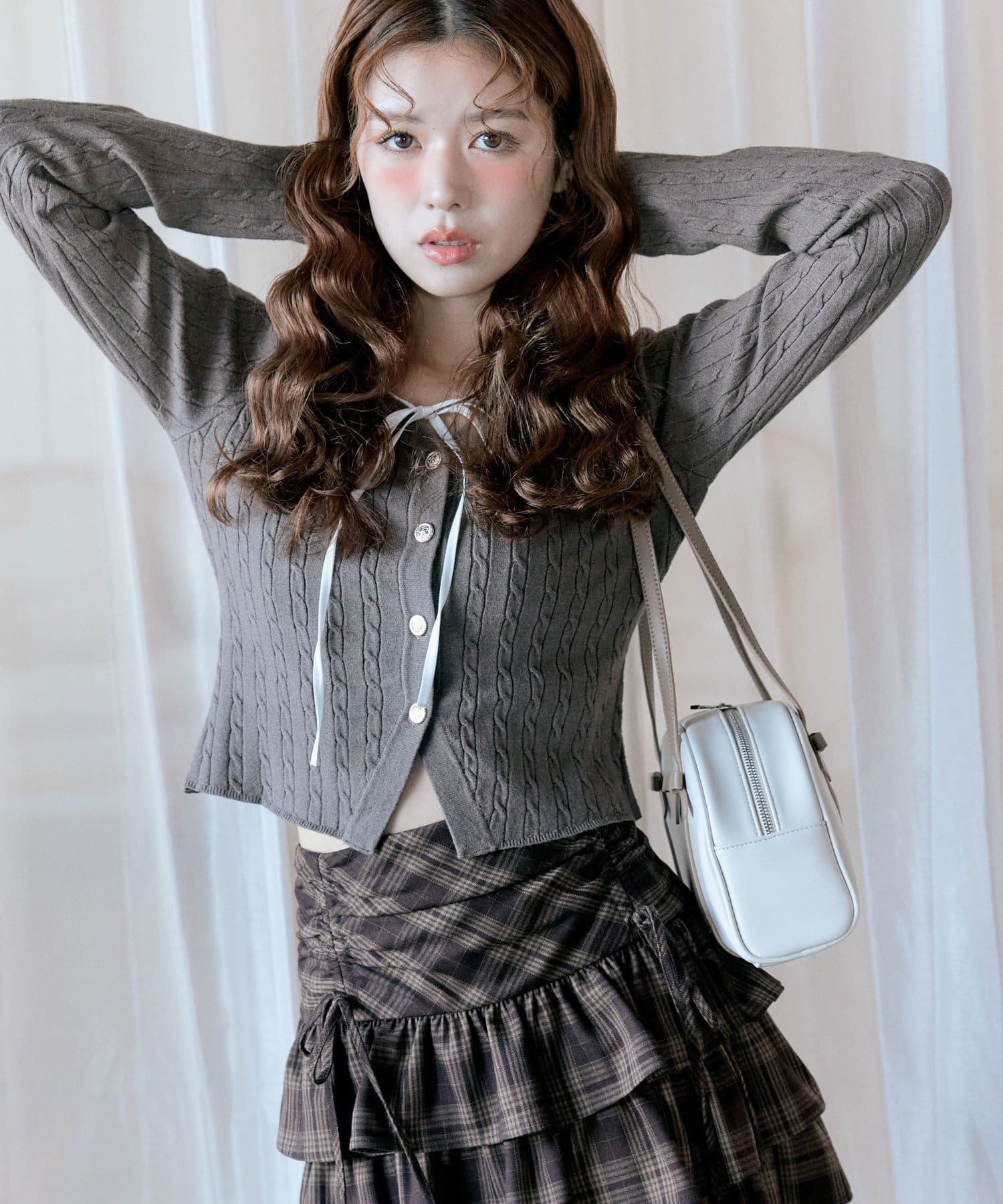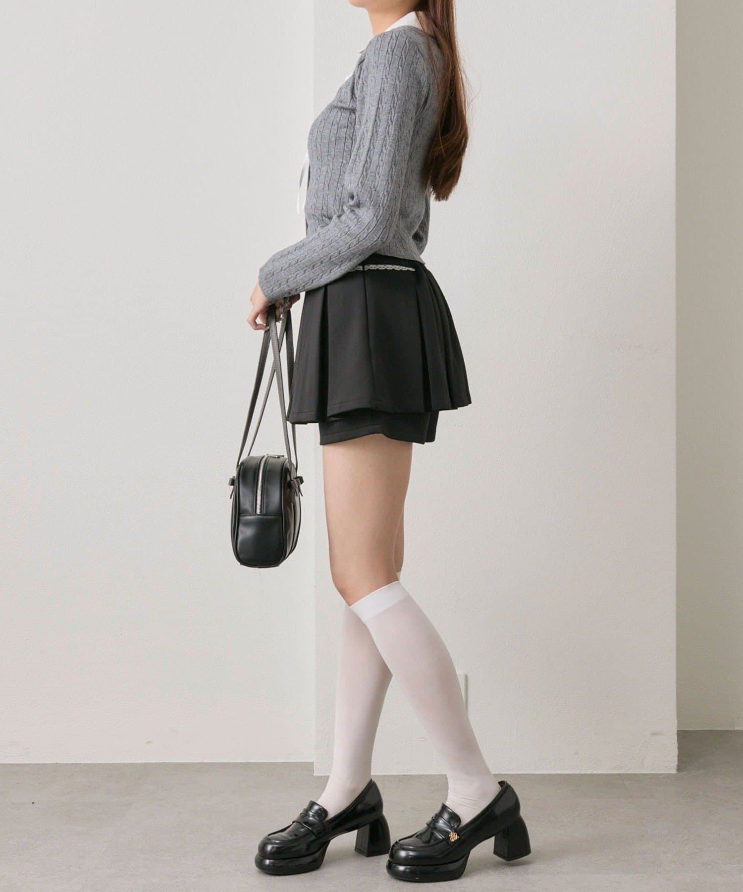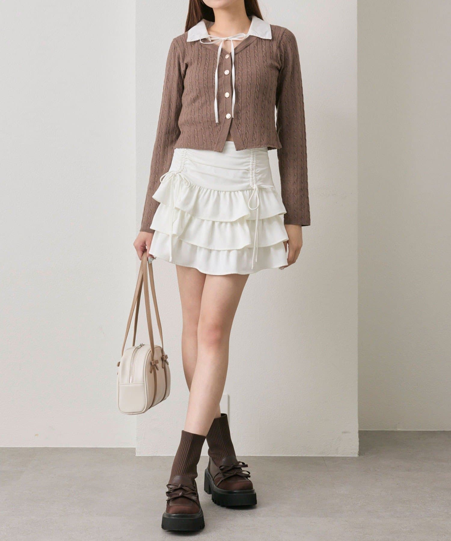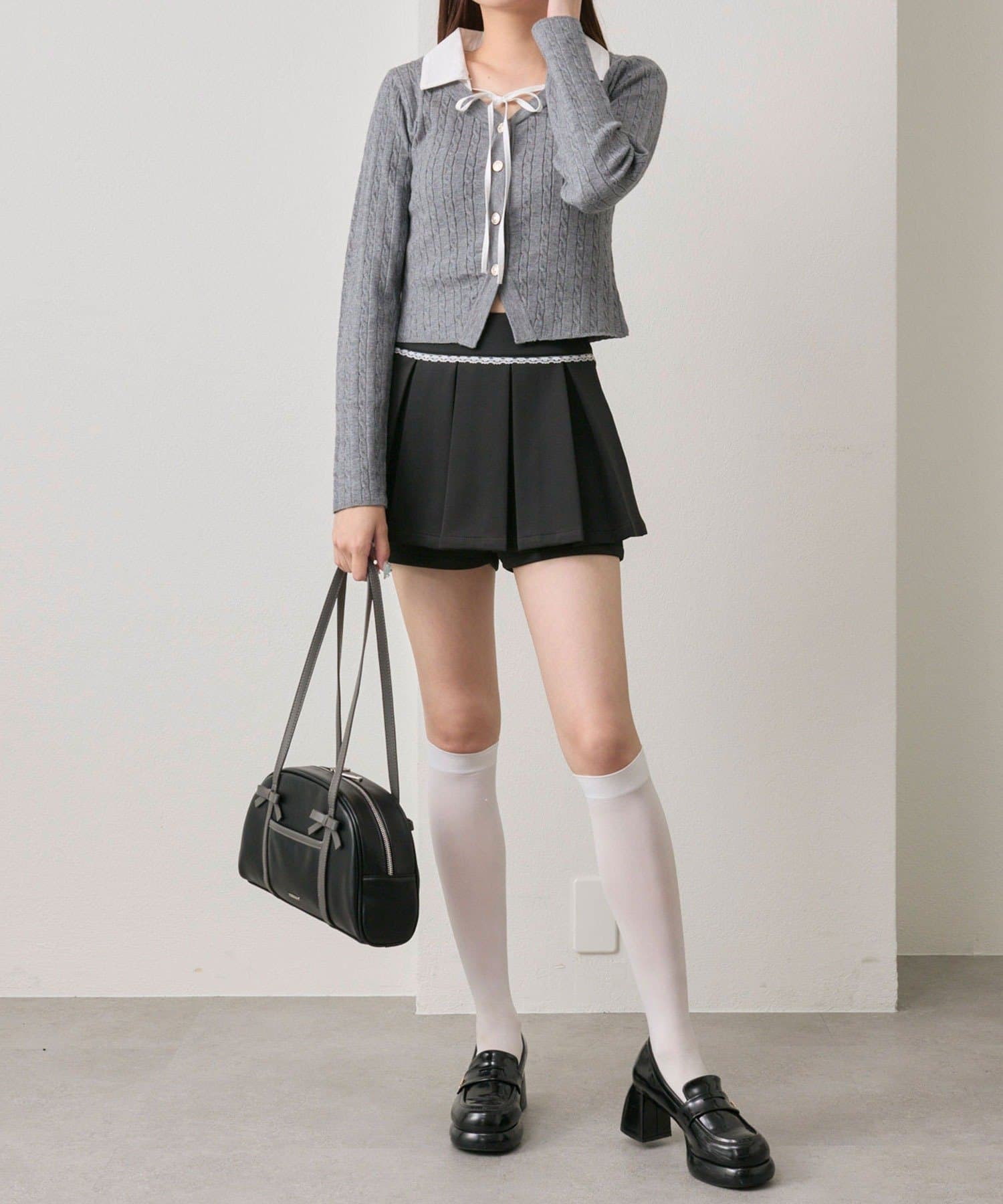 ・金ボタン付きのケーブルニットに、シャツをレイヤードしたようなきちんと感も可愛さも欲張れるデザイン。