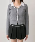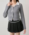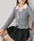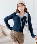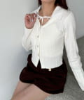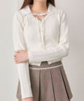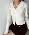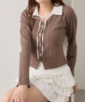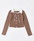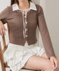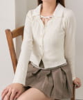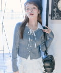 ・襟元の華奢なリボンが、顔まわりをほんのり甘く仕上げてくれます。