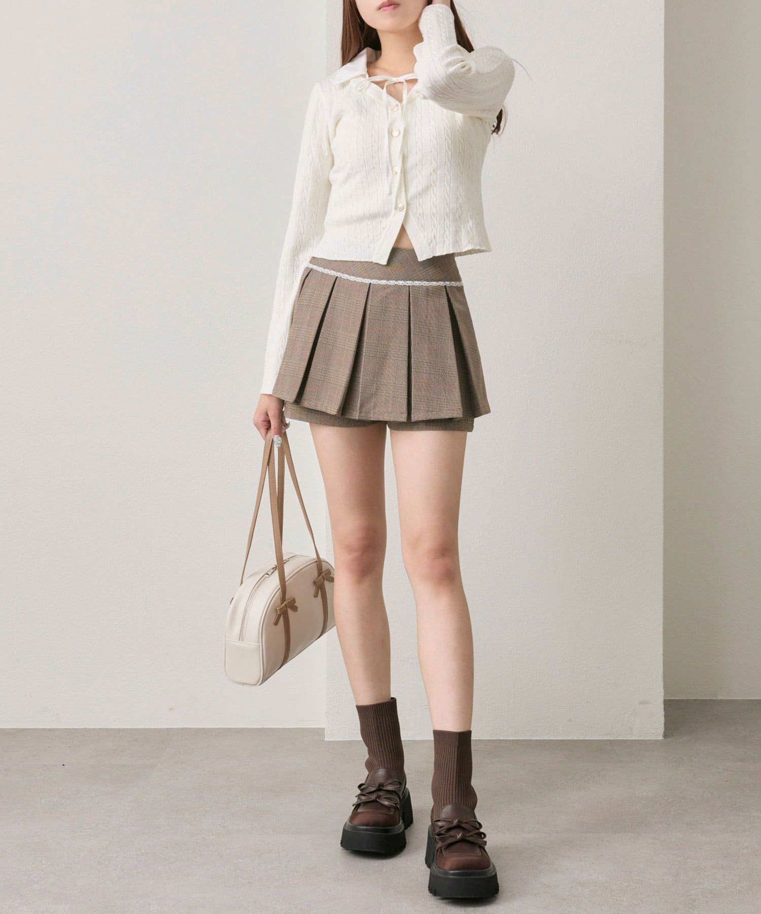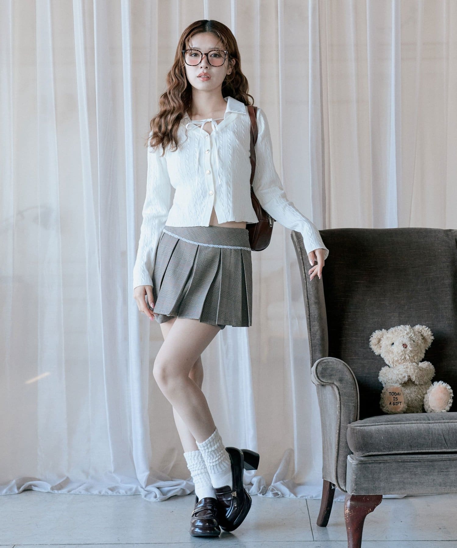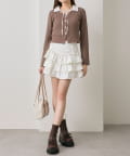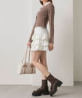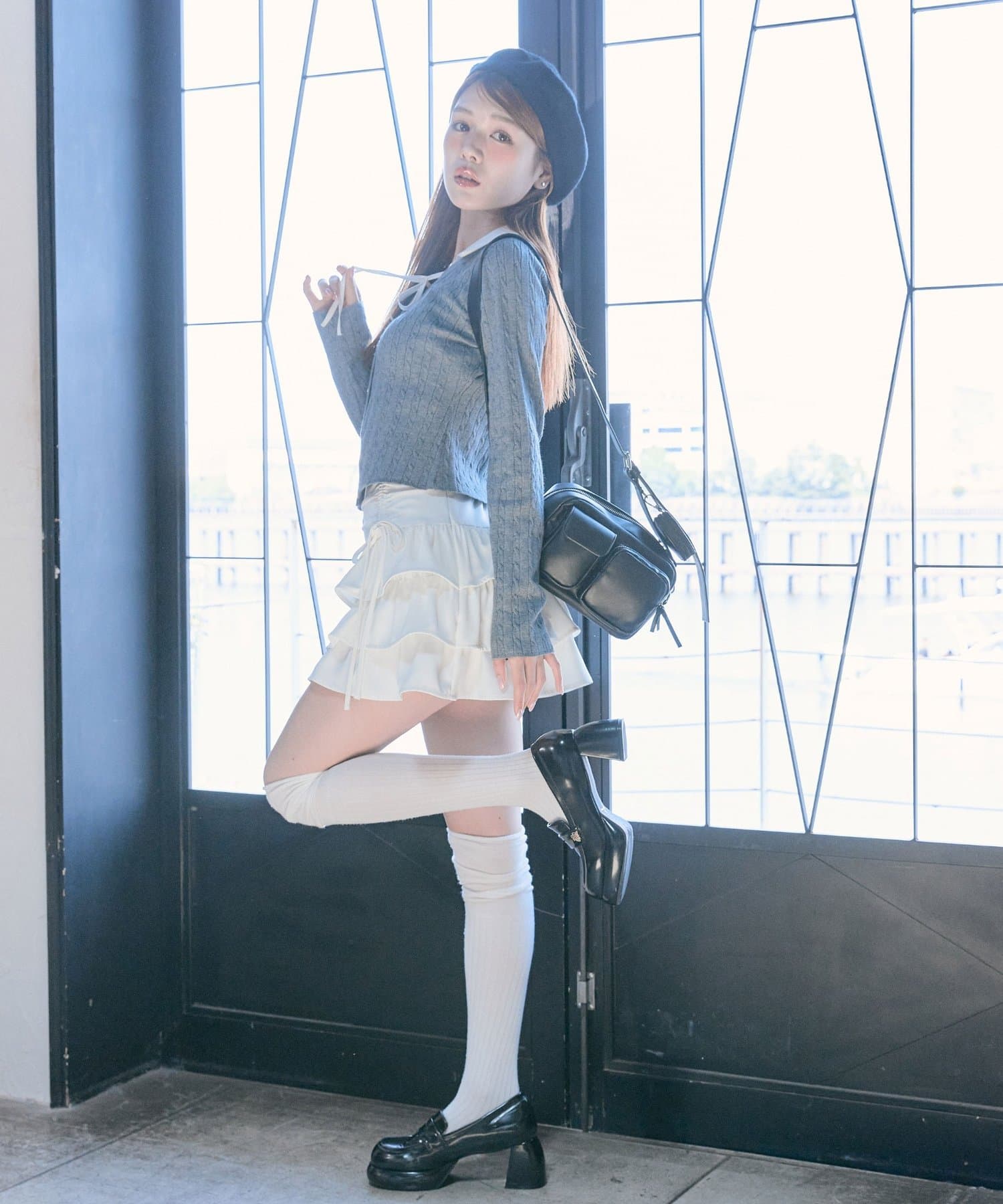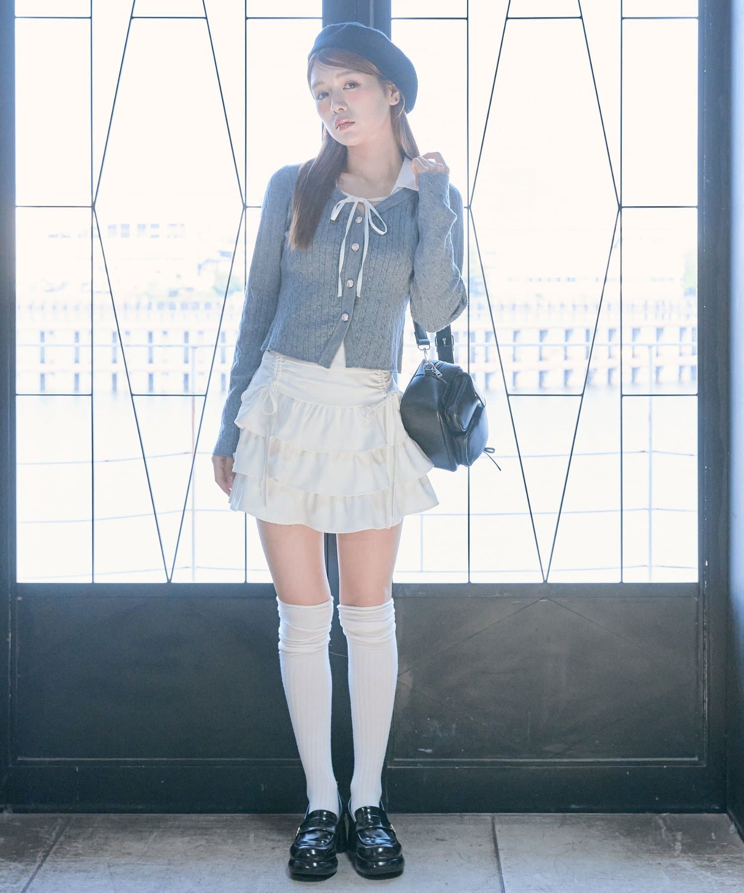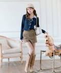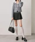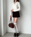 ・ミニスカート合わせでガーリーにまとめるのがおすすめ。