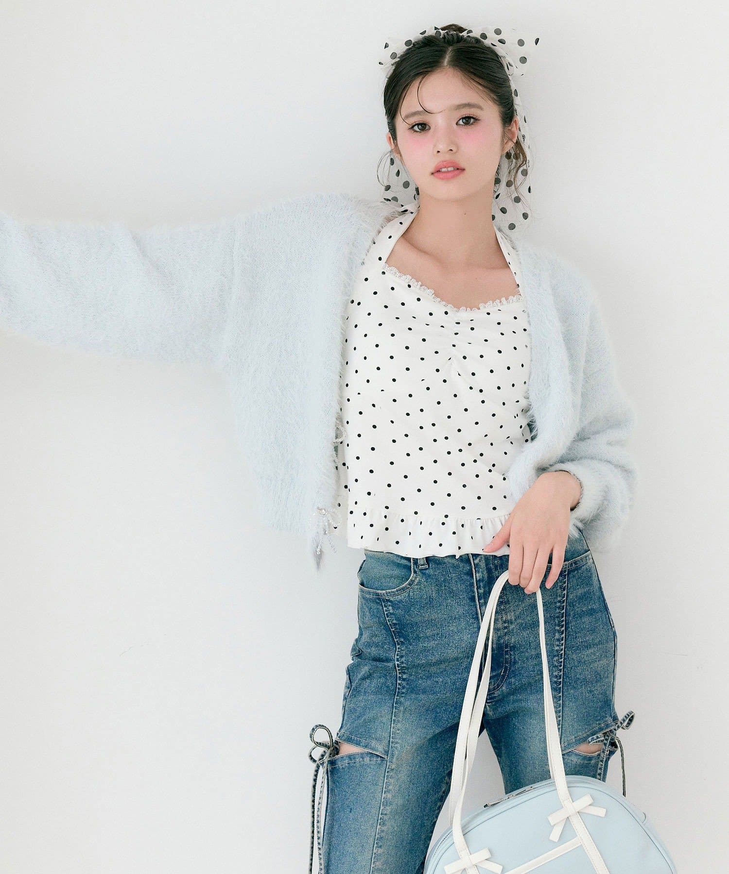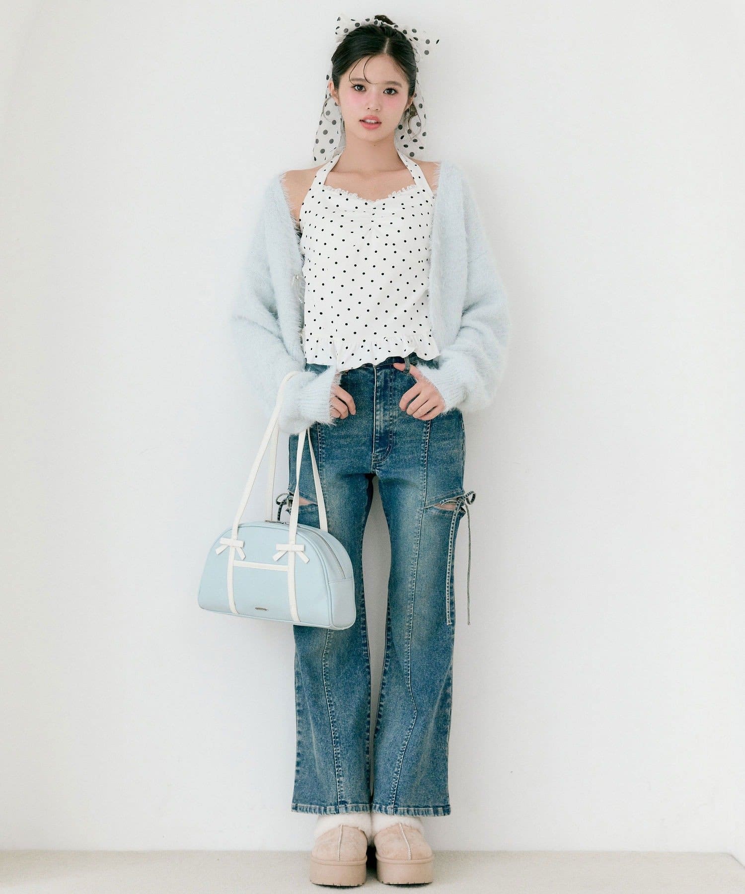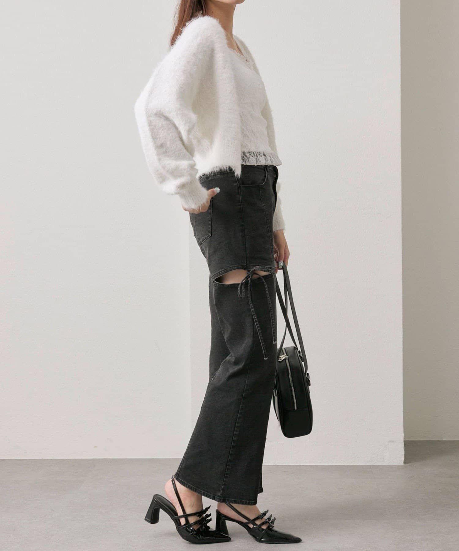 ・ボトムはスカート合わせでガーリーにも、デニムやスウェットパンツ合わせでカジュアルにも合います。