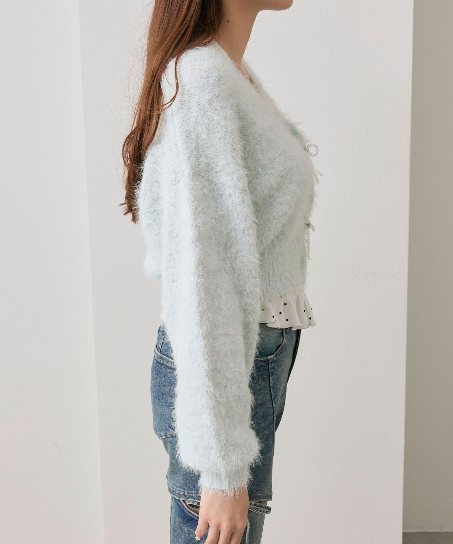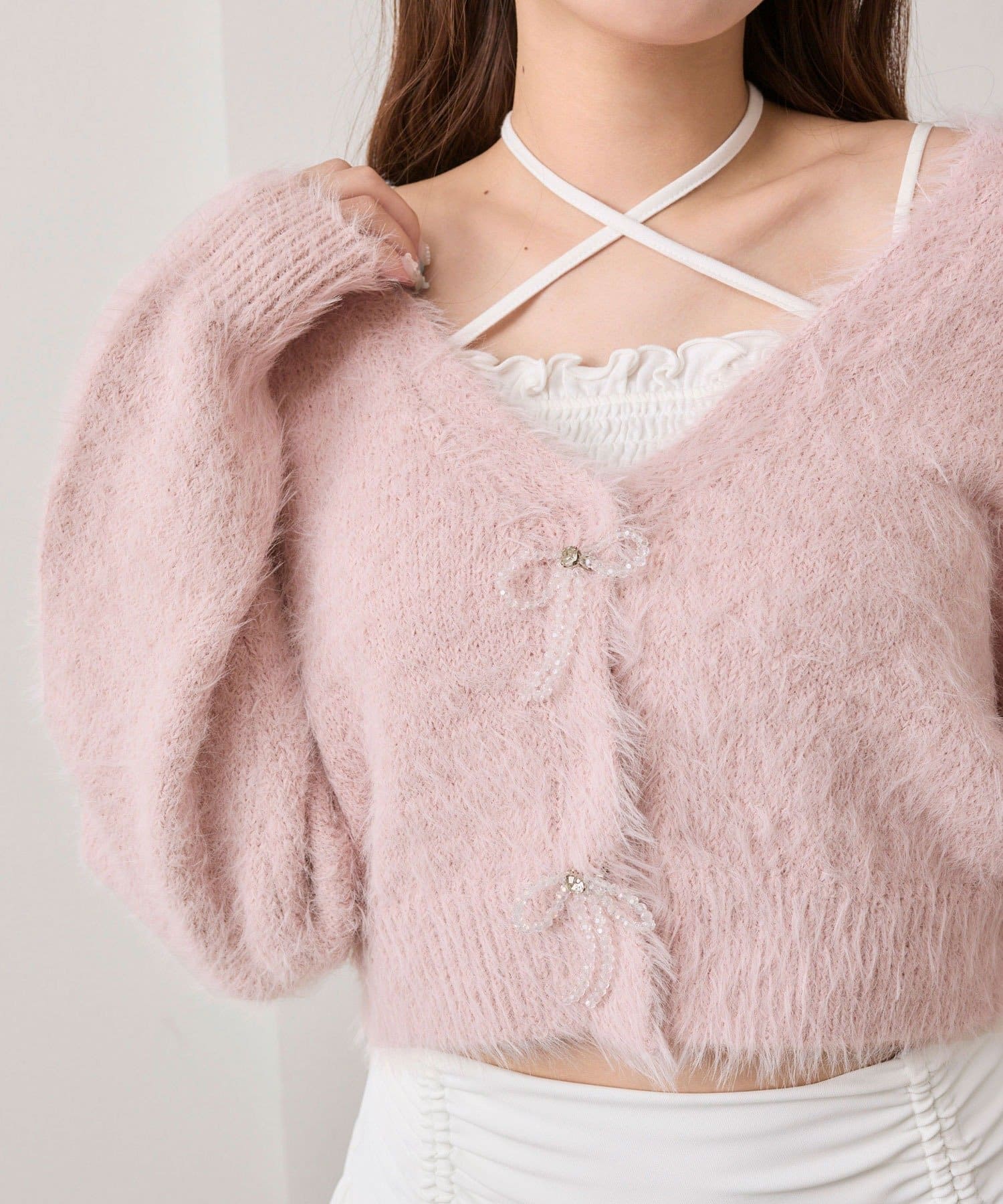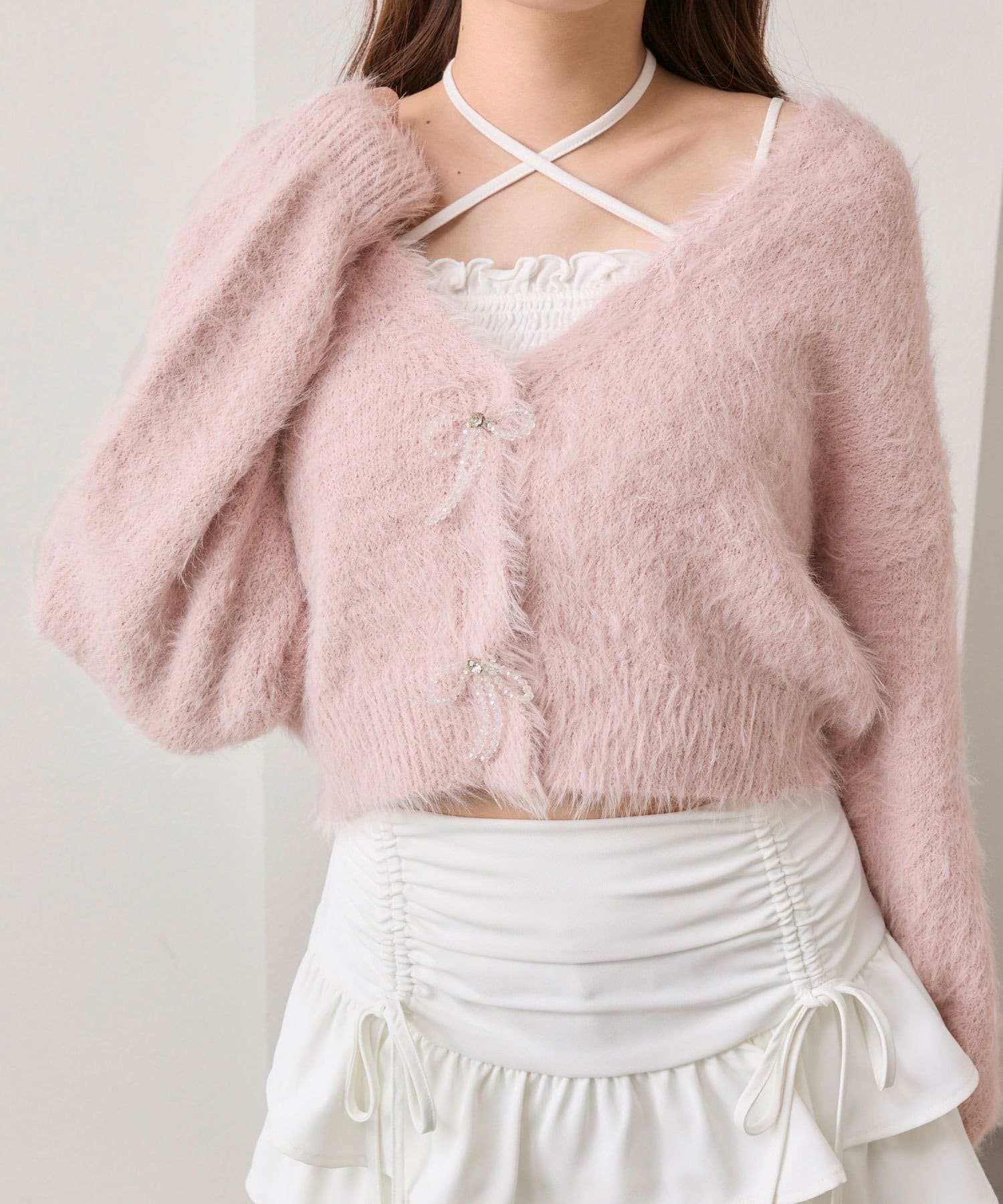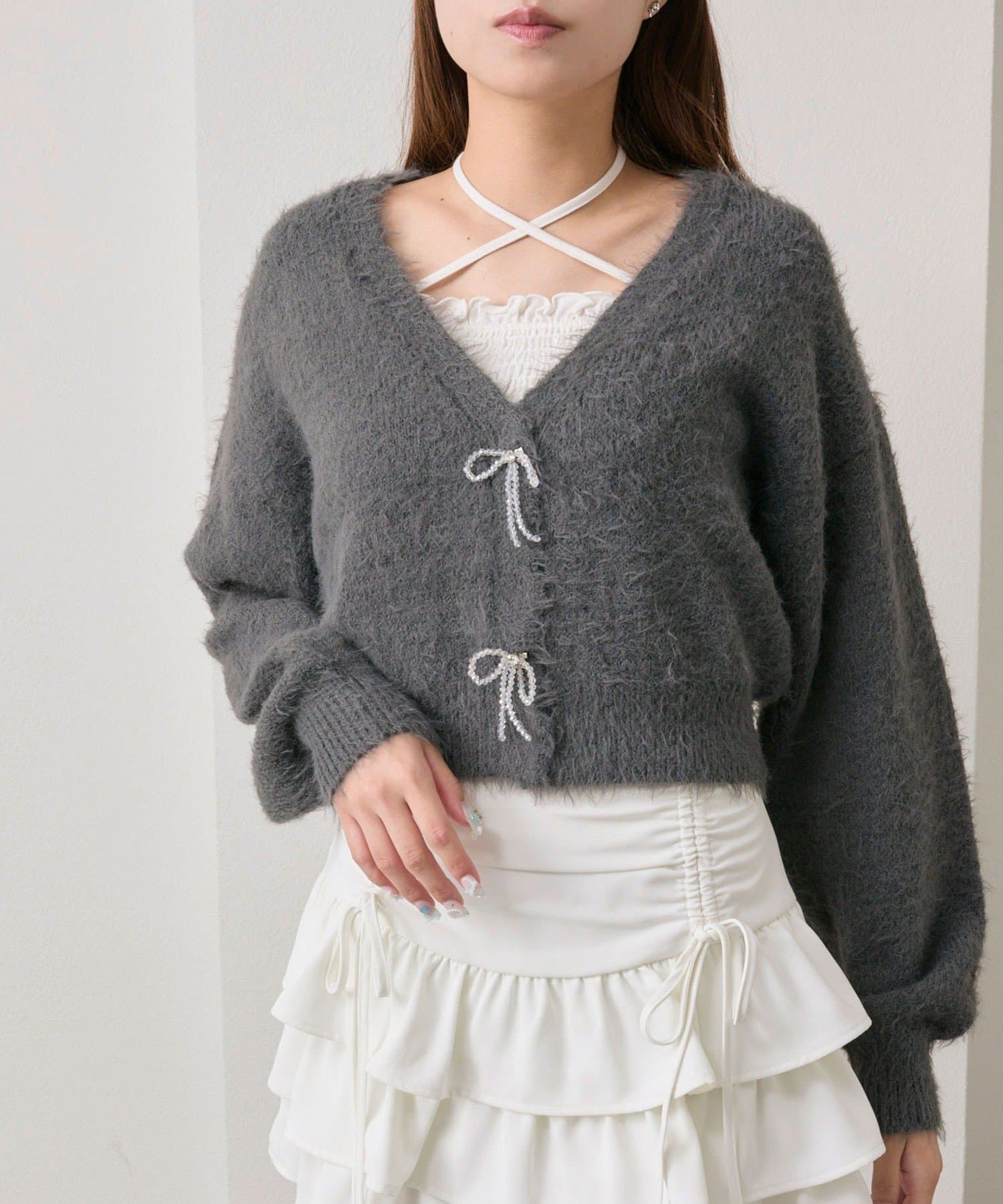ビーズリボンが特別感をプラスするカーディガン