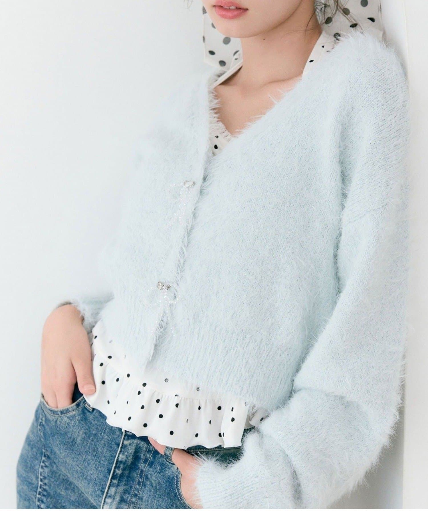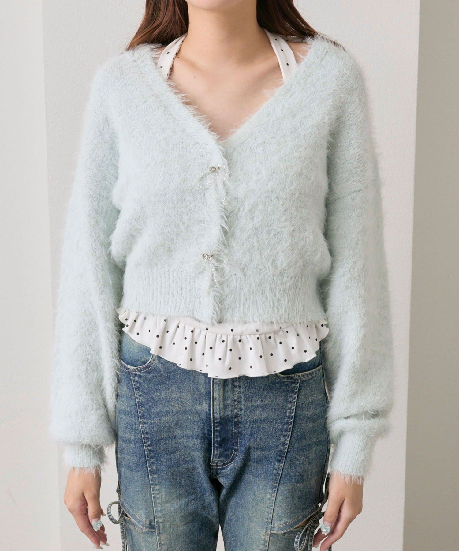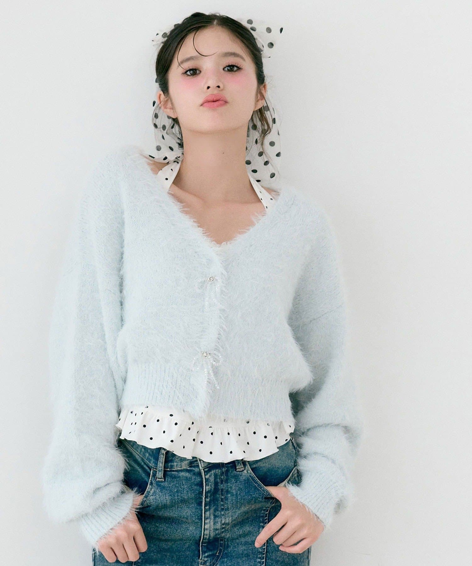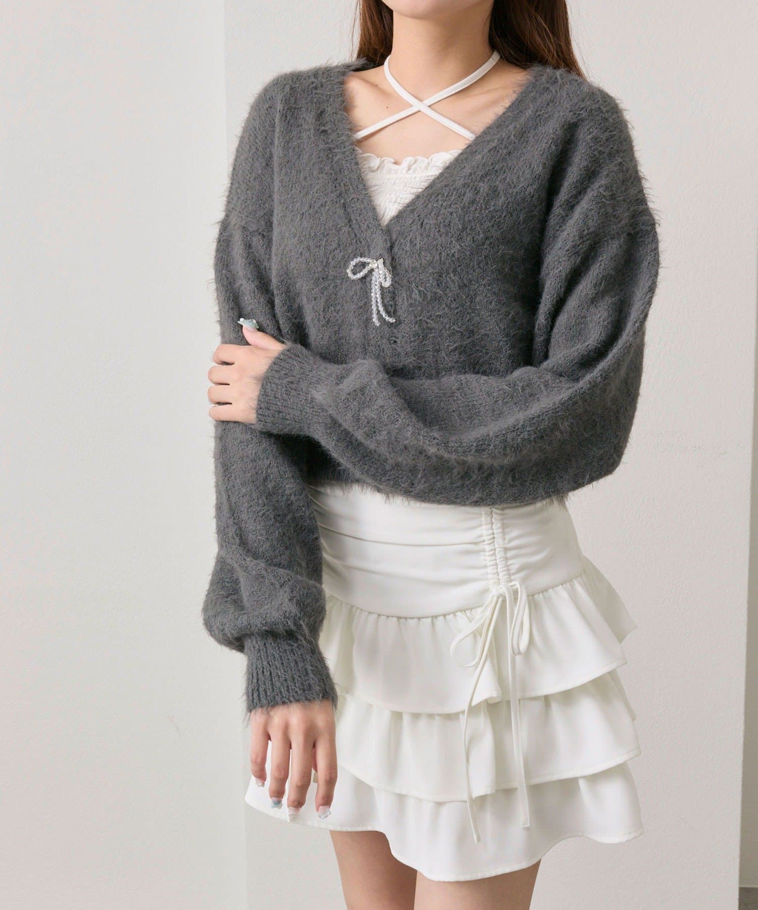 ビーズリボンが特別感をプラスするカーディガン