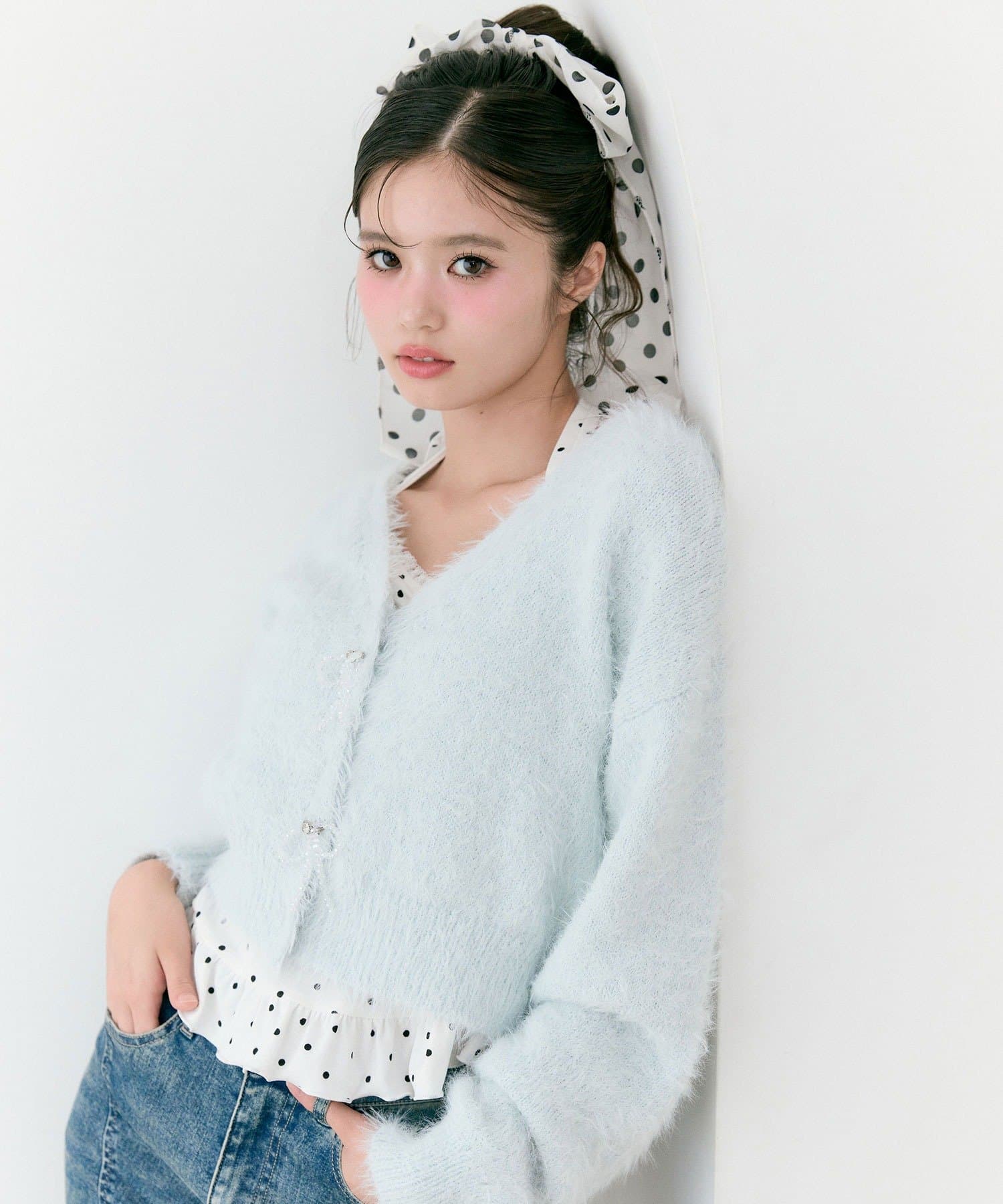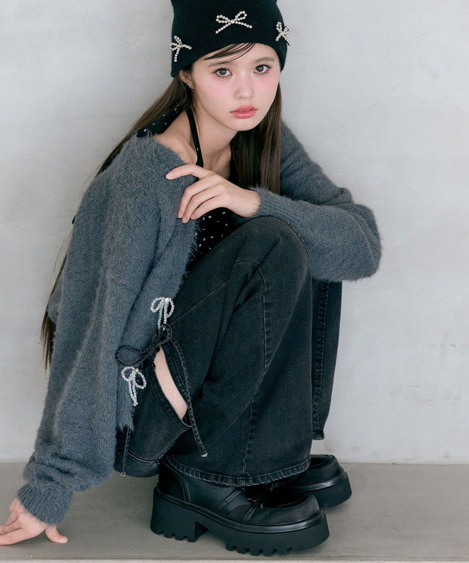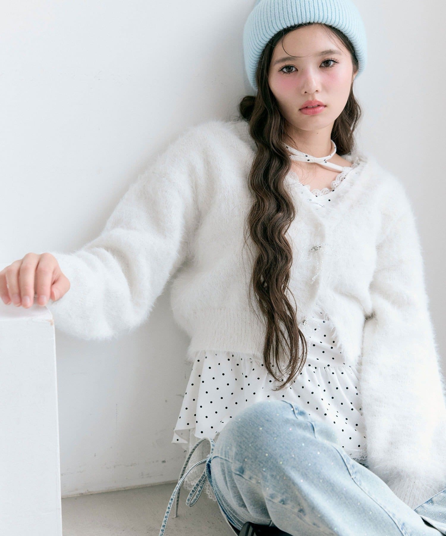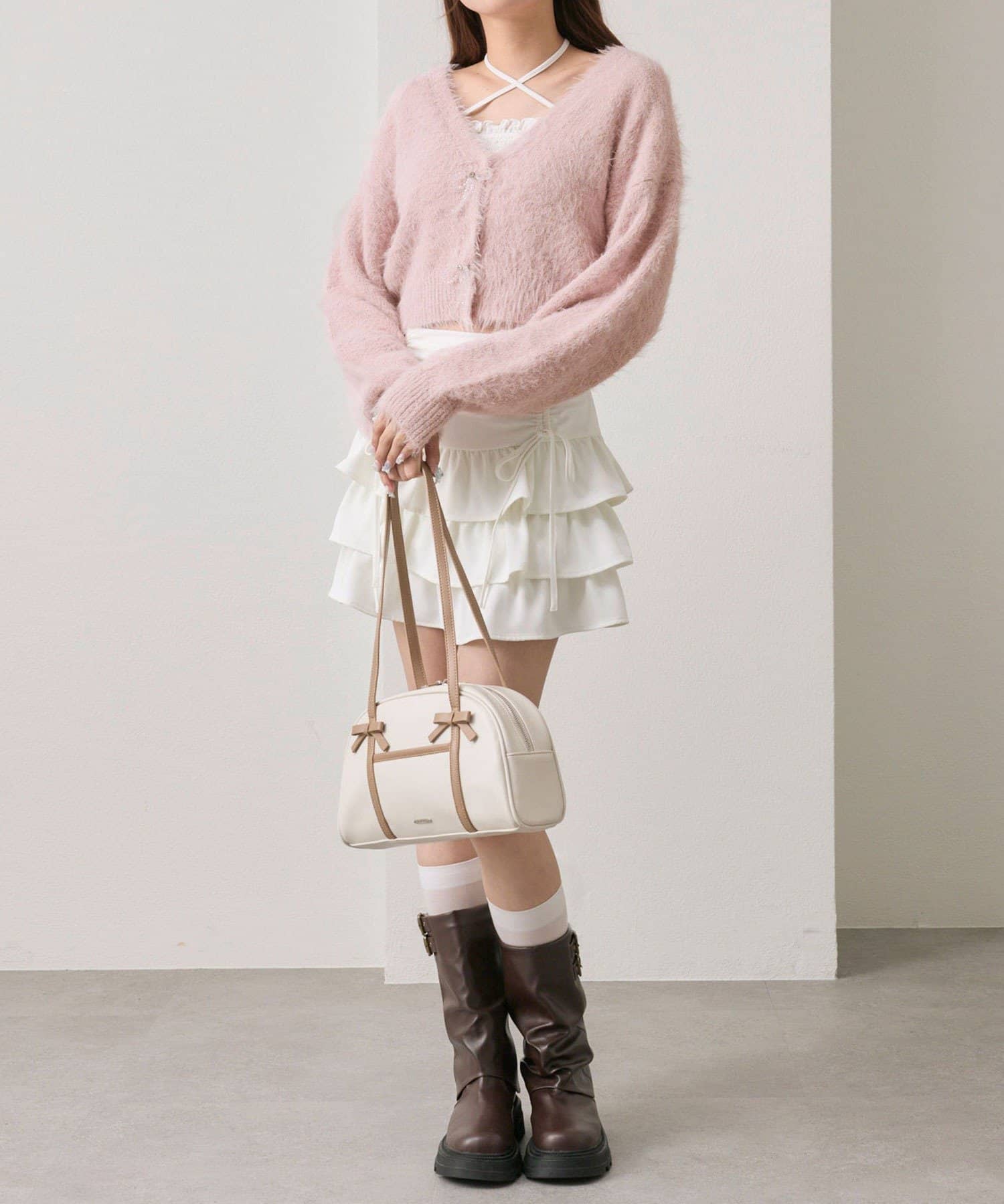 ビーズリボンが特別感をプラスするカーディガン