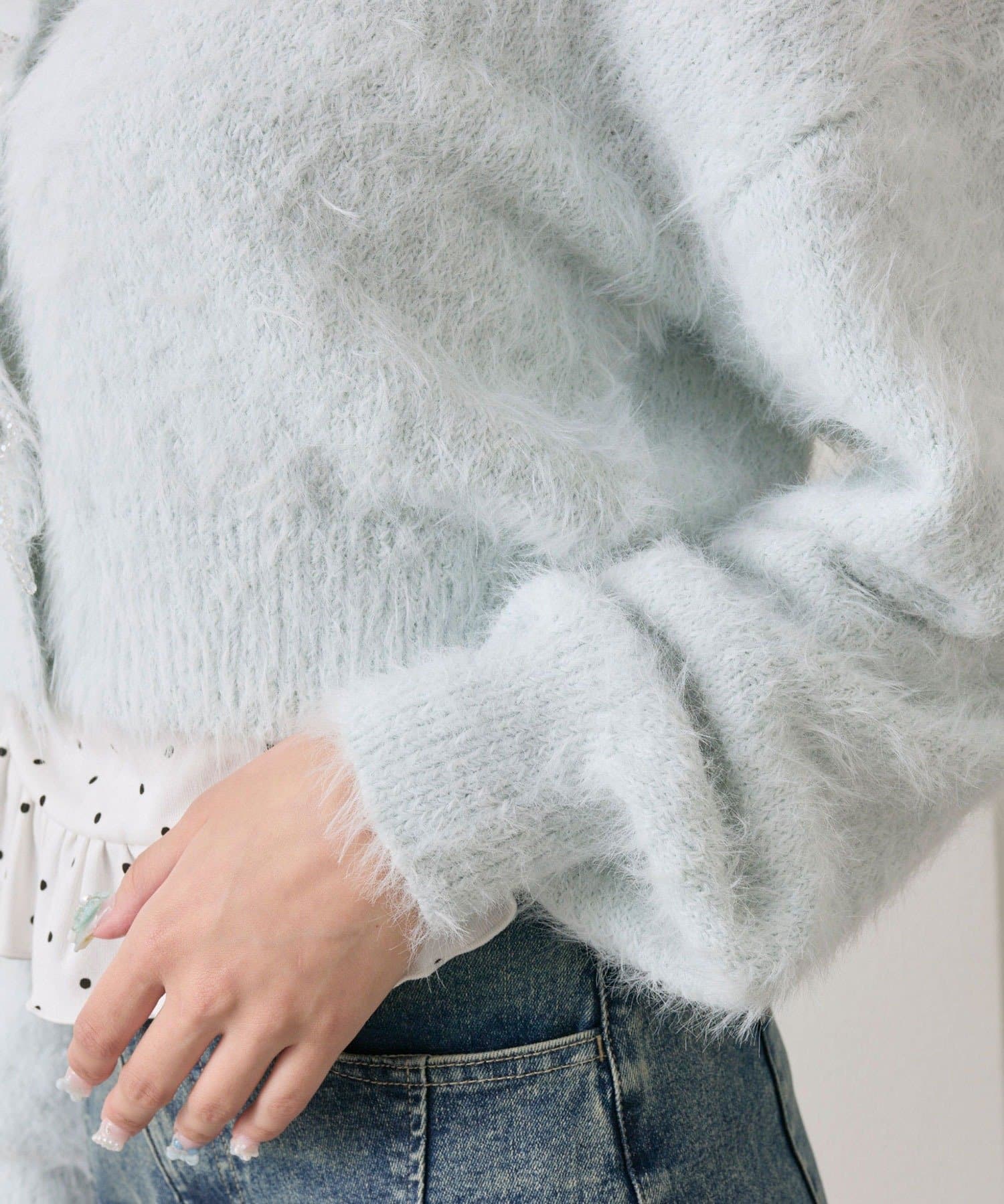 ・シャギー素材なのでふわふわで、毛玉もできにくく長く着用していただけます。