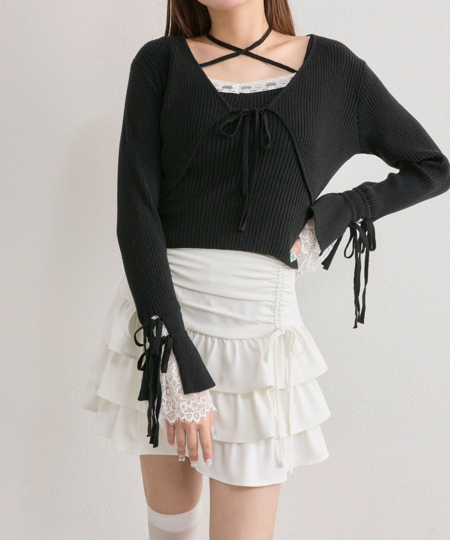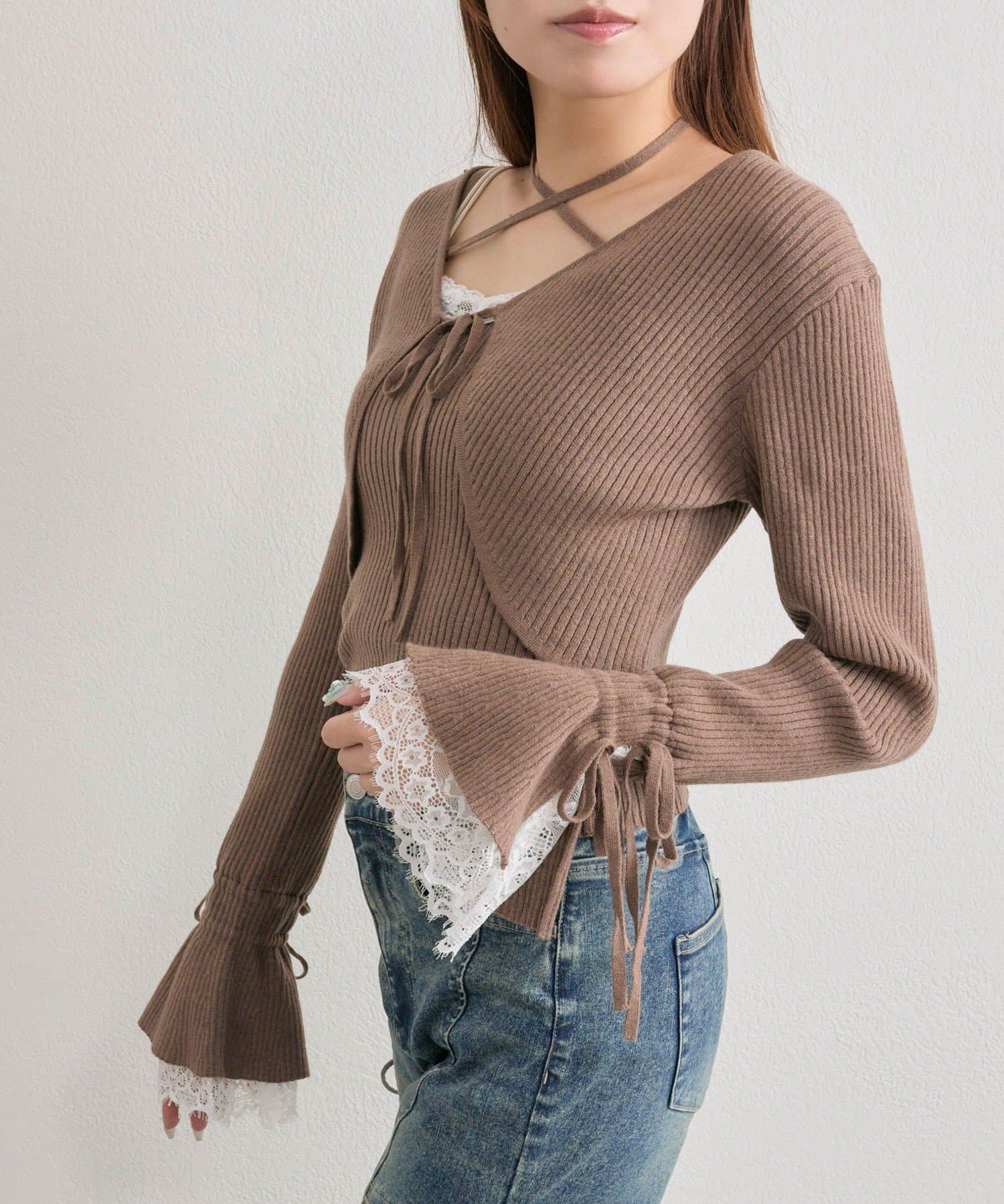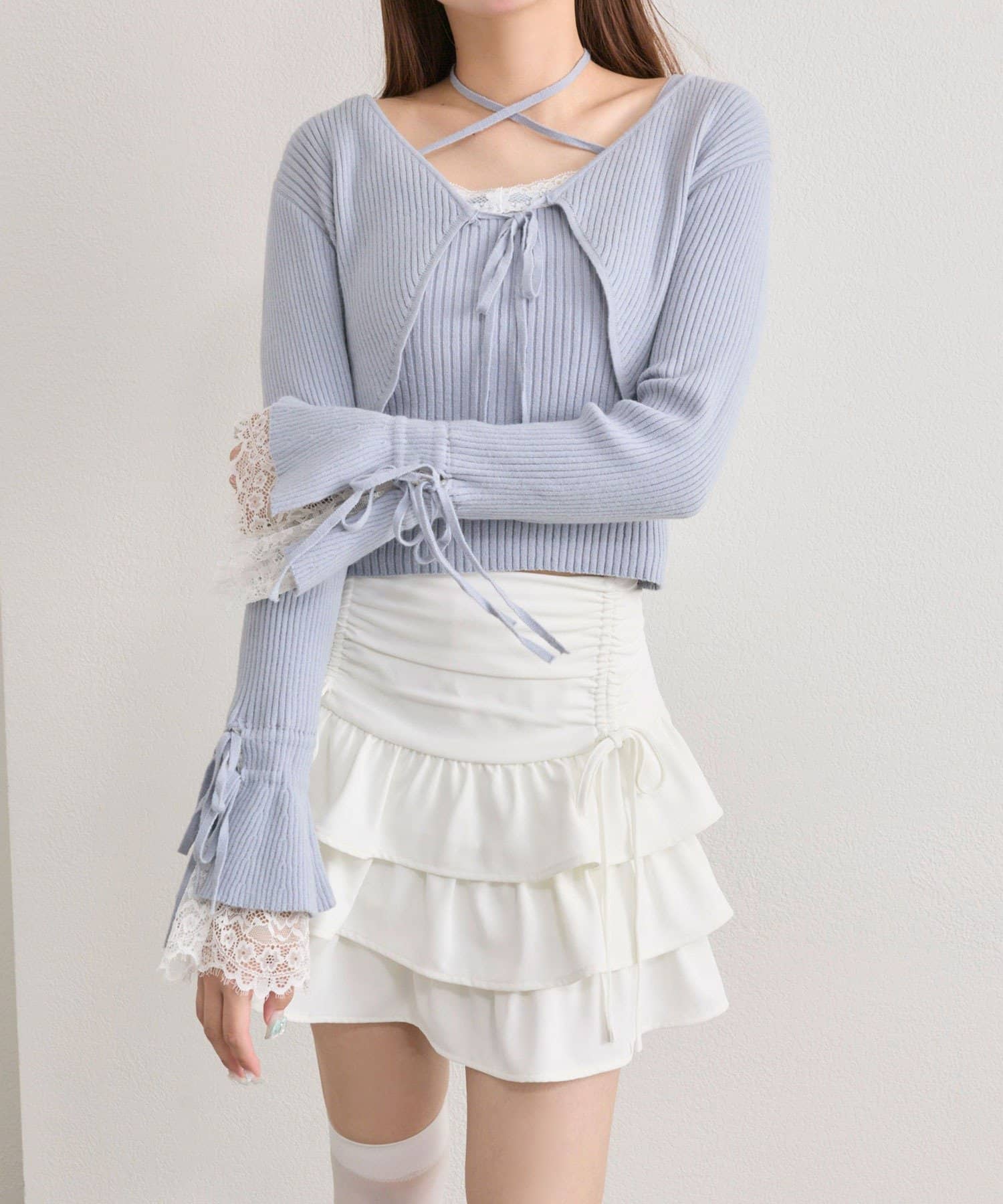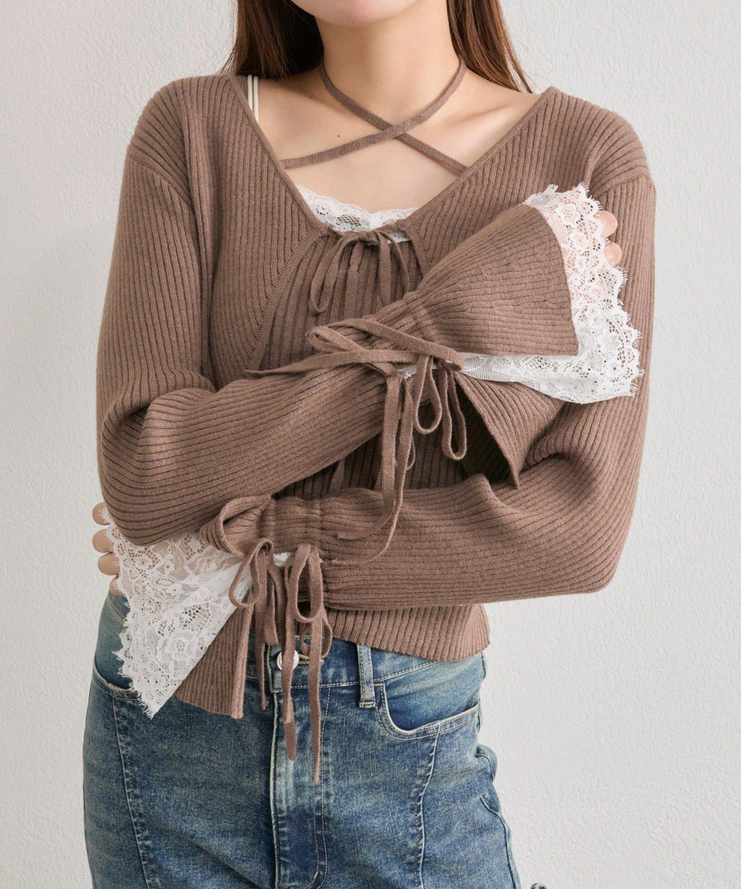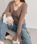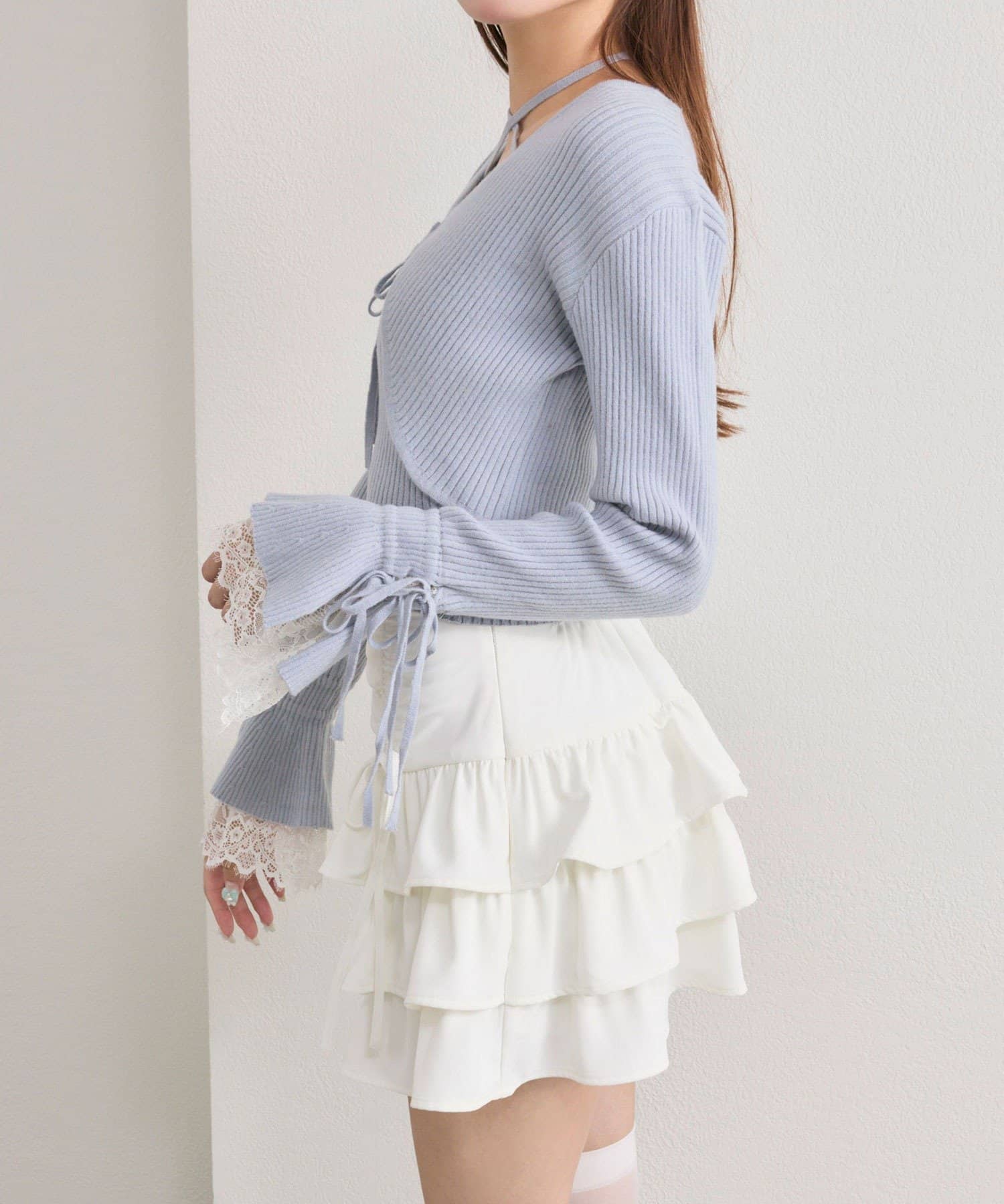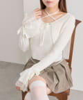 ・袖口から見える繊細なレースとリボンが、手元を華奢に見せてくれるデザイン。