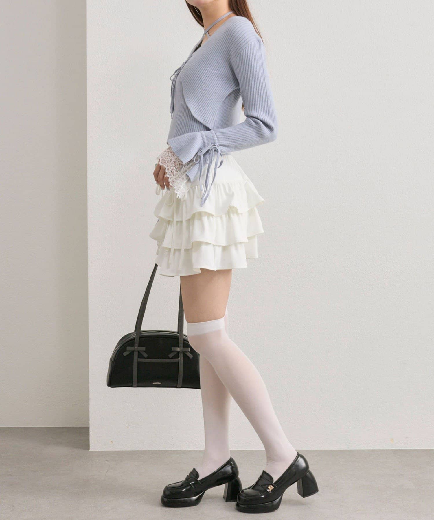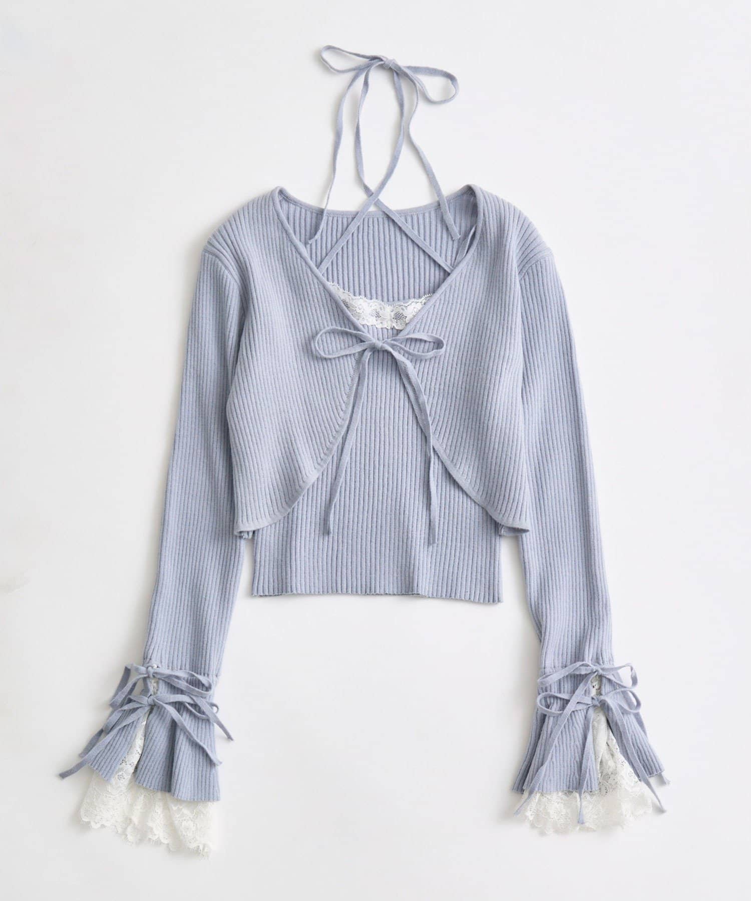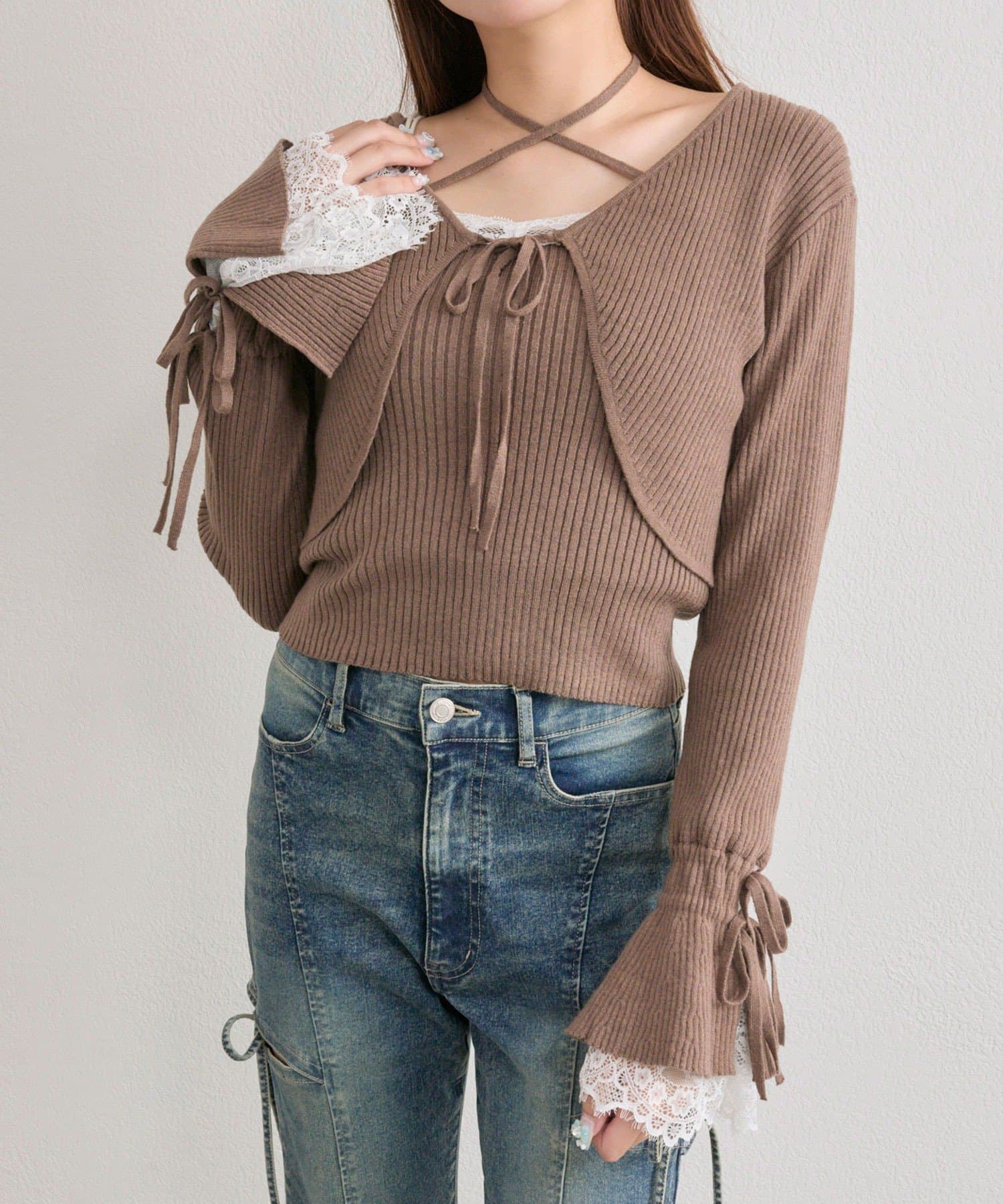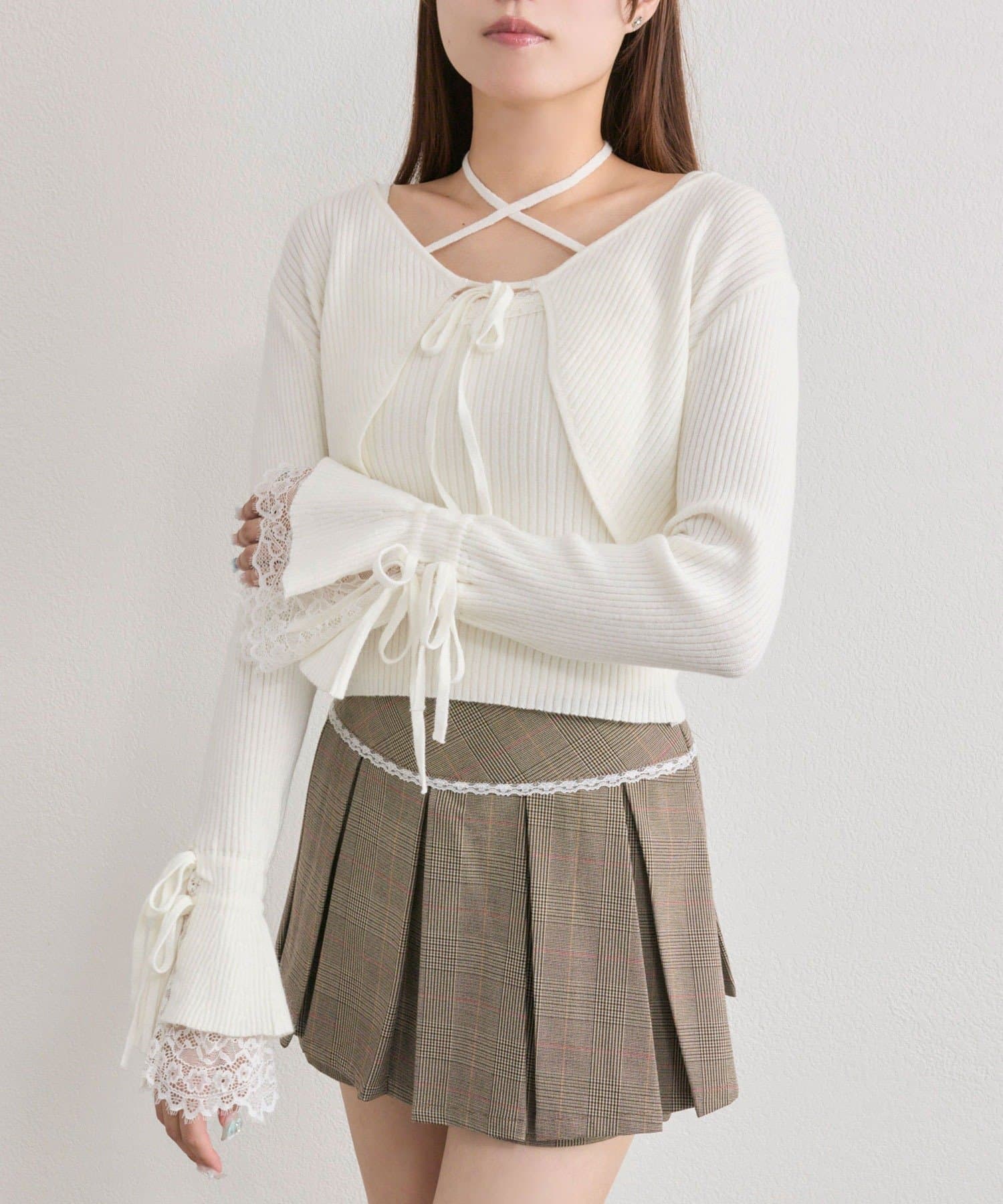 ・袖口から見える繊細なレースとリボンが、手元を華奢に見せてくれるデザイン。