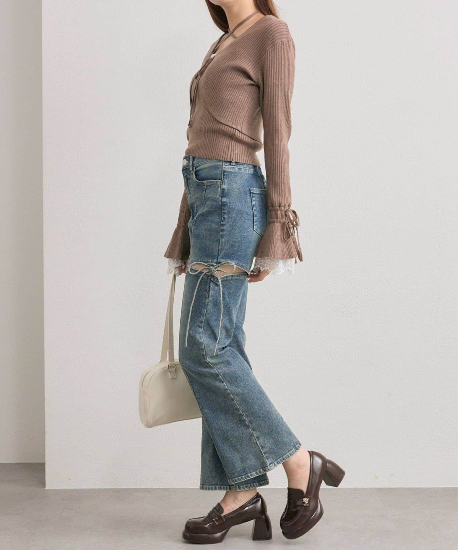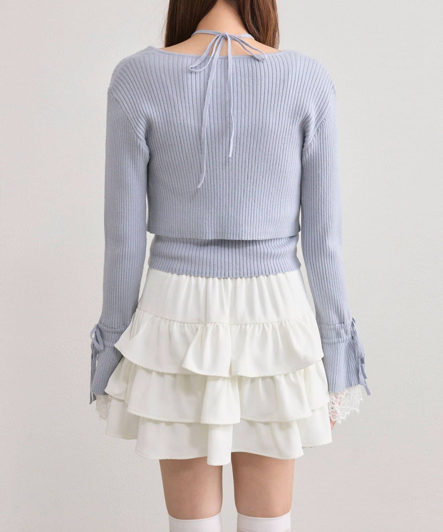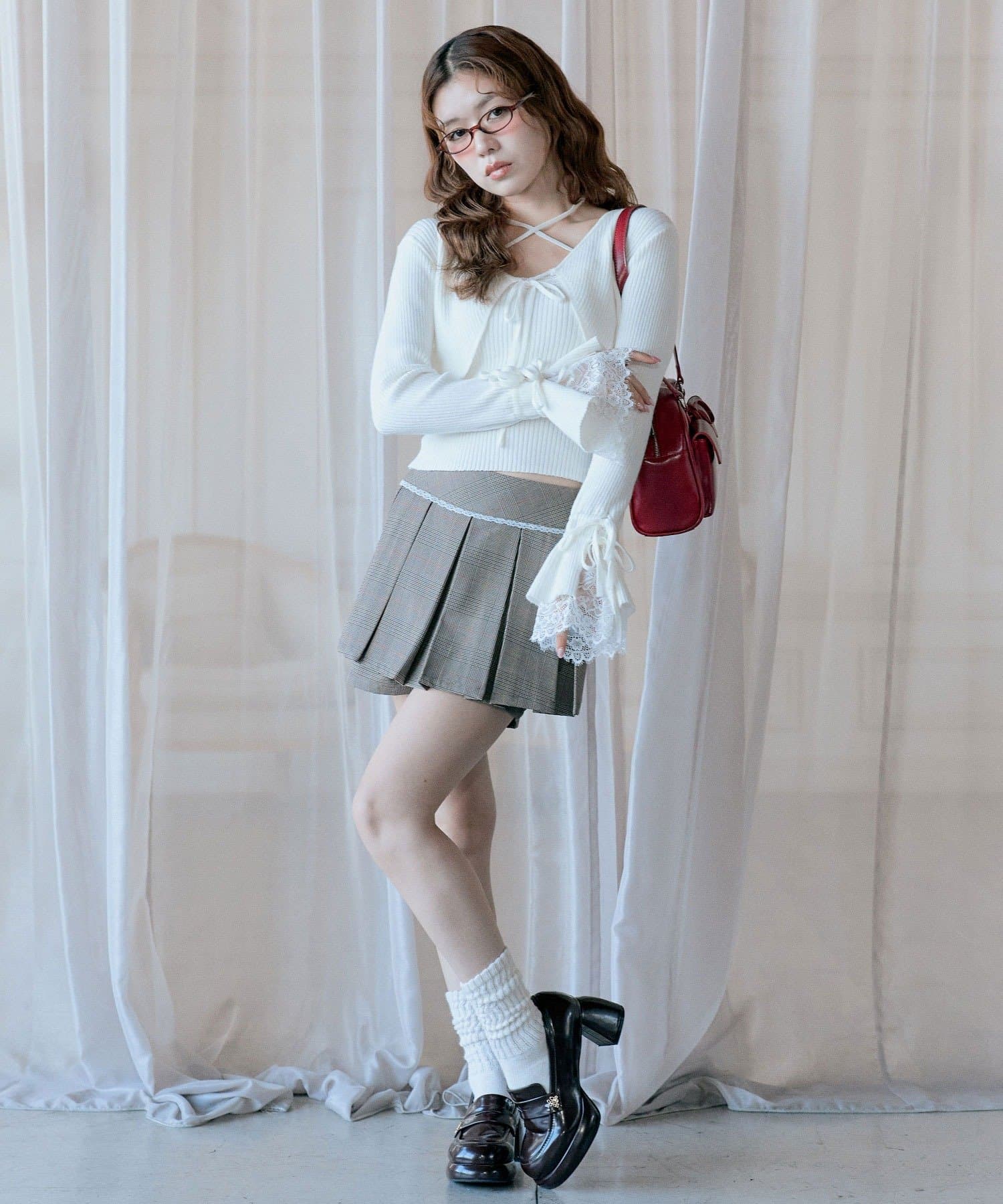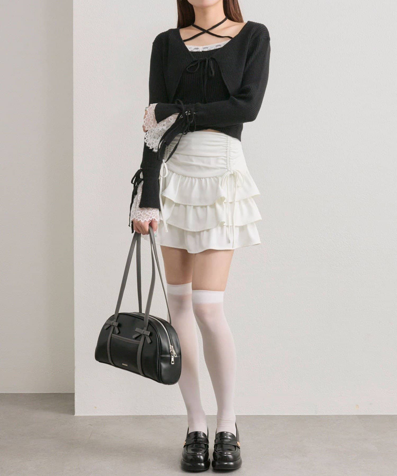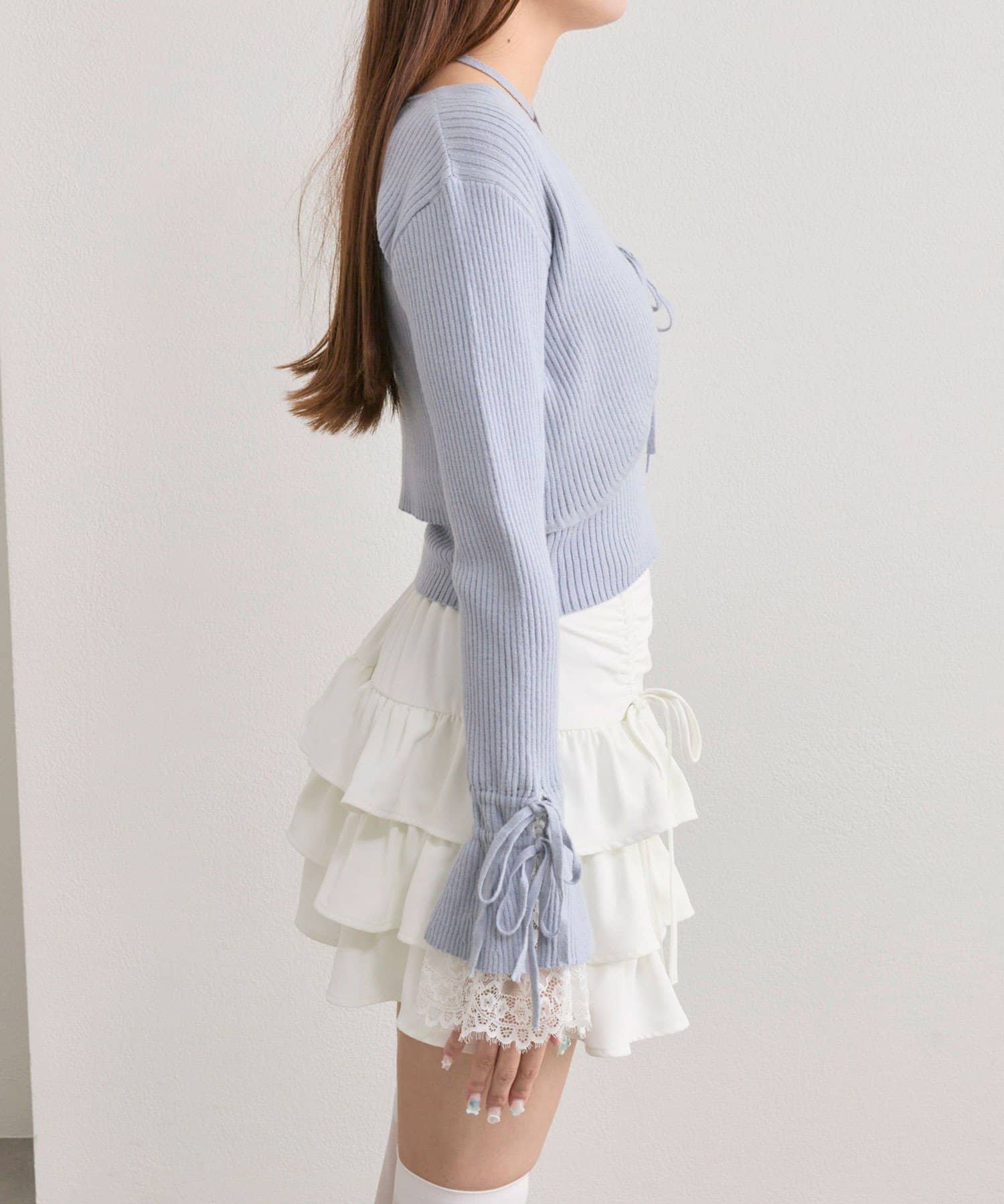 ・袖口から見える繊細なレースとリボンが、手元を華奢に見せてくれるデザイン。
