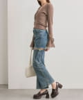 ・デニムパンツでカジュアルダウンすれば、抜け感のある大人可愛いスタイルに。